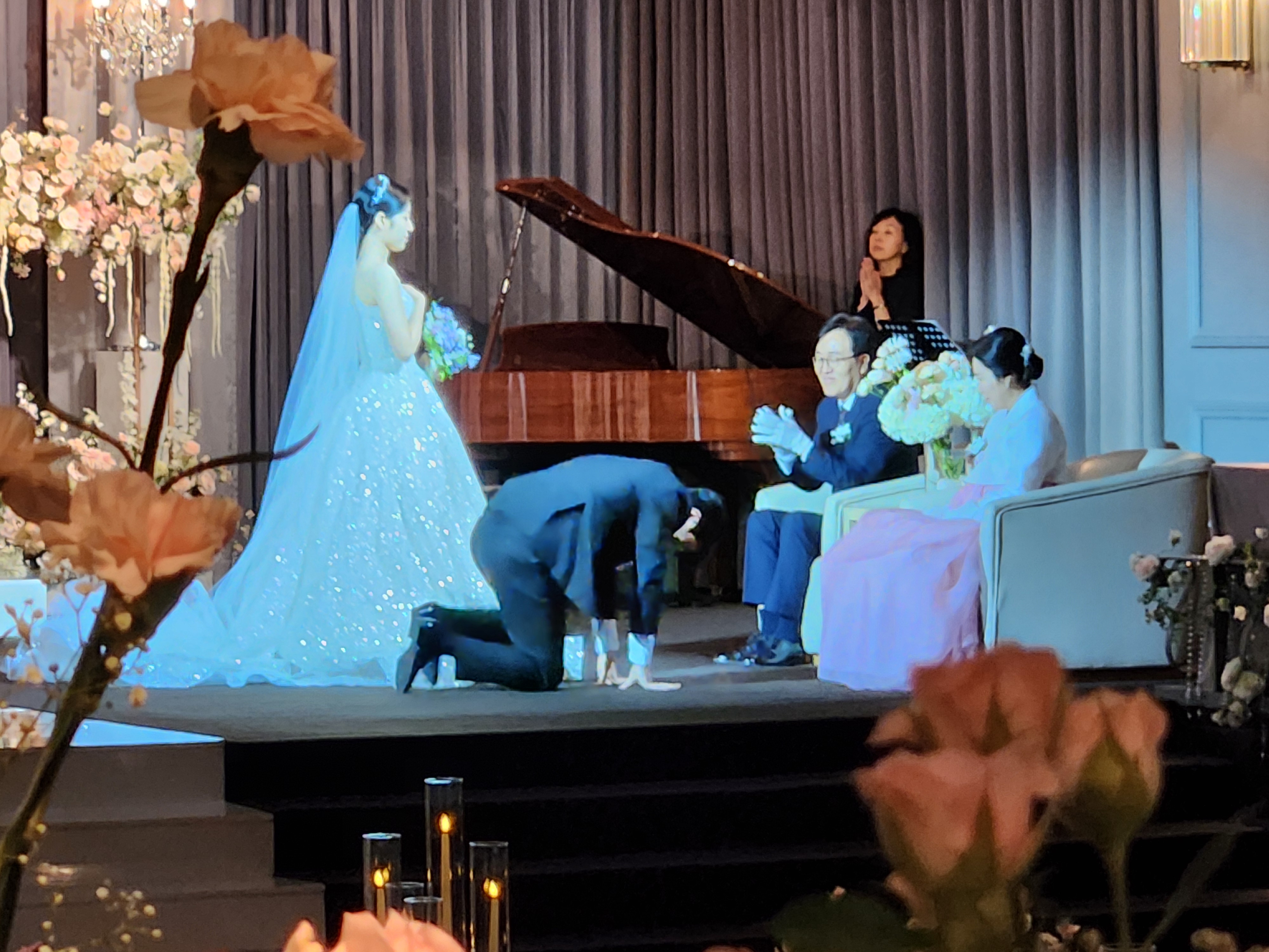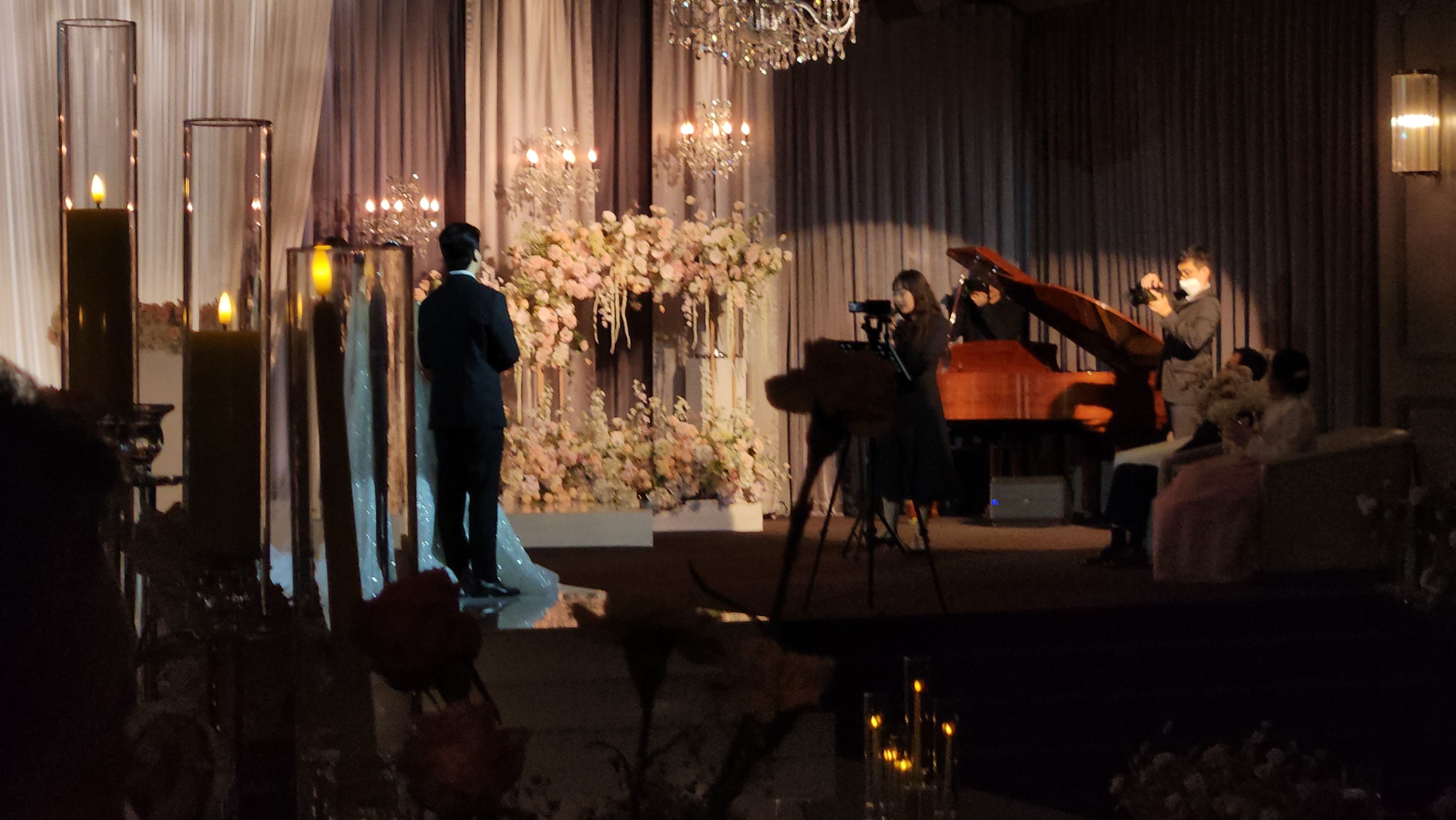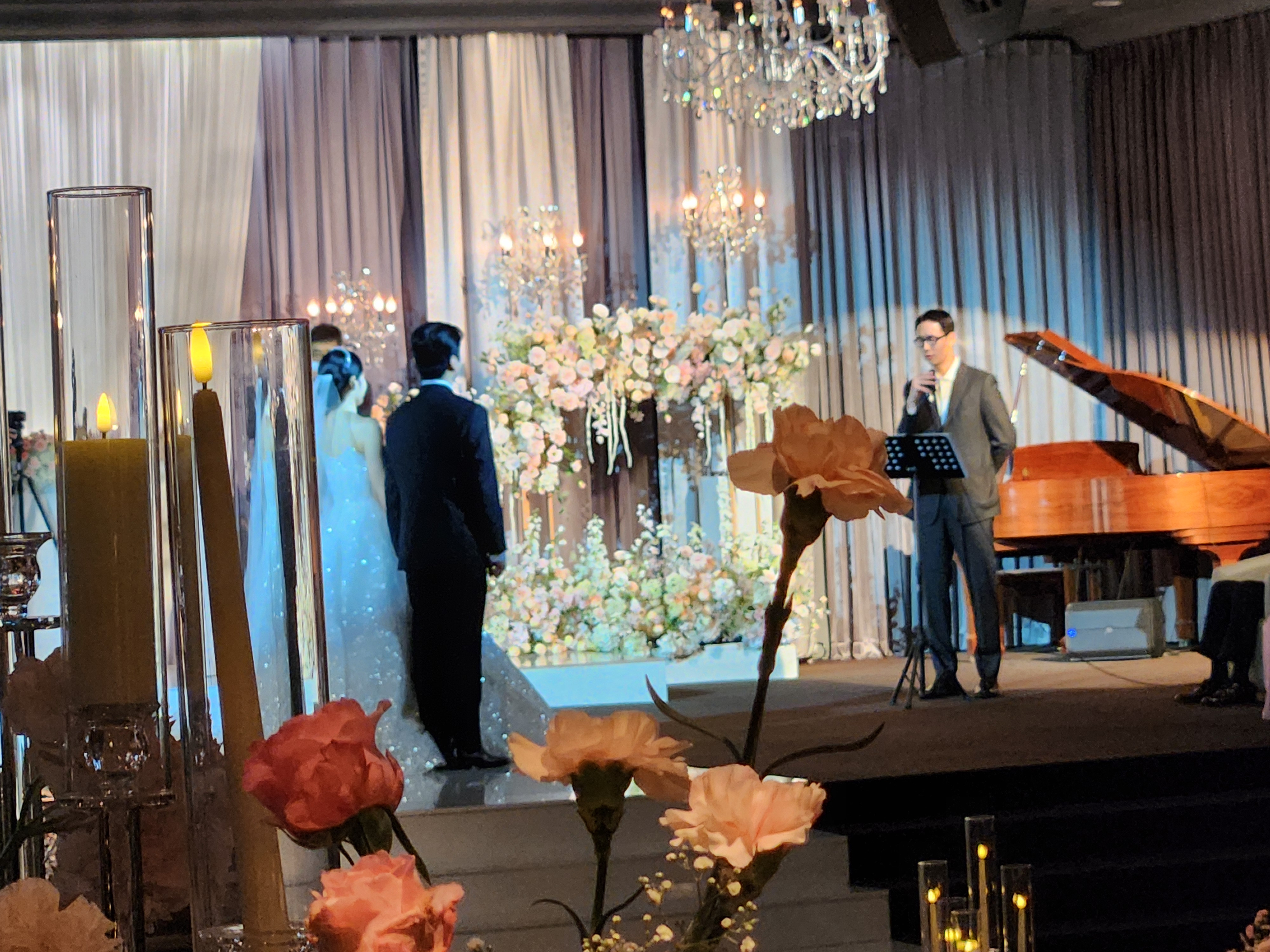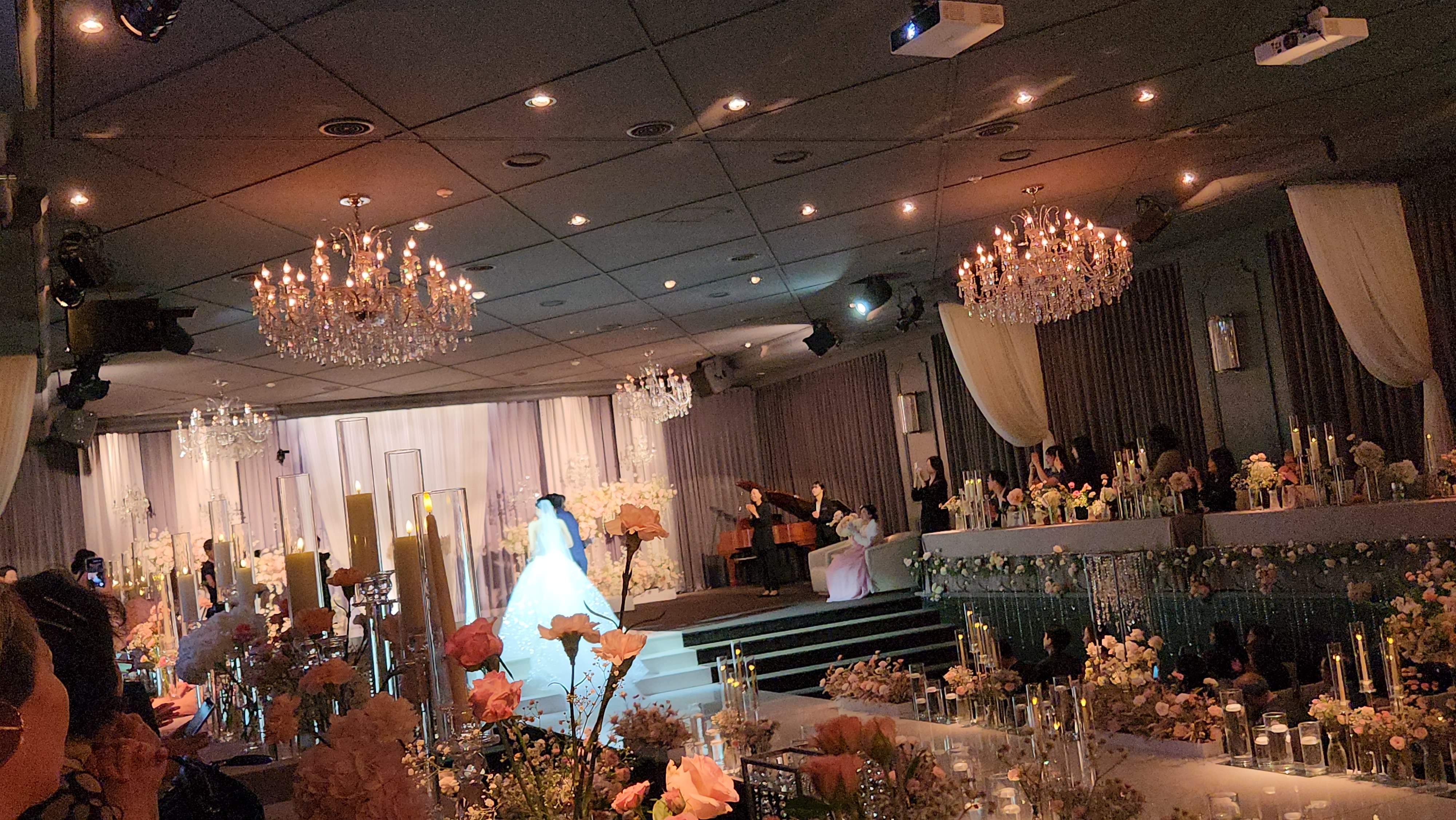 결혼식장이 특이하다. 오페라 관람석같은 2층 구조로 되어 있고 꽃장식으로 무척 화려하다. 이런 입체적인 예식홀은 처음이다.