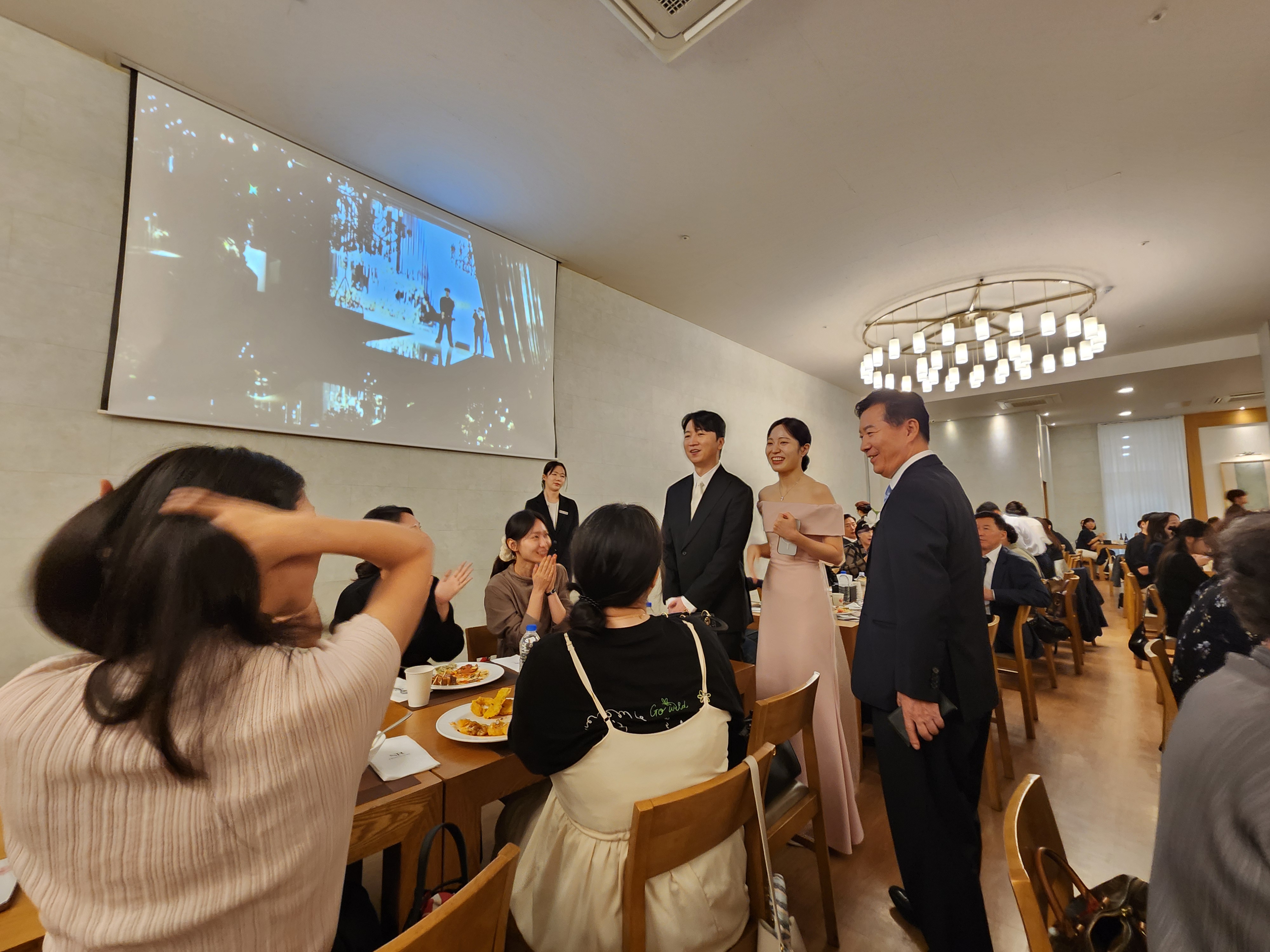 '25.9.28(일) 오후3시, 선릉역 상록회관에서 이기현후배(정향숙여사)의 아들 강 록군이 조주 현양을 신부로 맞아 결혼식을 올리는 자리에 동기생과 공병선후배, 가족, 친지 등 많은 하객들이 참석하여 축하를 보내 주었다.