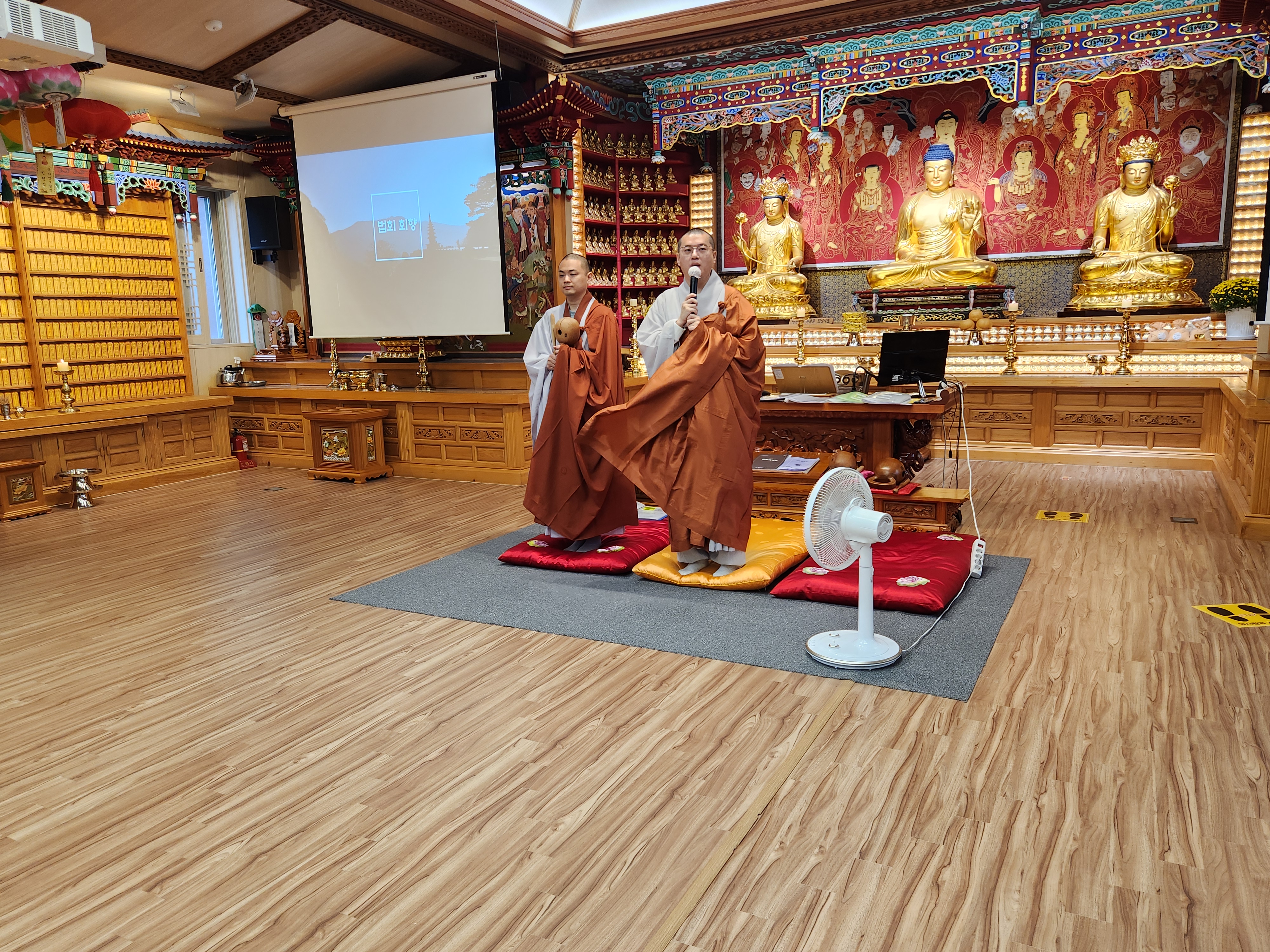 9.28(일) 국방부원광사 일요법회는 4주차 예불연 월례법회로서 법회 후에 탈북대학생 2명에 대한 장학금 수여식도 있었다.