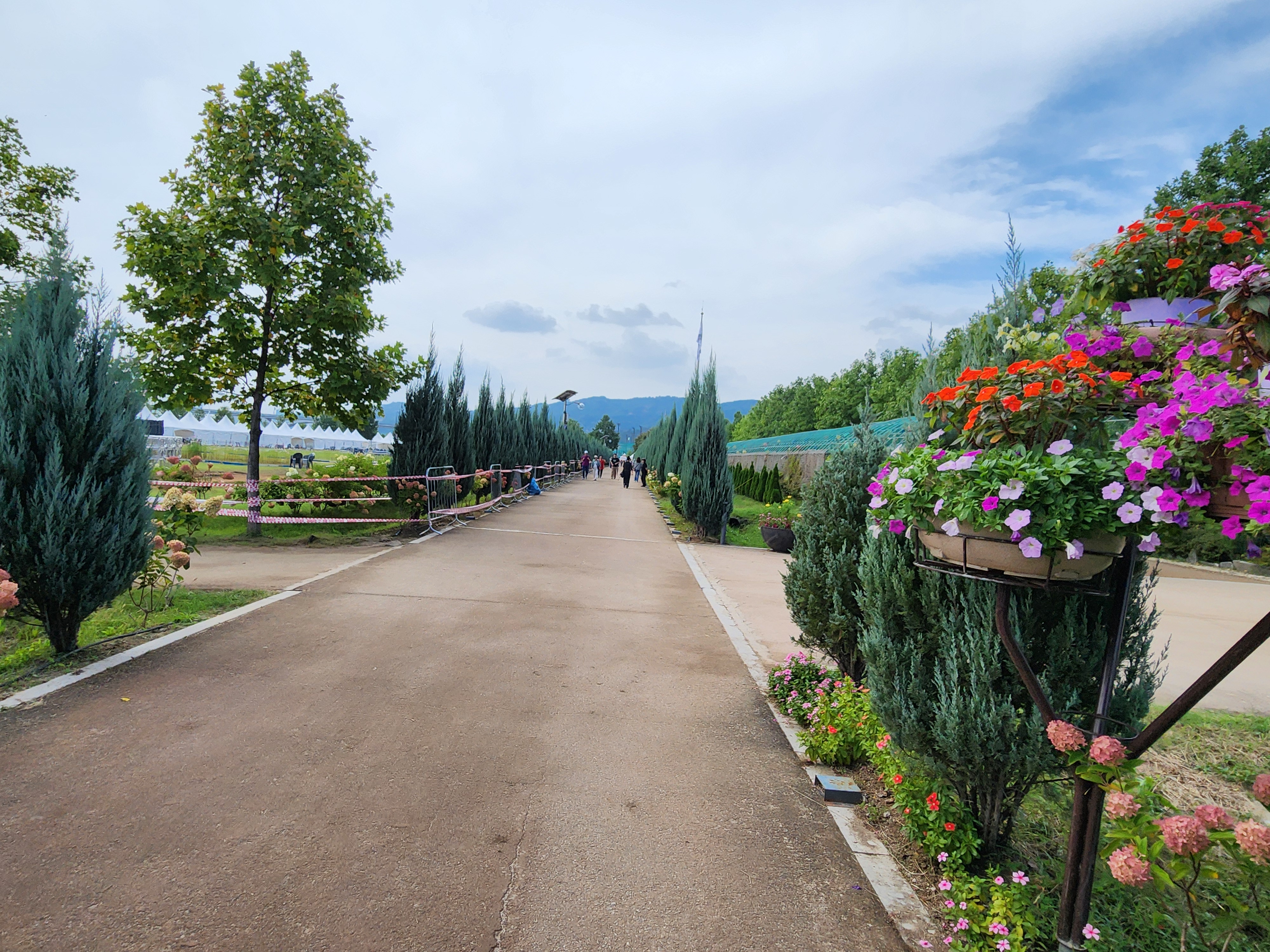 단지를 지나 주차장까지 이르는 사이에는 파아란 잔디위의 가족캠핑장이 있어 누구나 텐트를 가져가면 설치가 된다. 흙길이 잘 조성되어 있어 신발을 벗어들고 맨발로 걸어나온다. 다른데서는 보기 어려운 언뜻 보기에는 플라타나스 같은 백합(튤립)나무가 가로수로 쭉 늘어서 있는 풍경이 장관이다. 2010년~2015년에 걸쳐 백합나무 2천주를 기증한 김외정박사의 이름을 따서 김외정백합나무길로 명명되어 있다. 이쪽저쪽 허술한데 없이 자연스러우면서도 잘 가꾸어져 있다.