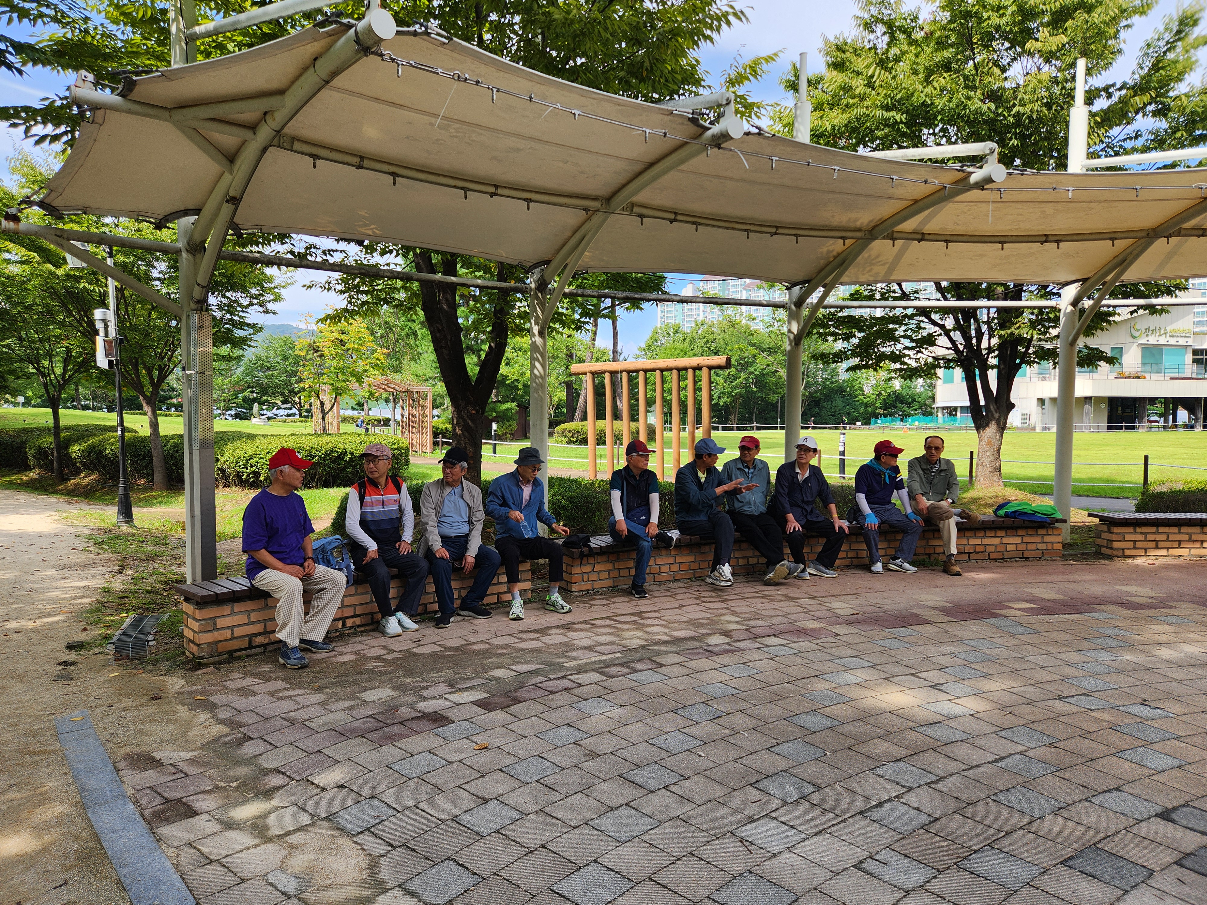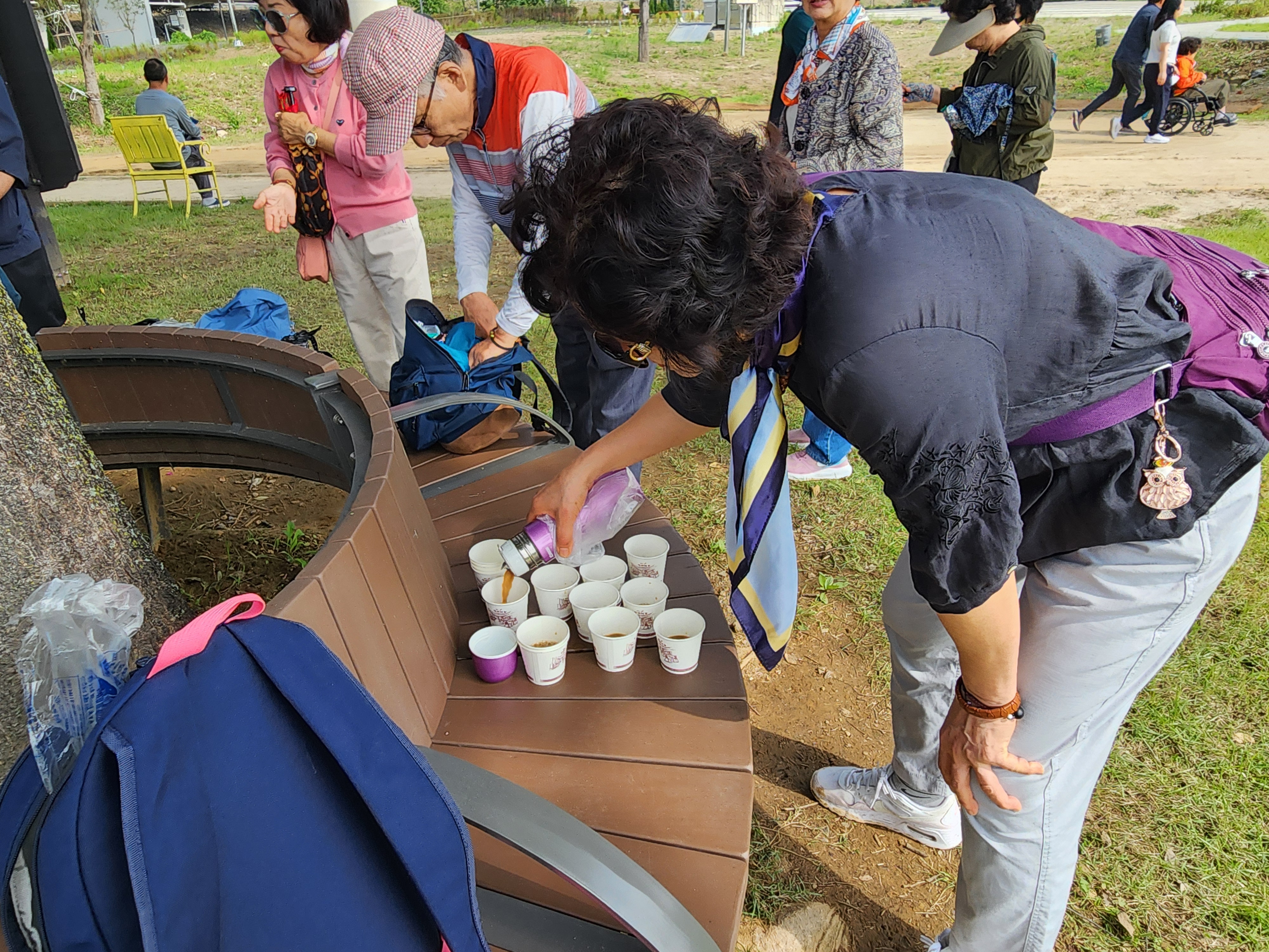 정자나무 아래에서 커피와 간식