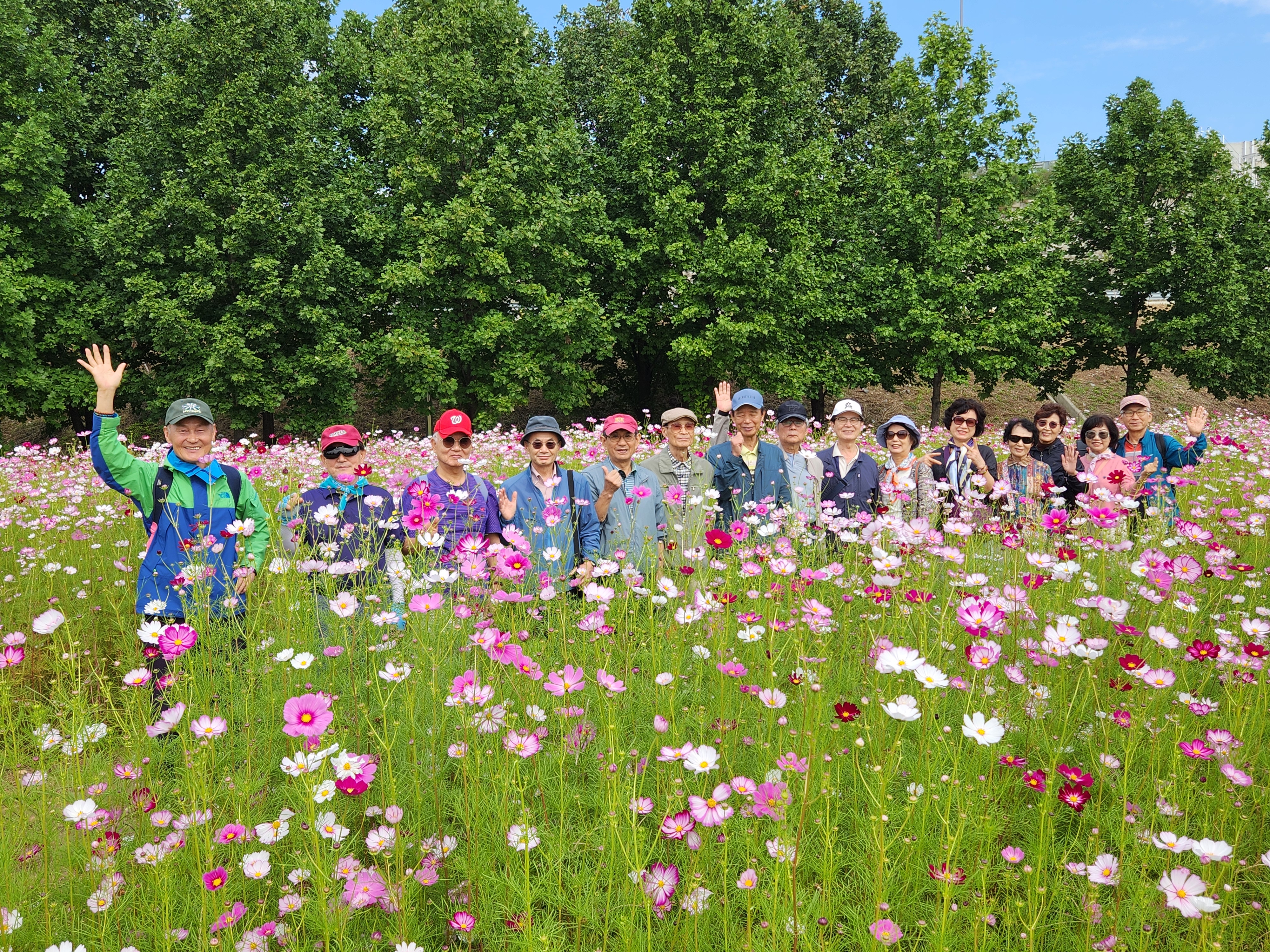 간간이 불어오는 가을바람에 목이 길다란 코스모스가 하늘거리는 가운데 친구와 가족들 17명이 가을나들이에 나섰다.