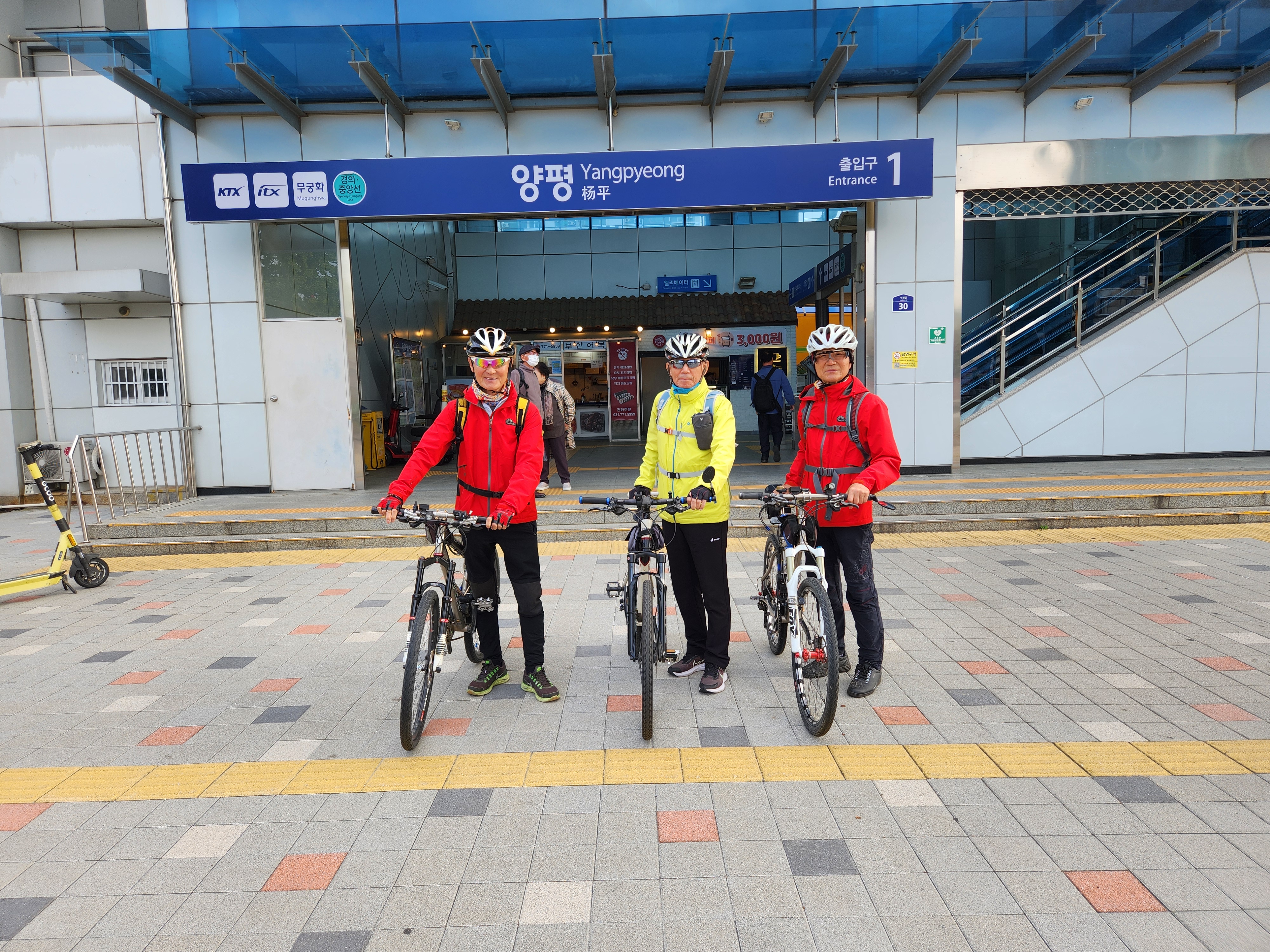'25.10.25(토) 0936, 양평역에서 동기회 자전거동호회 3명이 만나 서울방향으로 라이딩시작,