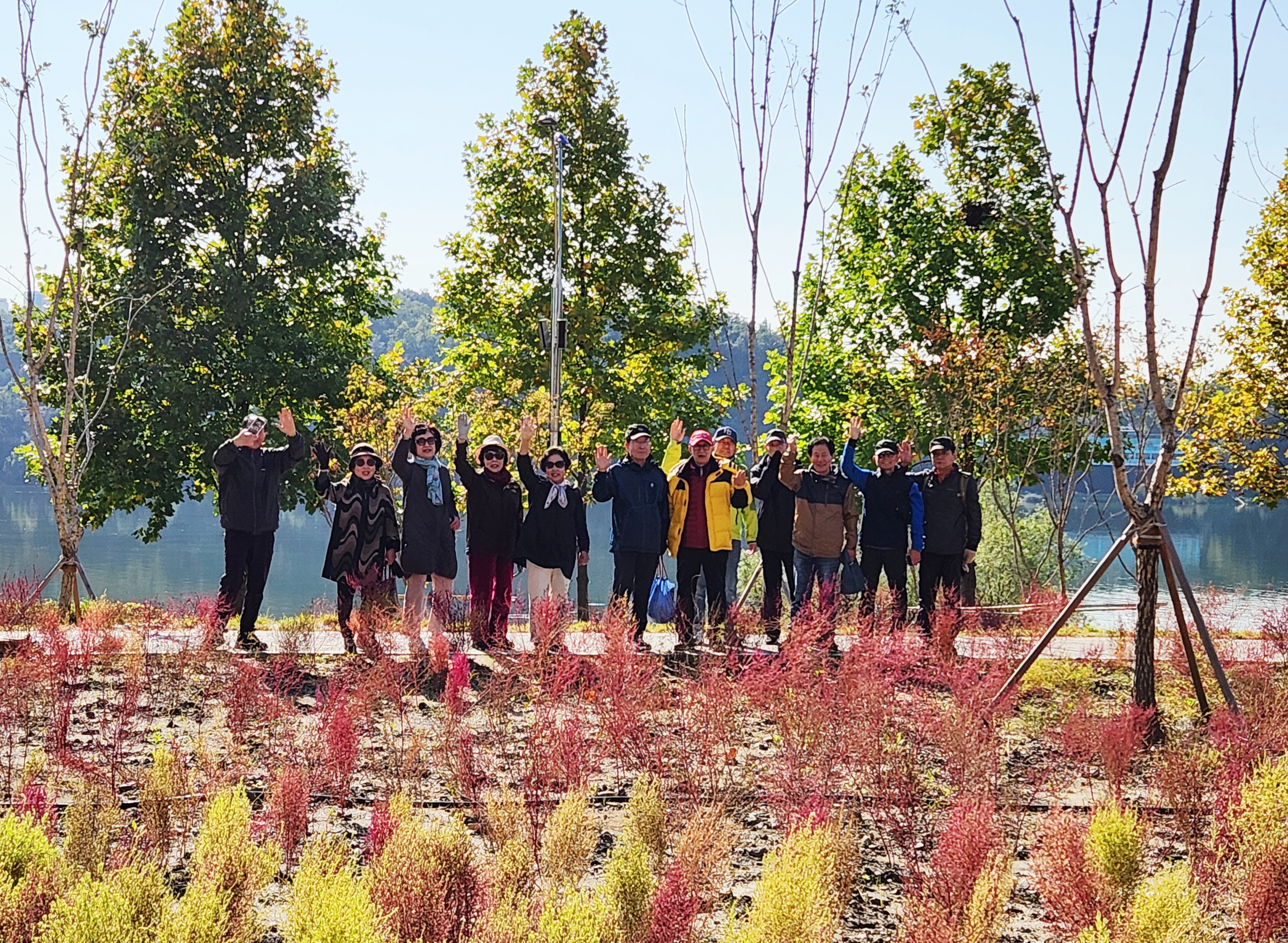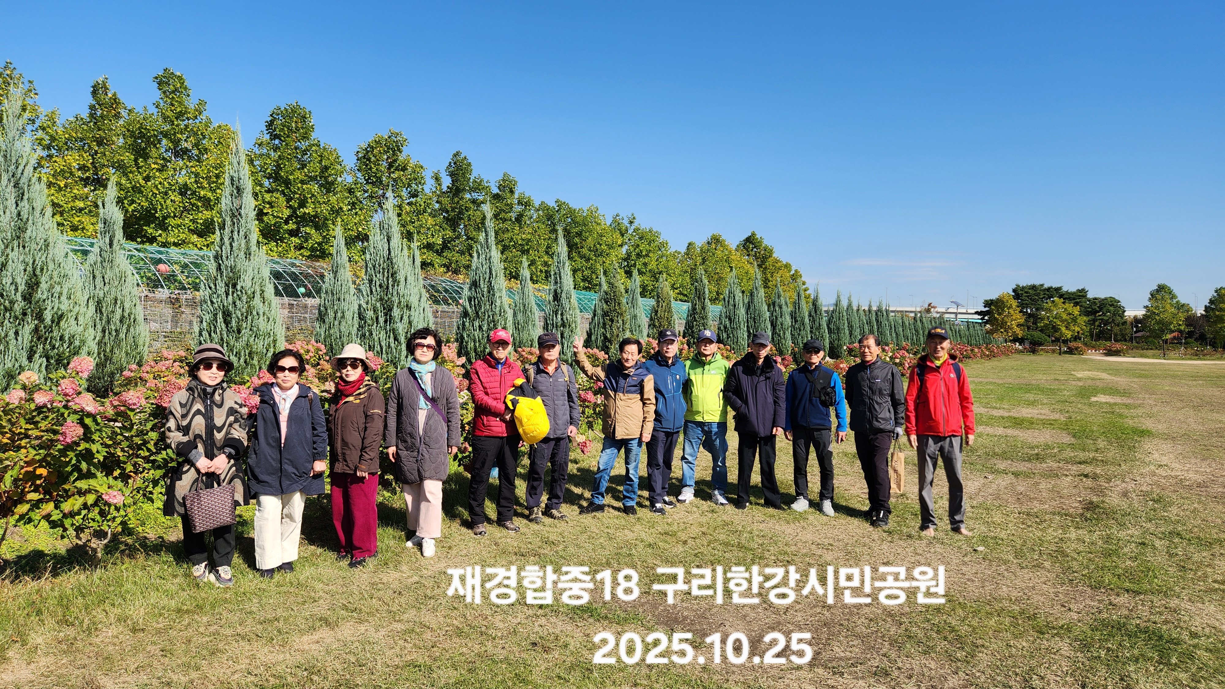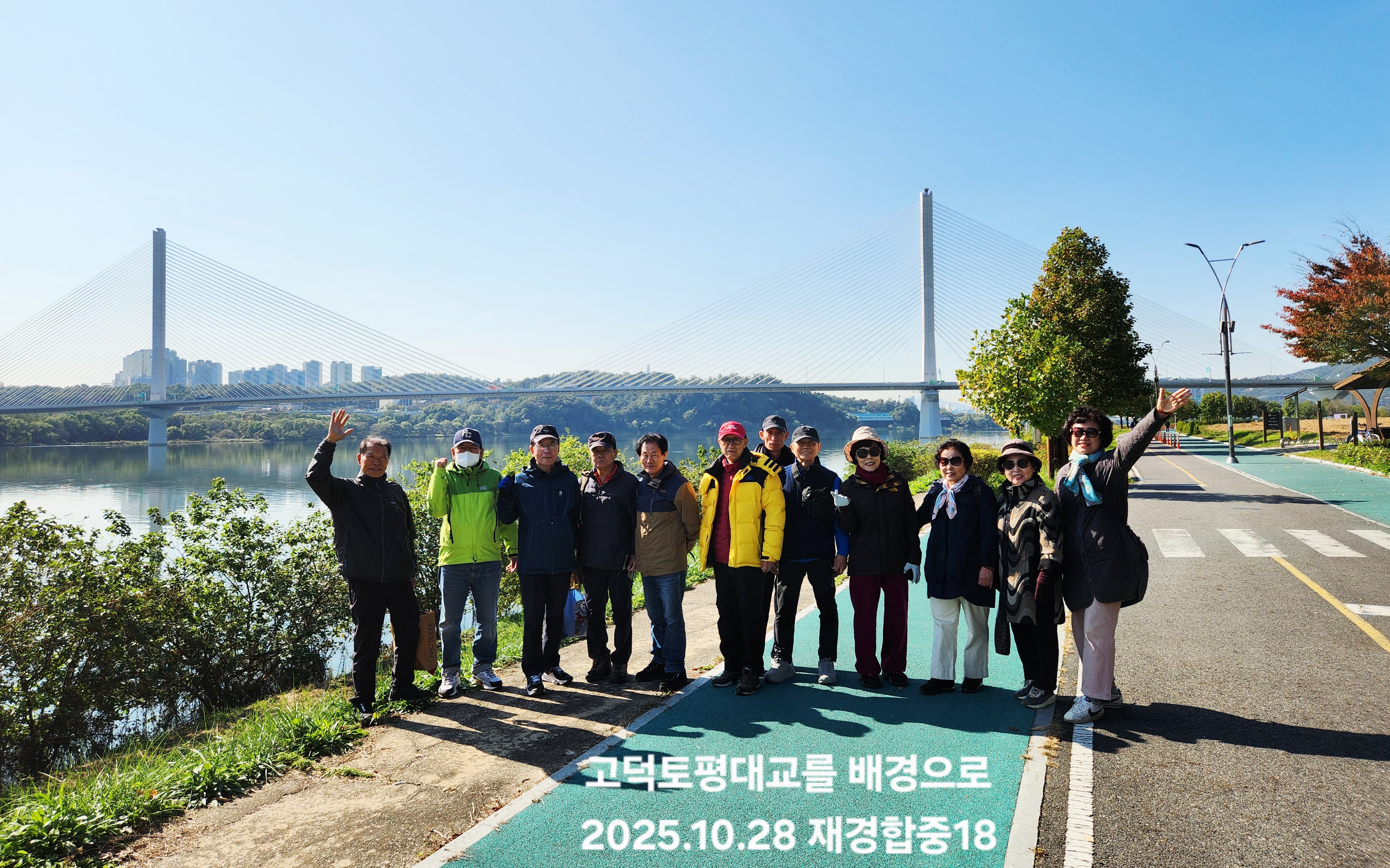 '25.10.28(화) 10:30, 잠실역 7출구에서 재경 합중18회 친구와 가족 13명이 만나 버스로 토평IC정류장 하차, 구리한강시민공원과 장자호수공원을 돌아보고 부근에서 점심식사