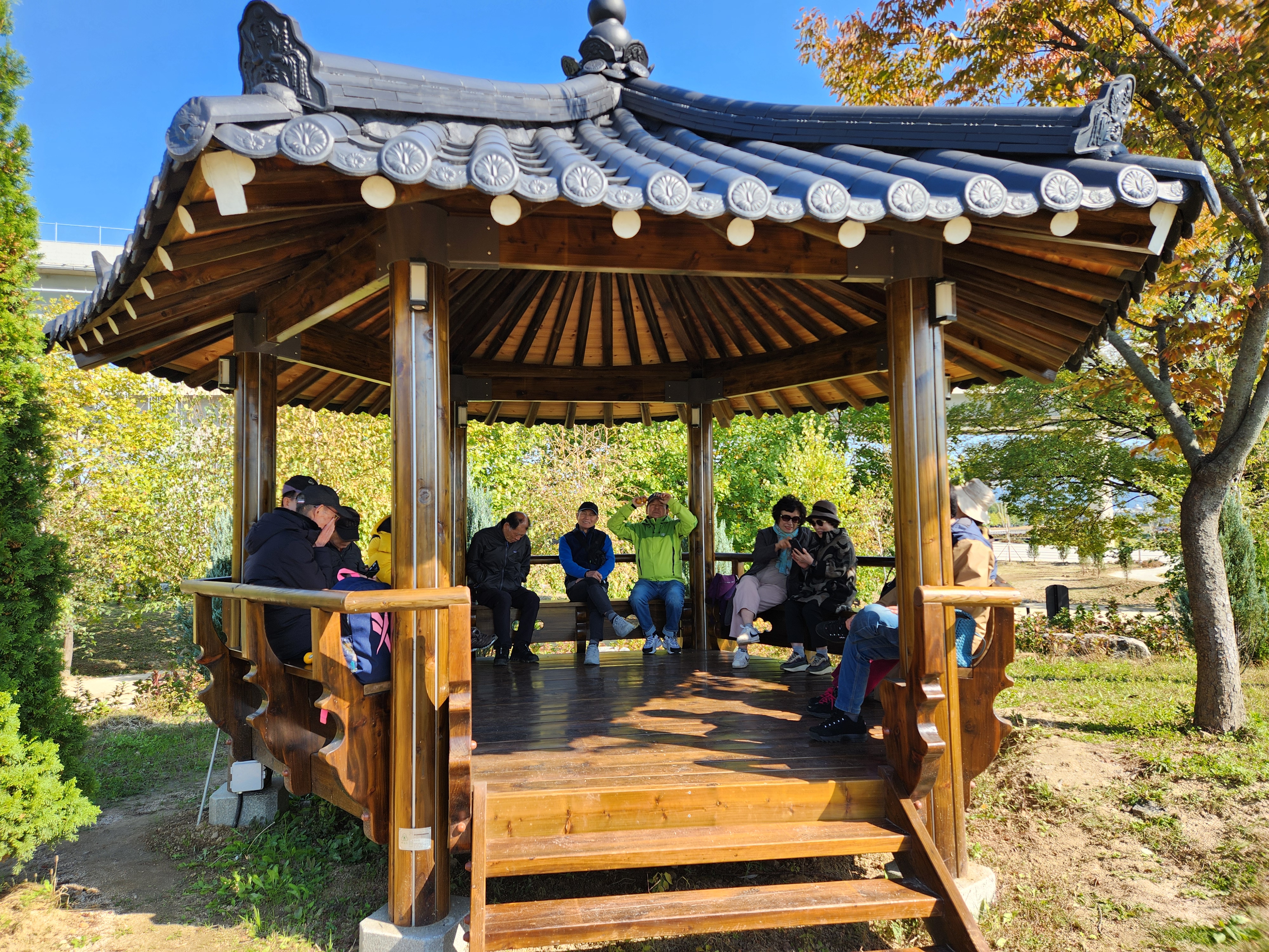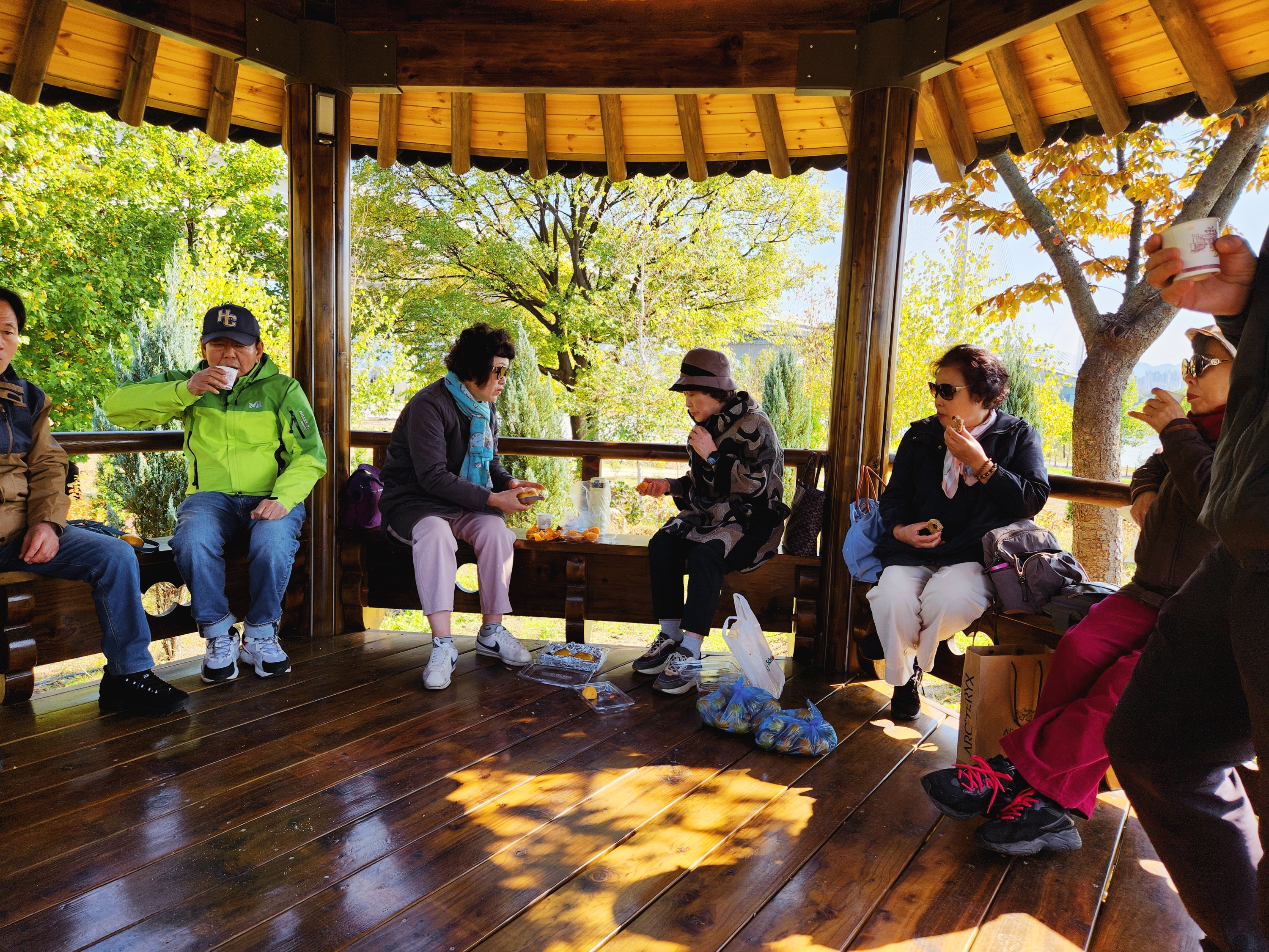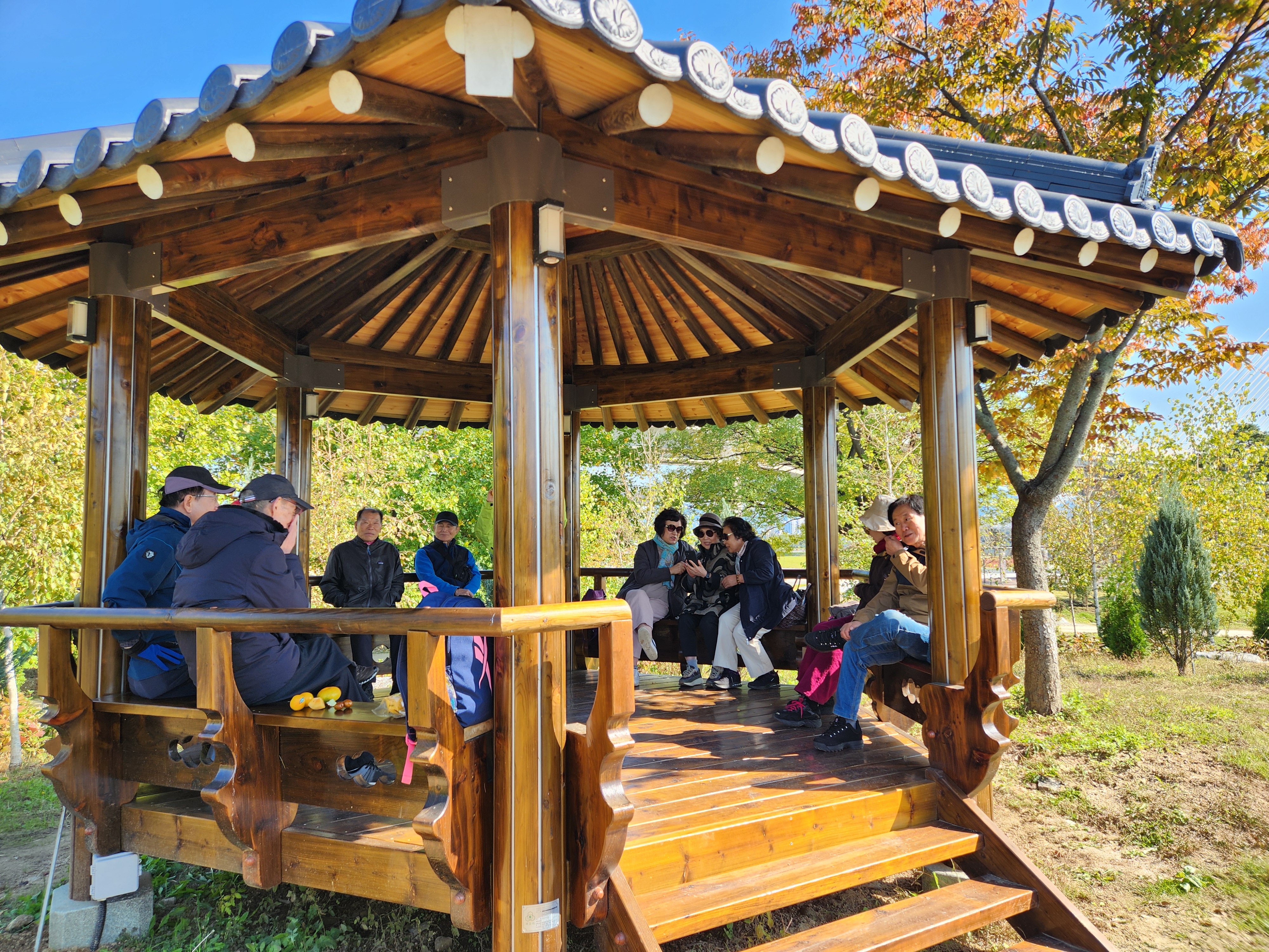 정자에 둘러앉아 가족들이 챙겨온 간식과 따끈한 커피로 야유회 분위기가 된다. 오래전부터 어린 아이들 데리고 전방부대 방문도 하고 여기저기 여행다닌 가족들이라 편안하다.캐나다, 호주뉴질랜드도 함께 다녀왔다.