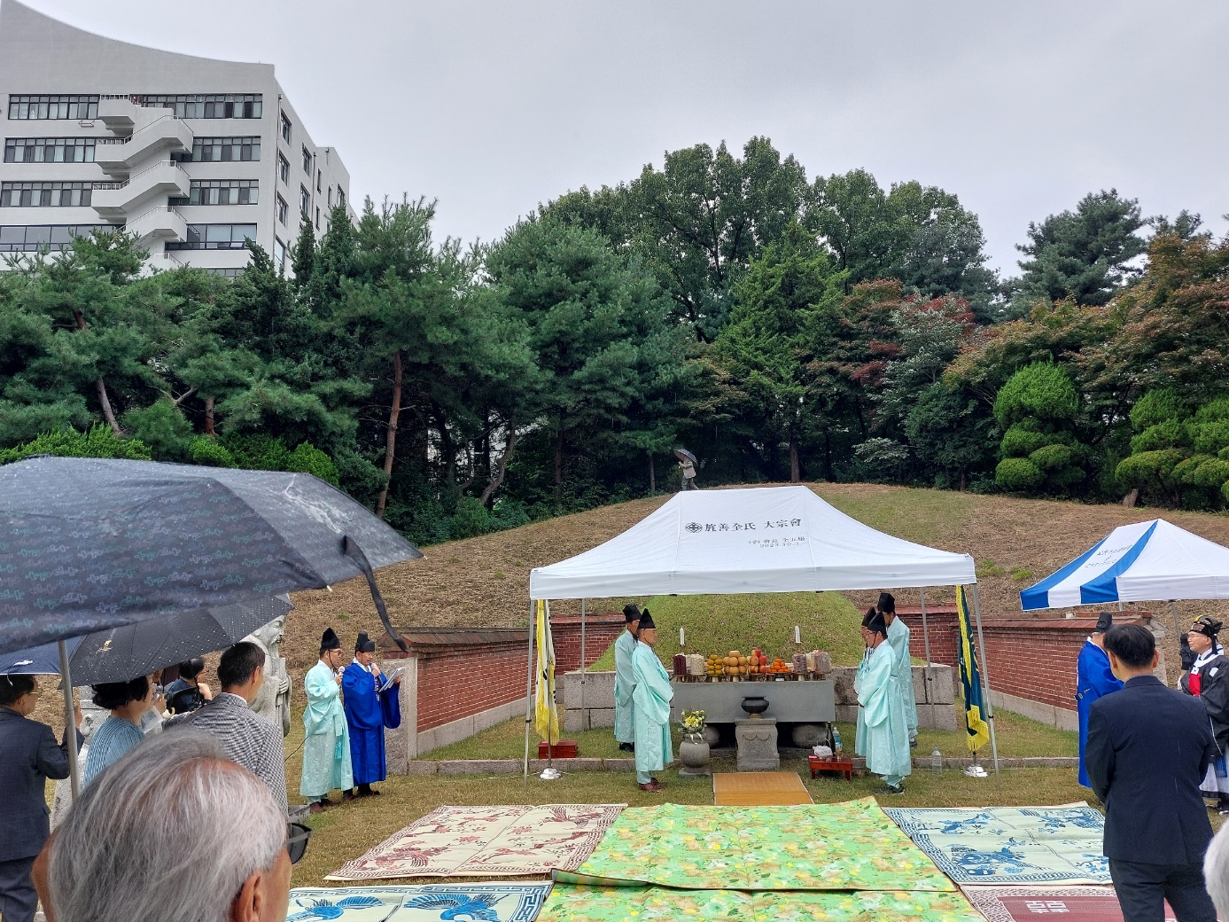 ●全氏의 시조인 2050여년 전 백제 온조왕 개국공신 환성군 재실과 단소가 위치한 이문동 경희고등학교 옆 천장산 기슭 단소에 10월 3일, 10시, 전국에서 全氏 宗人 200여명이 모여 중앙종친회 주관으로 전통방식의 시향을 모셨다.