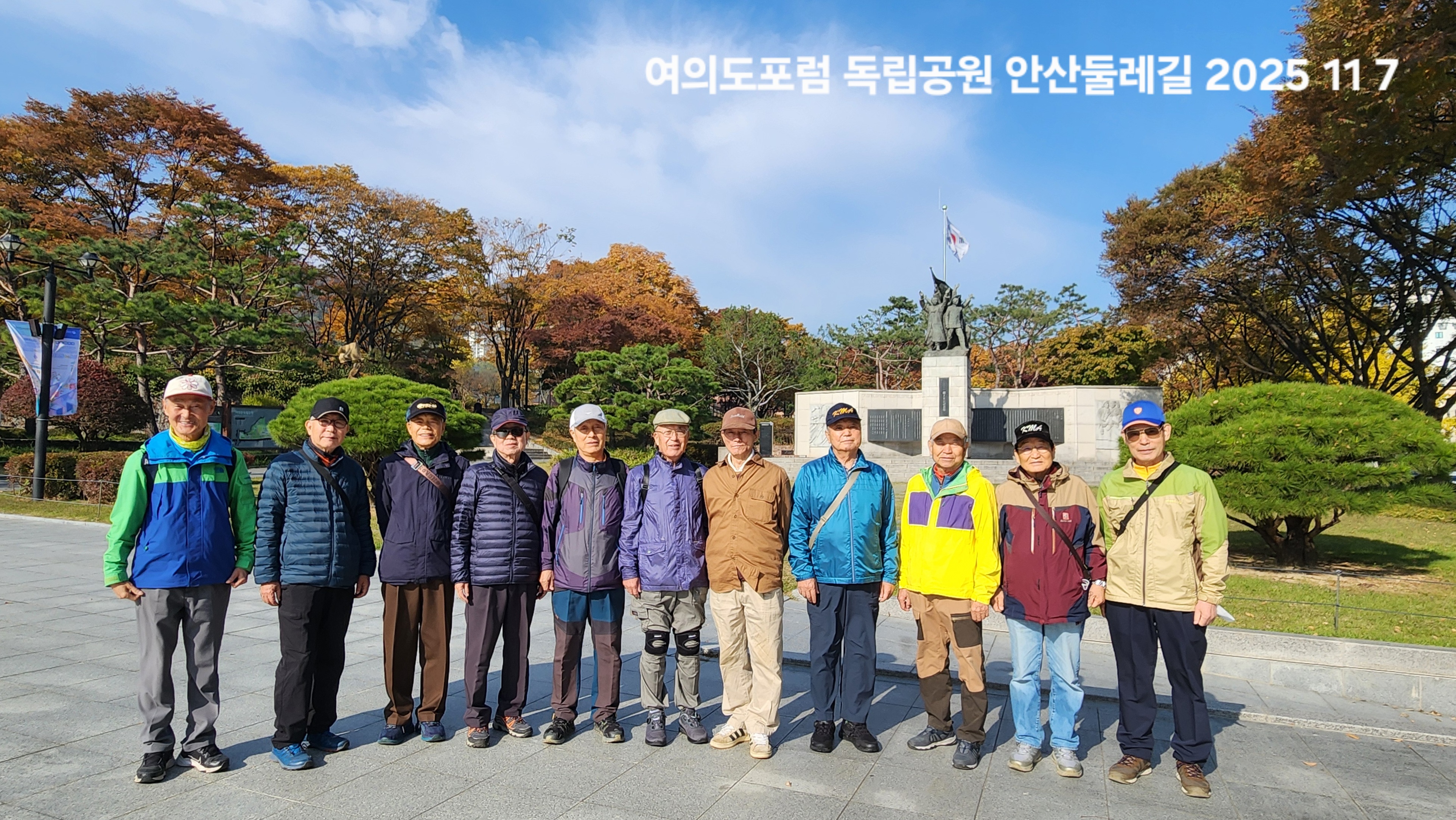 '25.11.7(금) 1030, 독립문역 4출구에서 동기회 여의도포럼 11명이 만나 안산자락길로 답사출발, 북측길을 돌아 홍제인공폭포에서 쉬었다가 1330경, 홍제역 부근 맛집에서 점심식사