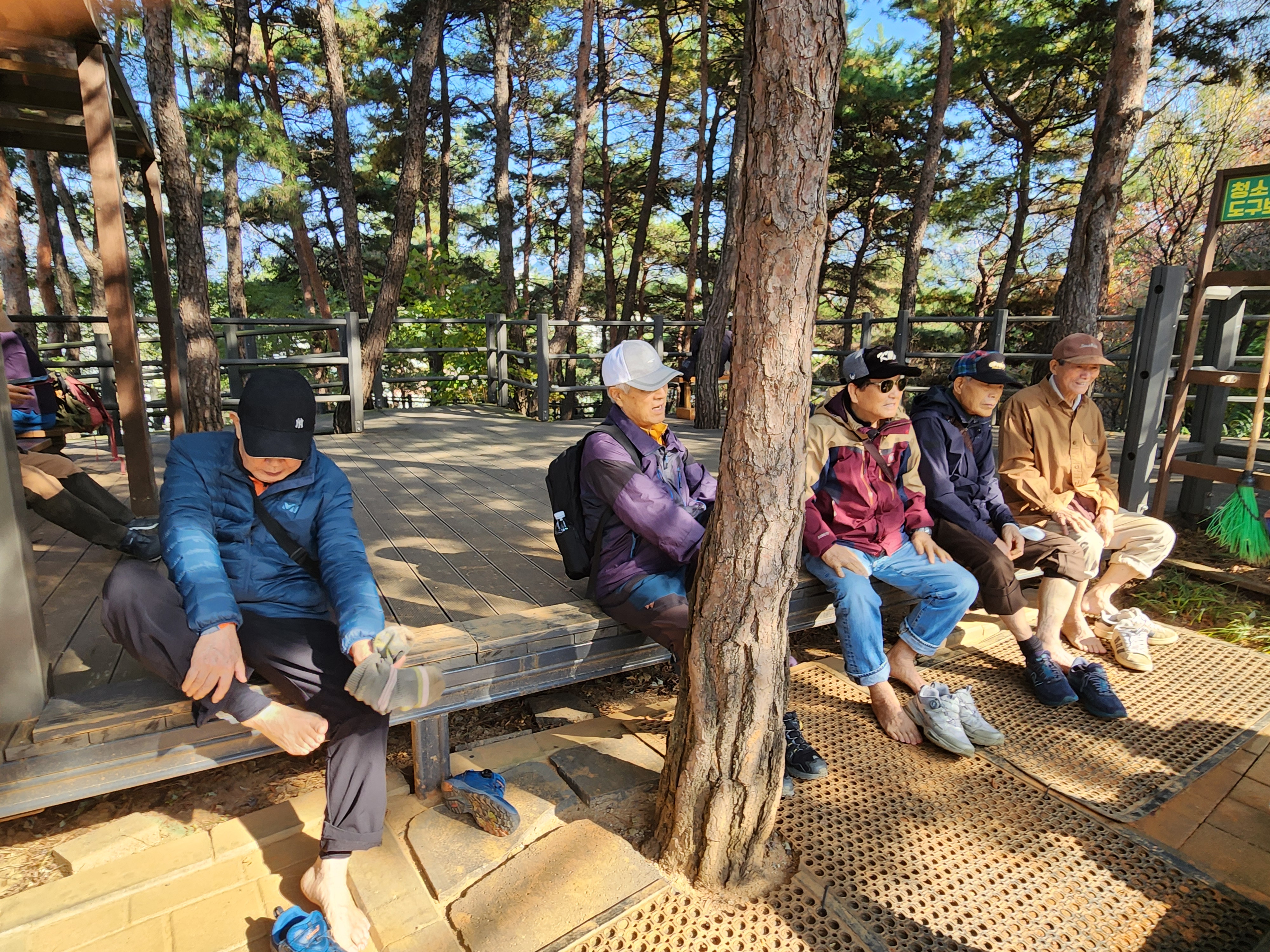 신발을 벗어들고 맨발로 걷기