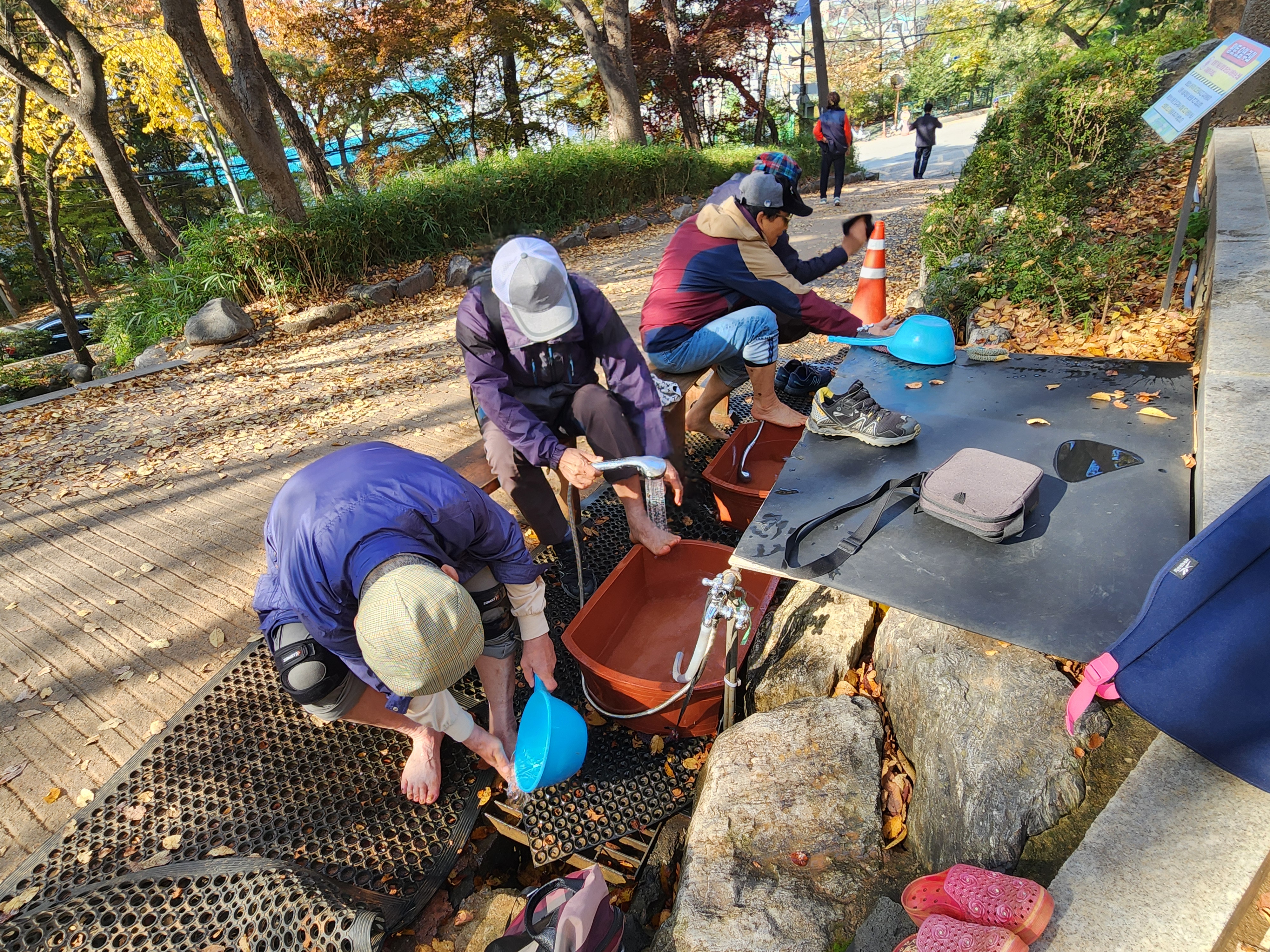 15분정도 걸어내려와서 발을 씻고