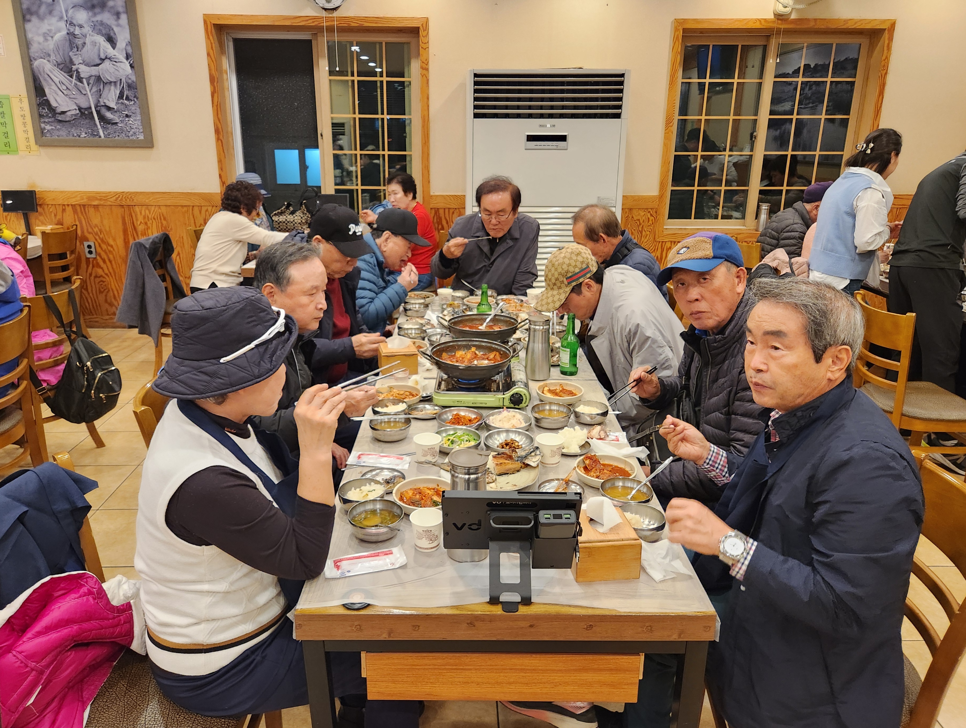부산울산서울 친구들 함께 버스로 식당으로 이동, 저녁식사