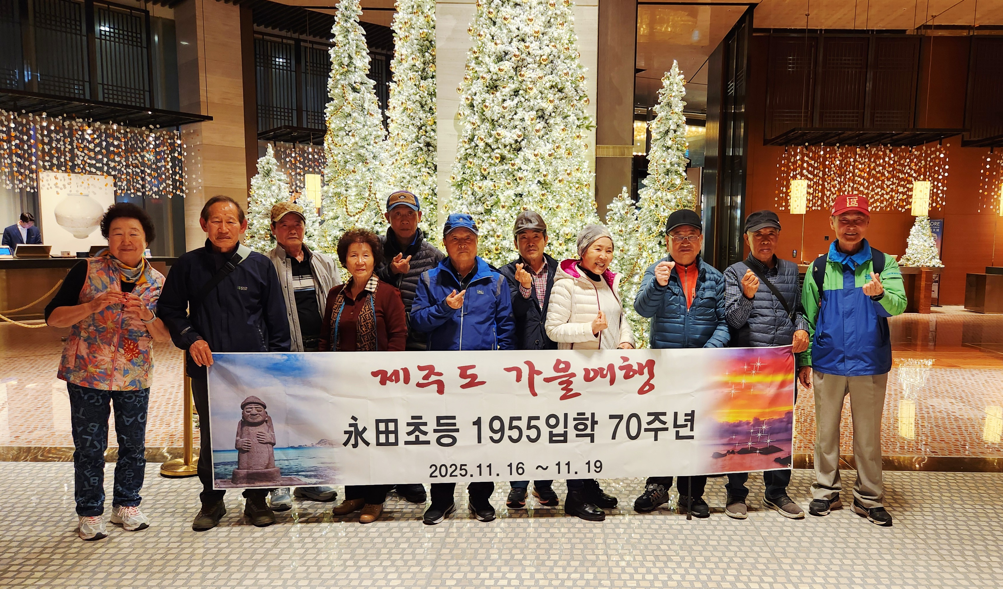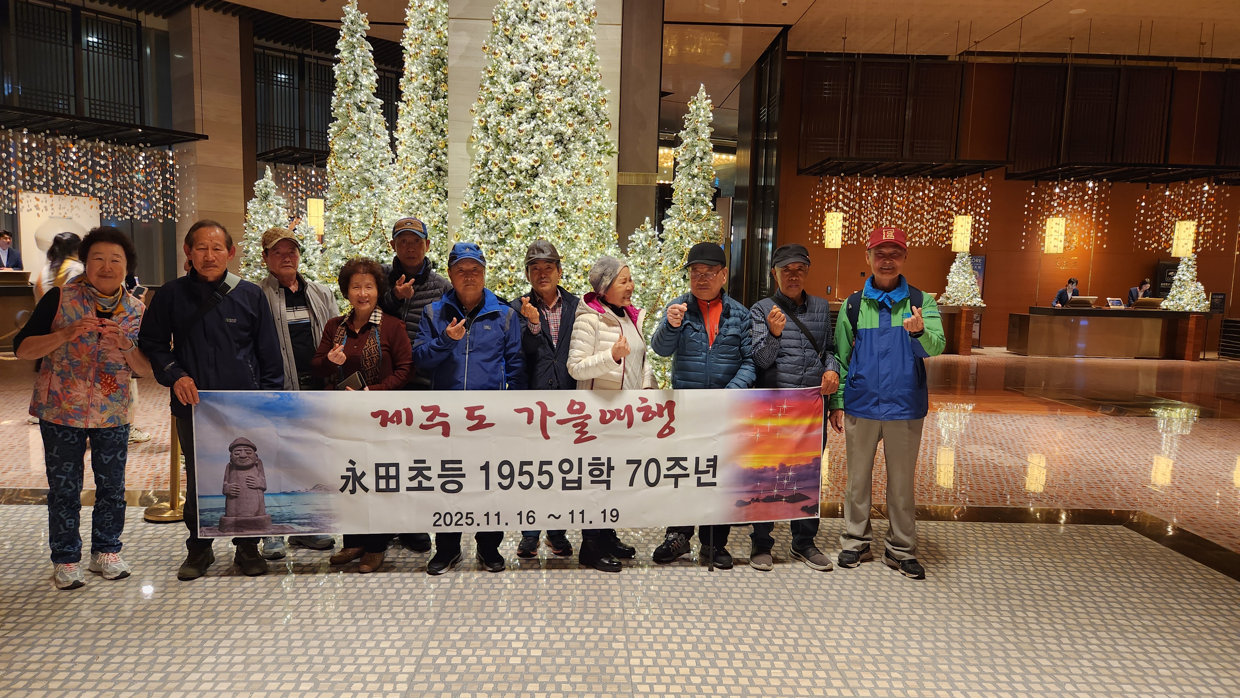 永田초등에 1955년 입학한 친구들 19명이 입학 70주년기념으로 제주도로 3박4일 여행.