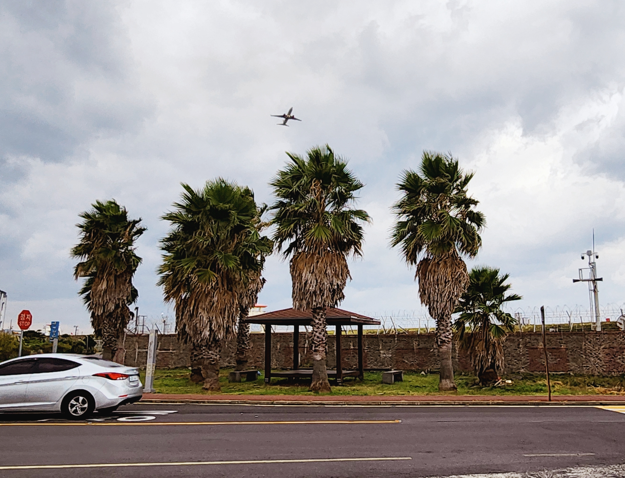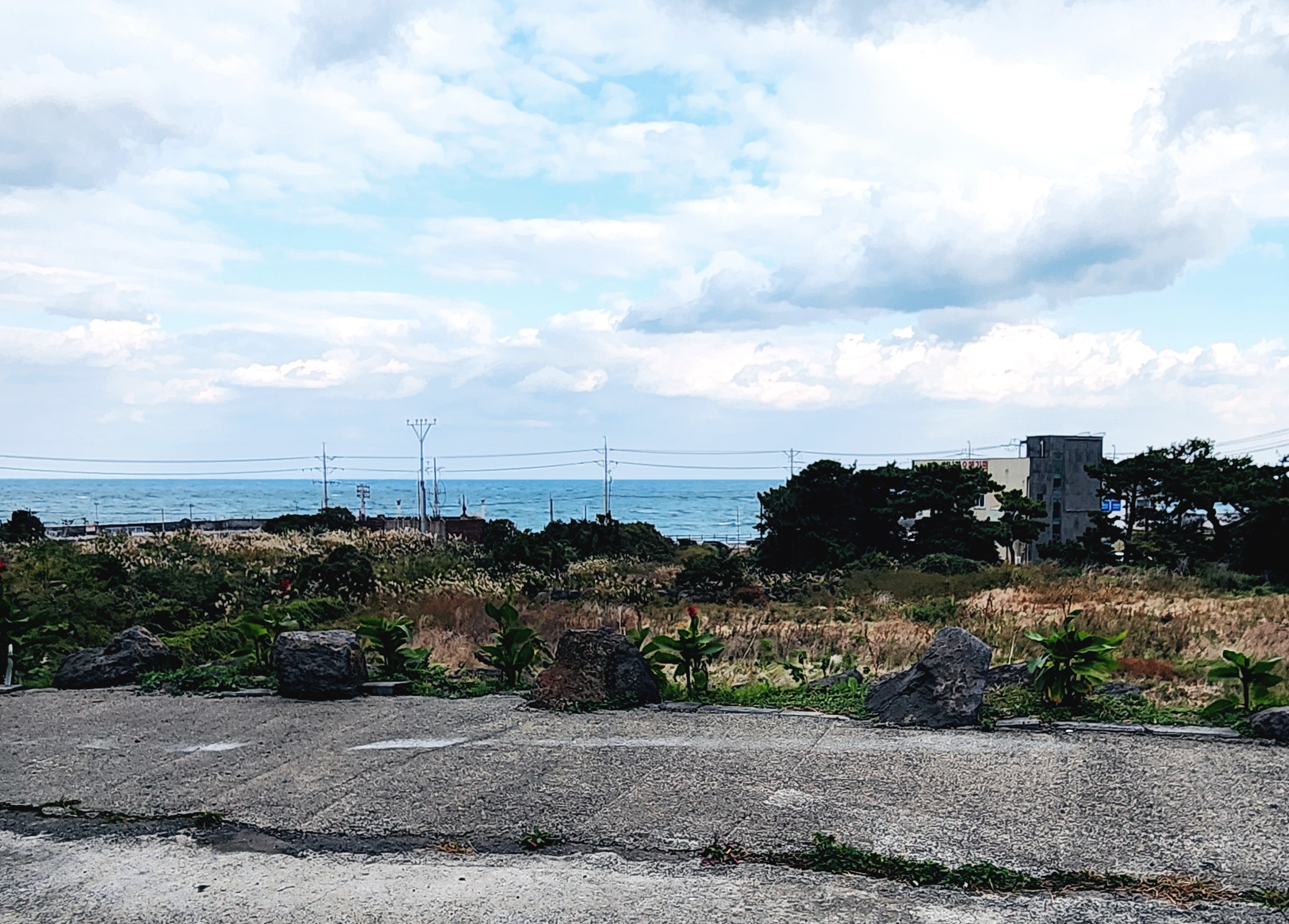 비가 내릴거라는 예보가 있어 우산도 챙기고 나섰다. 제주지역 날씨는 '곳에 따라 한때'의 편차가 무척 심하다고 한다. 대체로 북쪽인 제주시지역은 바람이 많이 부는데 비해 남쪽인 서귀포지역은 언제나 포근하고 바람도 고요하다고 한다. 서쪽 어느 지역은 몹쓸 바람이 하도 부는 포구라서 이름이 '모슬포'로 불리워지고 있다는 이야기도 전해져 내려온단다. 비가 오다가도 그치면 흔적도 없이 깨끗해진다고 한다. 다행히도 우리가 가는 지역마다 바람은 불어도 비는 내리지 않고 파아란 하늘도 가끔씩 보인다.