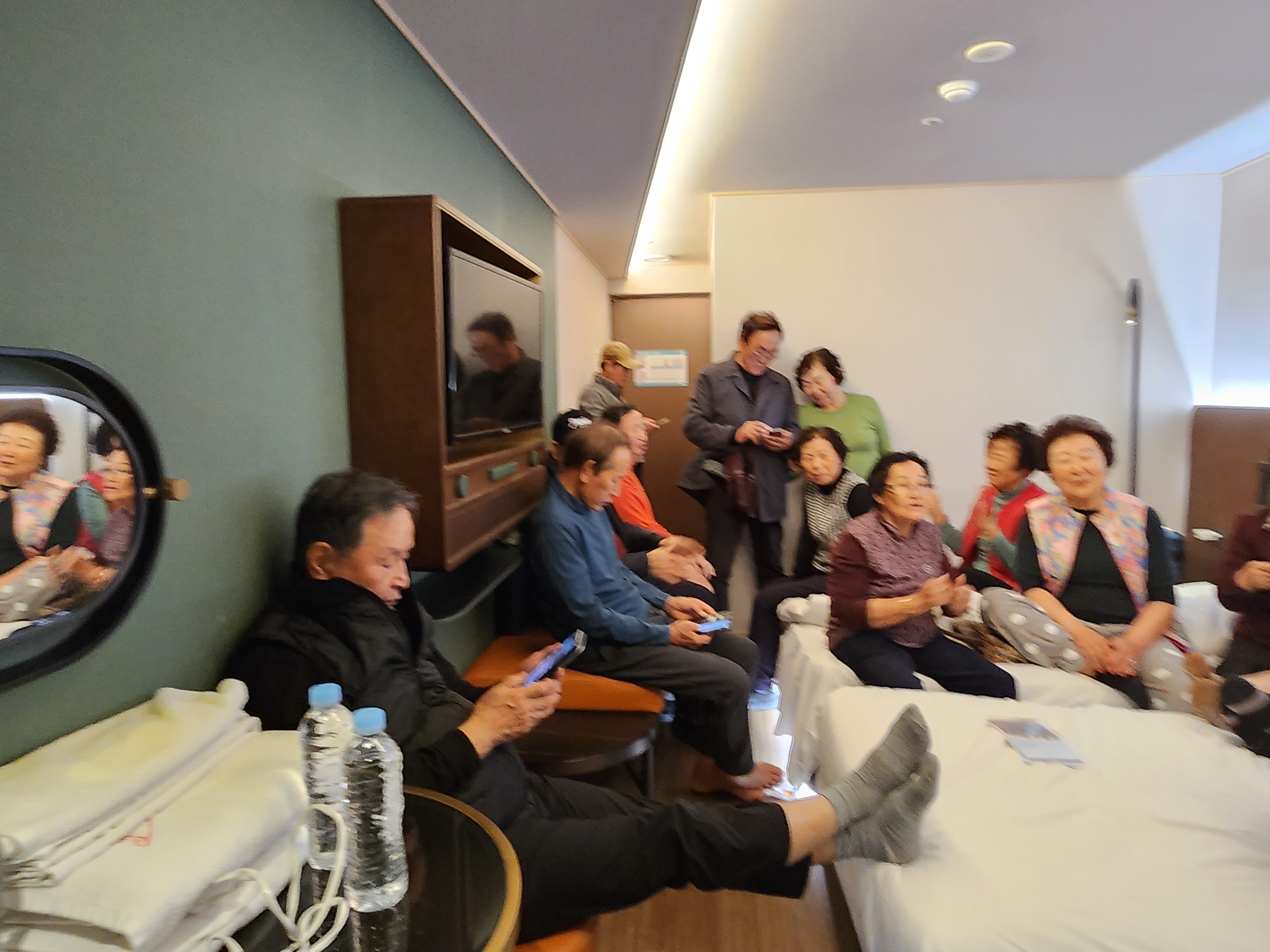 우리 방에 다 모여 미리 인사를 나누다 보니 여행찬조가 많이 들어온다. 아무래도 다음번 여행을 주선해야 될 것같다.