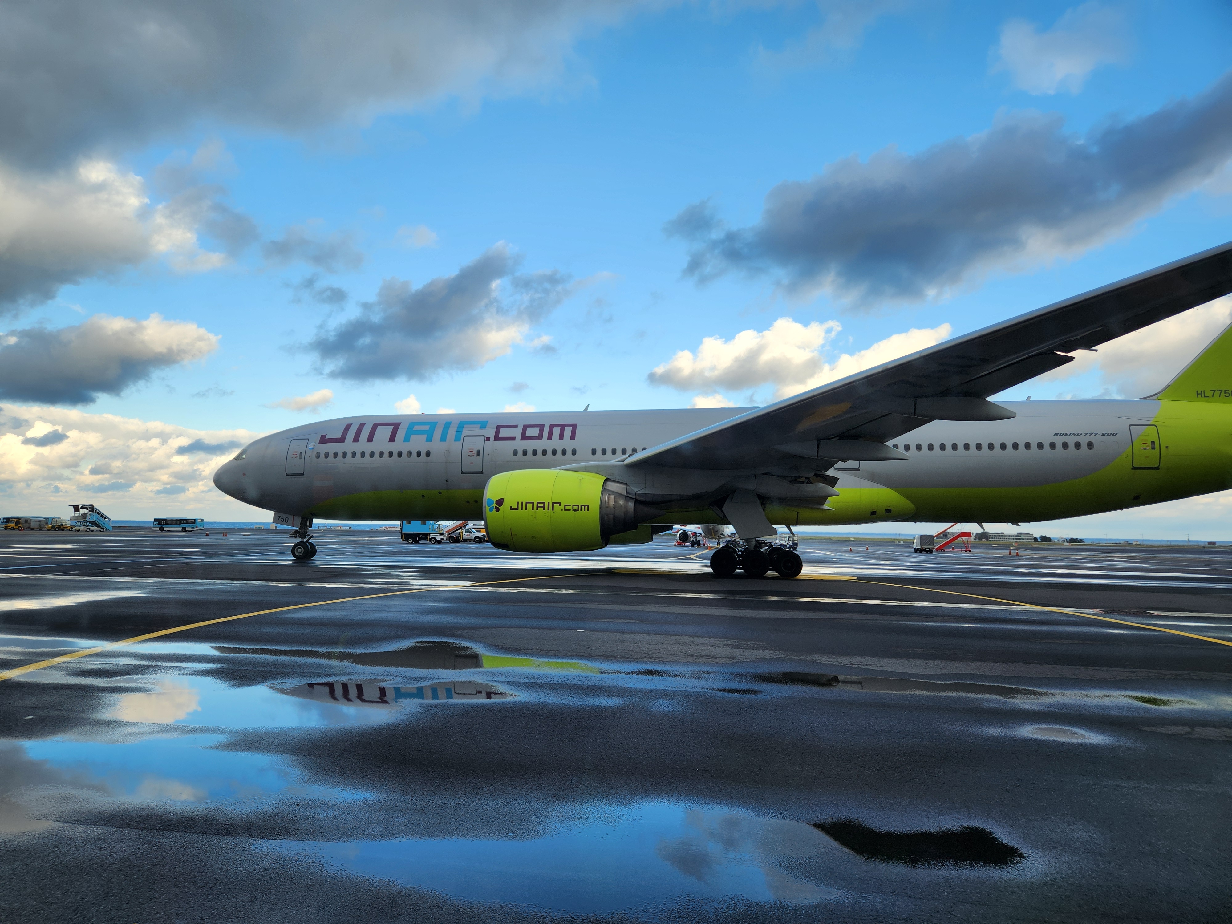 제주공항에서 비행기가 이륙하고 있다.