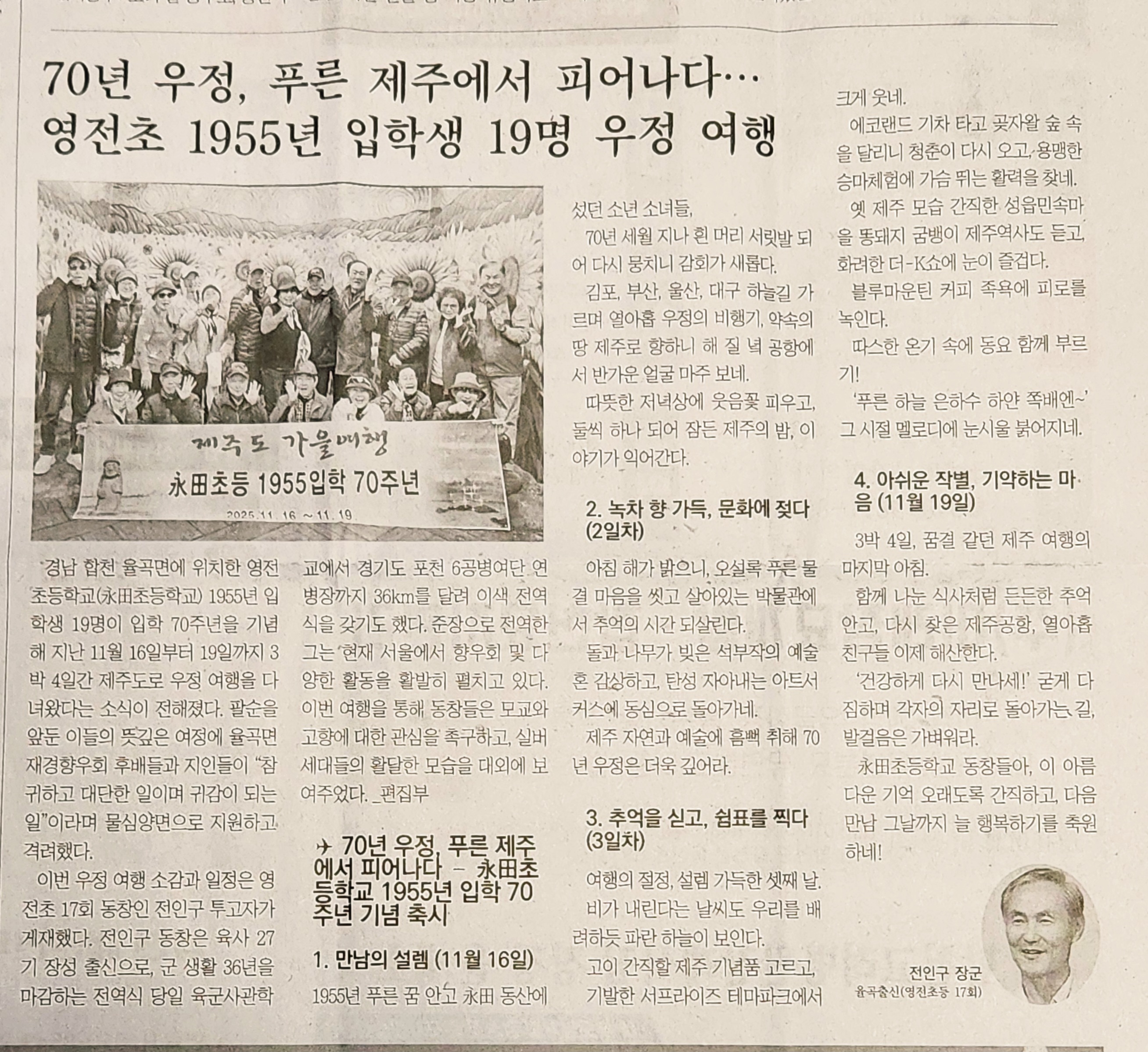 | 永田초등 1955년 입학70주년기념 19명이 제주도 3박4일 여행- 첫날 (1) | 2025.11.16 |