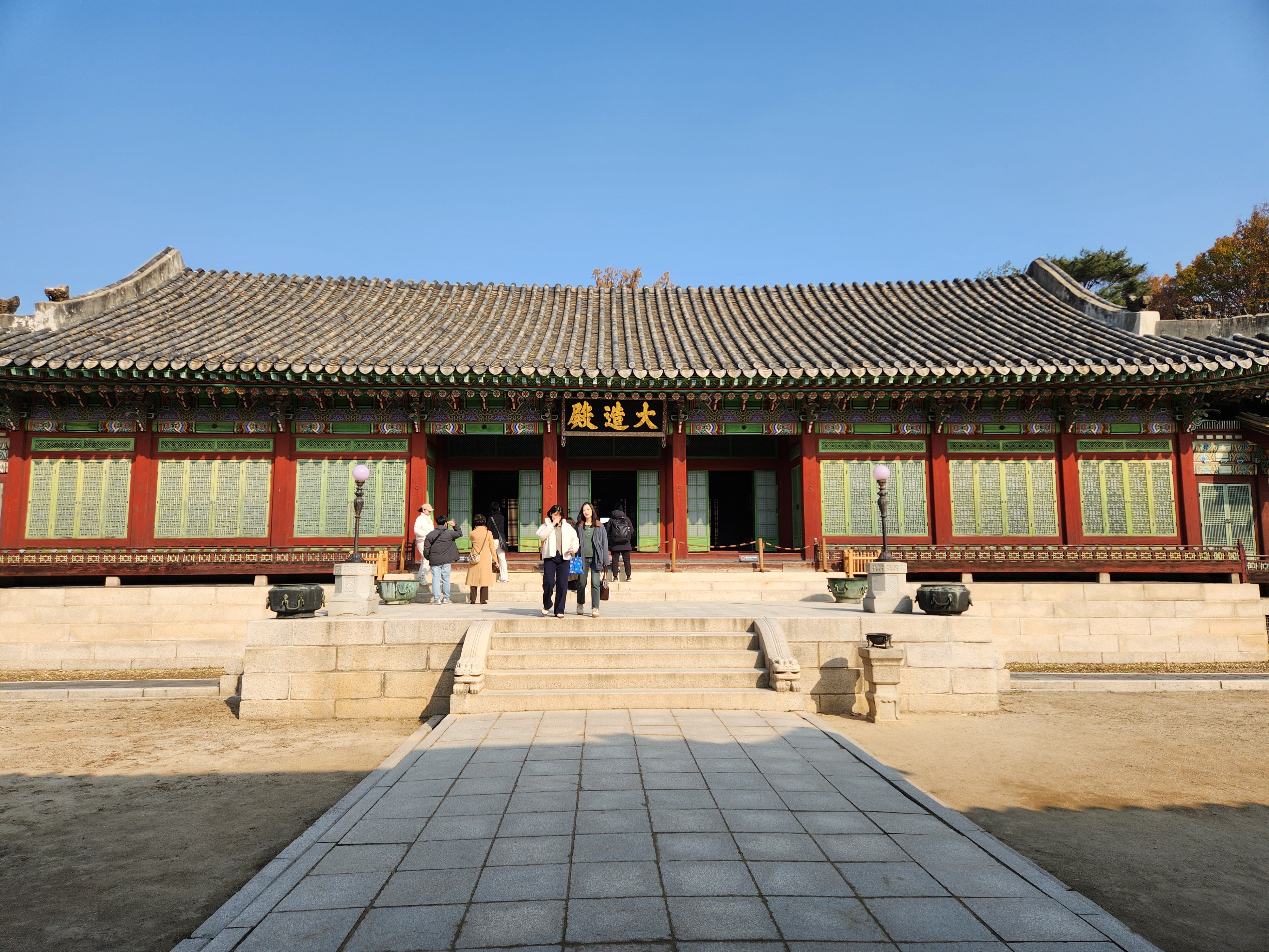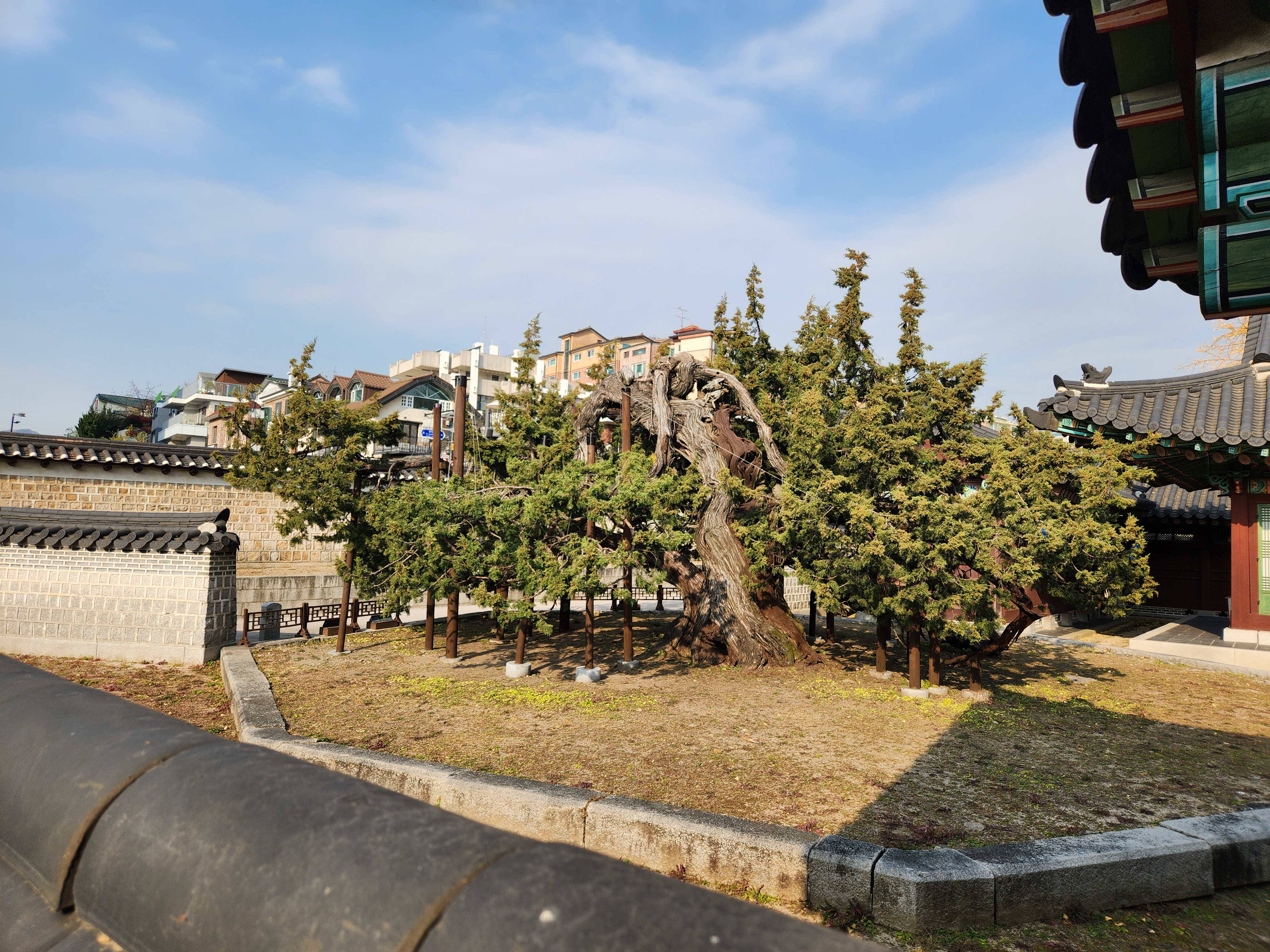 창경궁으로 입장하여 왼쪽편에 있는 건물로 들어가 담장너머로 700년 龍향나무를 보고 창덕궁 본전으로 이동