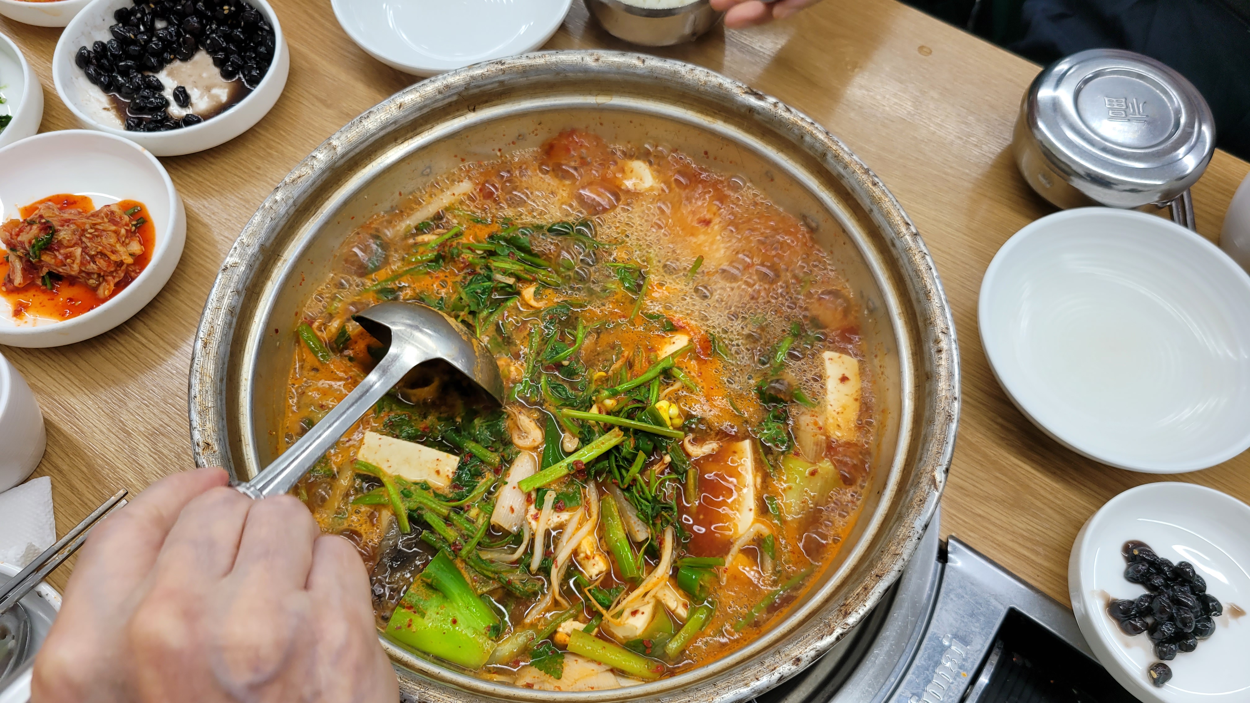 버스를 타고 3정거장 이동하여 점심식사 식당으로 갔다. 작지만 유명 맛집으로 가성비가 좋다. 점심 피크시간을 피해 2시에 맞춰 18명이 갔는데 이후에도 계속 손님들이 바삐 오가고 있다. 식사를 하고 후식을 나누면서 오늘의 감회를 AI비서에게 정리토록 부탁한 축시를 낭송했다.