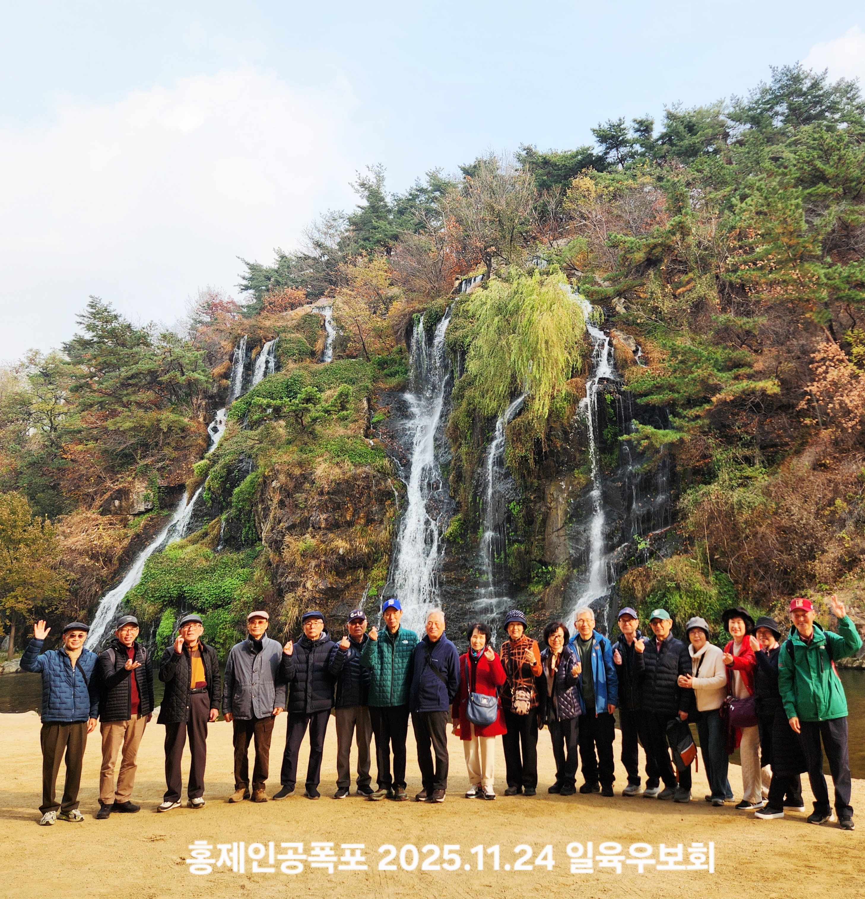 '25.11.24(월) 10:30, 3호선 독립문역 4출구에서 고교 일육우보회 18명이 만나 독립공원, 안산자락길, 황토맨발길, 홍제인공폭포 돌아보고