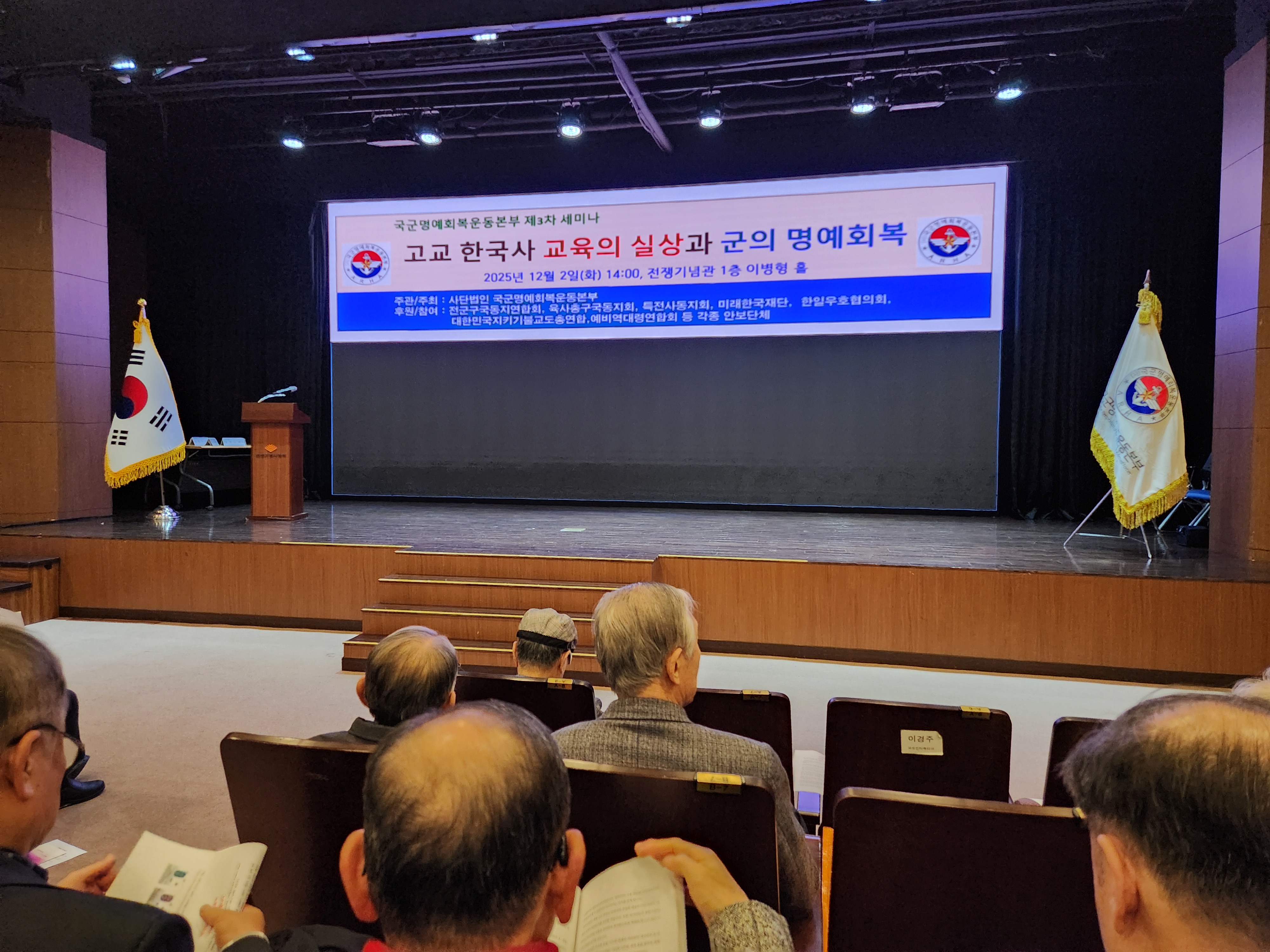 '25.12.2(화) 15시, 전쟁기념관 이병형홀에서 사단법인 국군명예회복운동본부 주관으로
