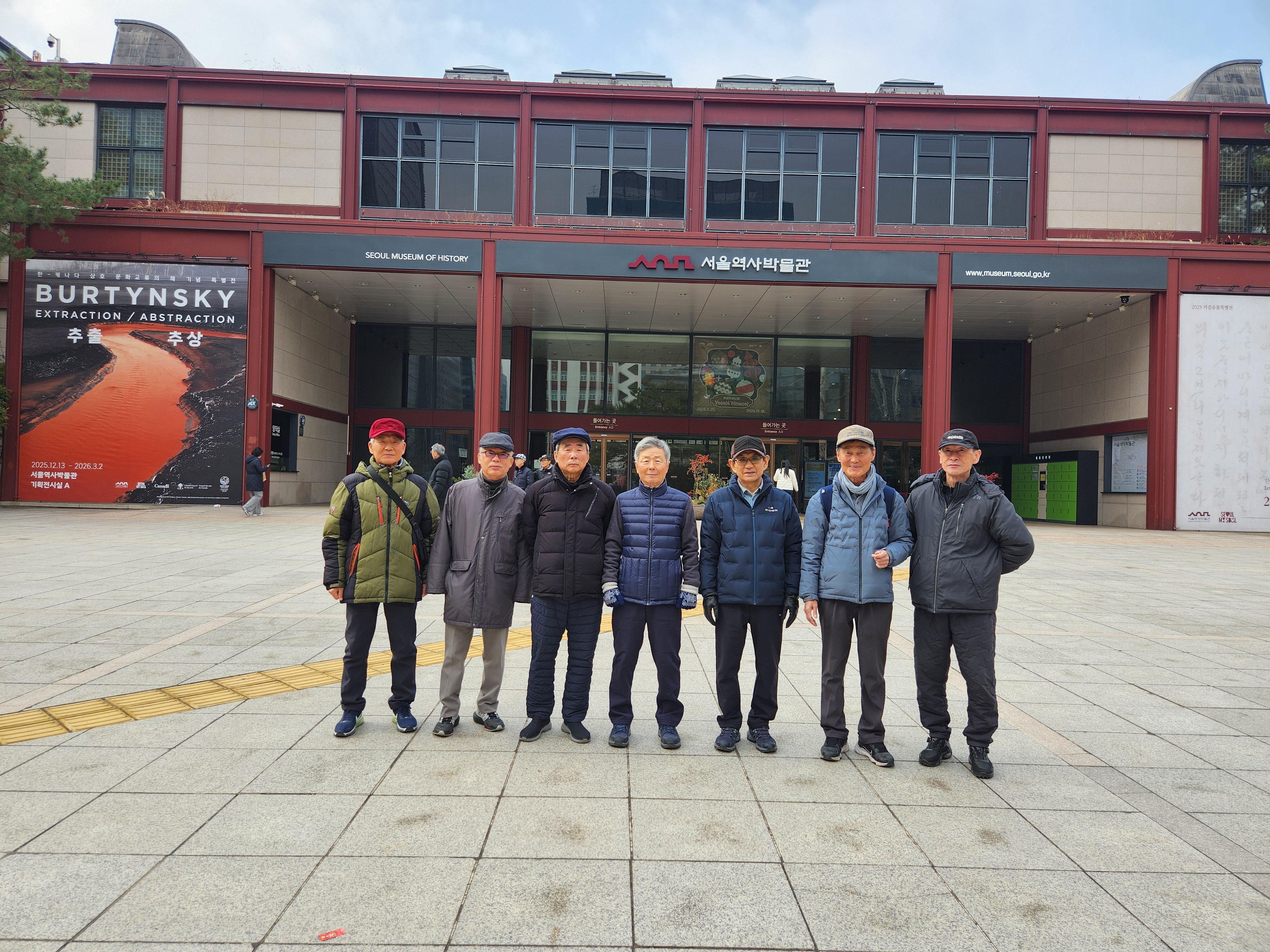 '25.12.10(수) 10:30, 5호선 서대문역 4출구에서 고교 반창회 친구들 7명이 만나 근래에 복원된 경희궁과 서울역사박물관을 돌아보고 광화문 부근 맛집에서 점심식사