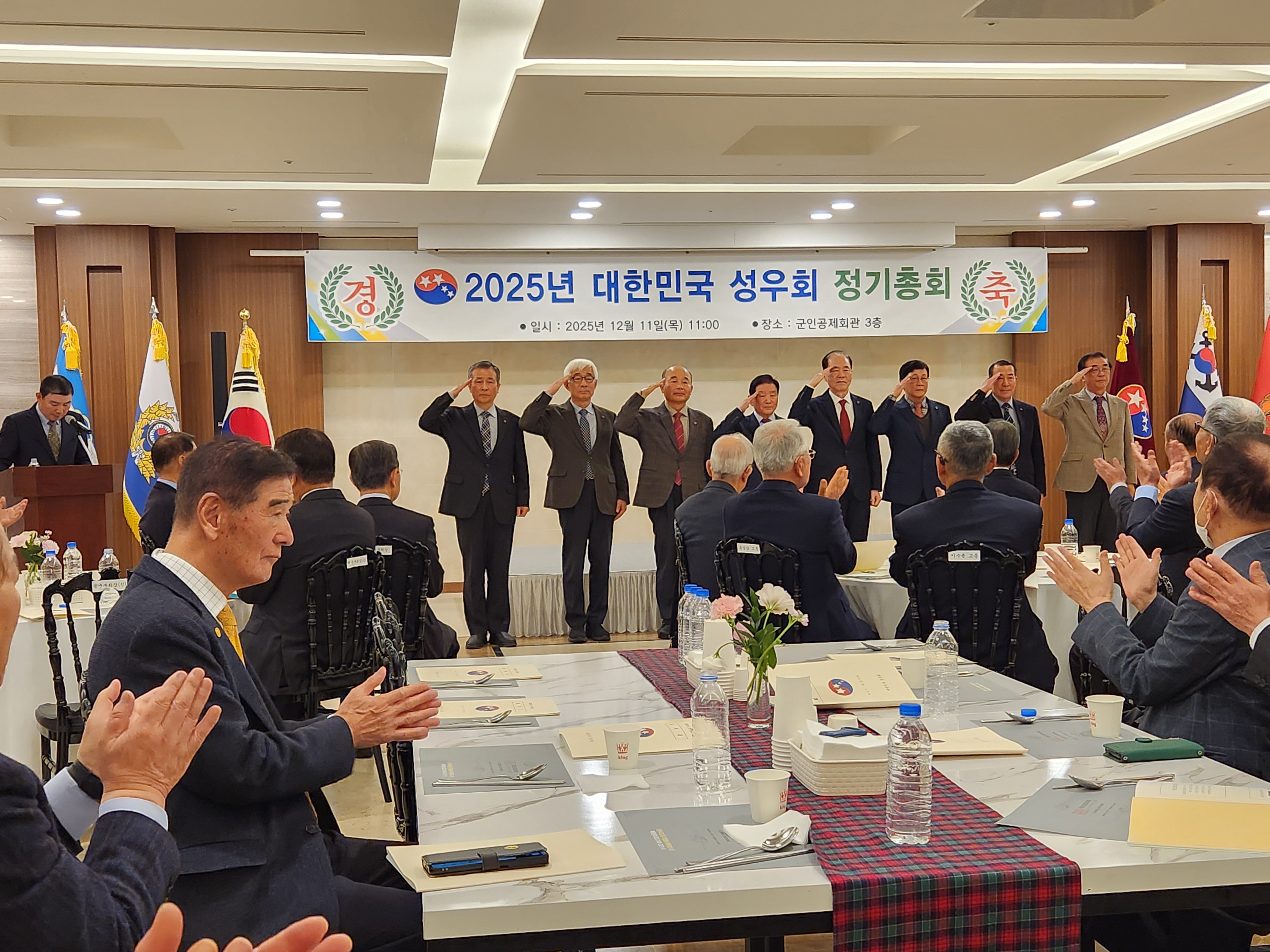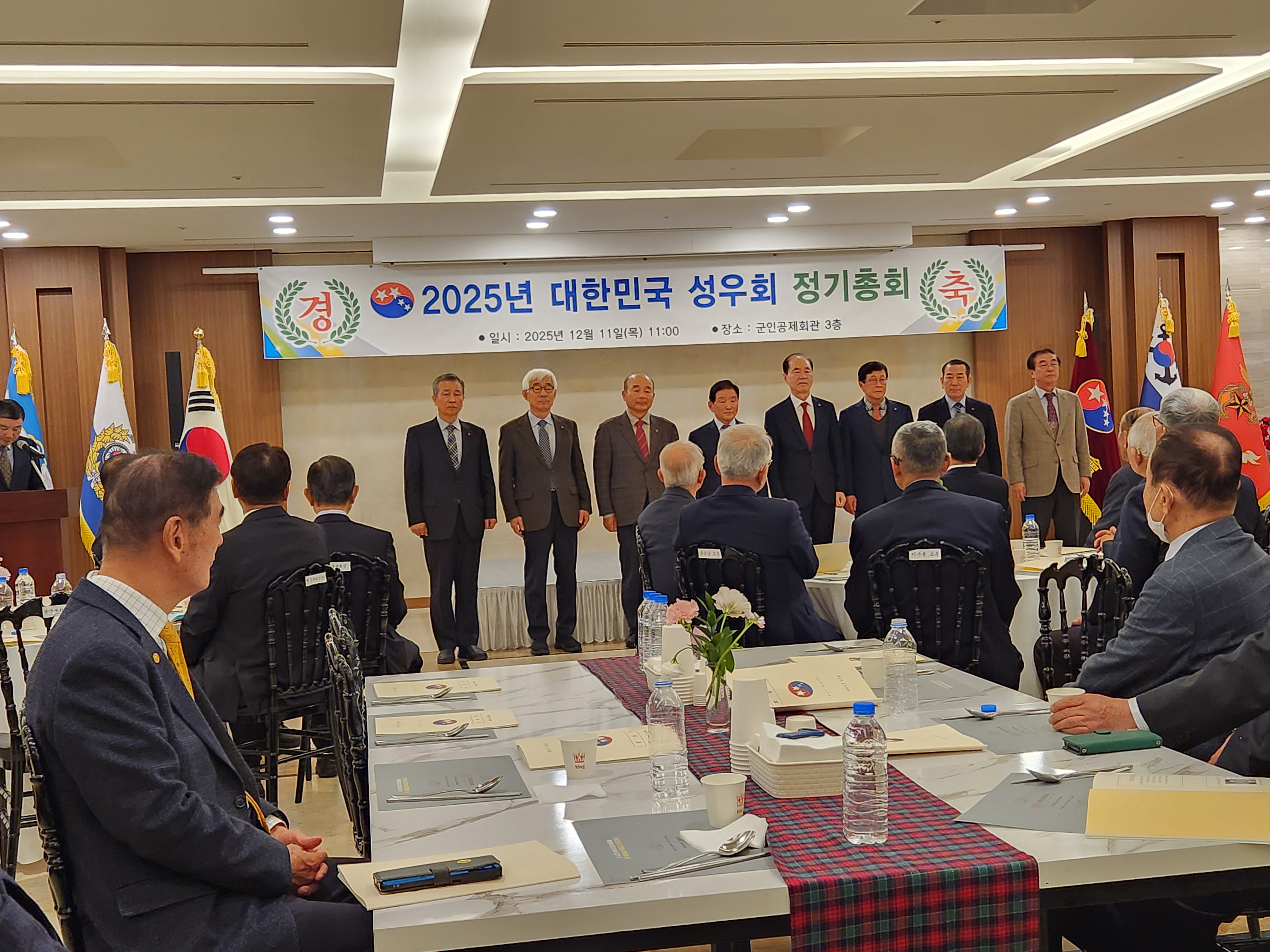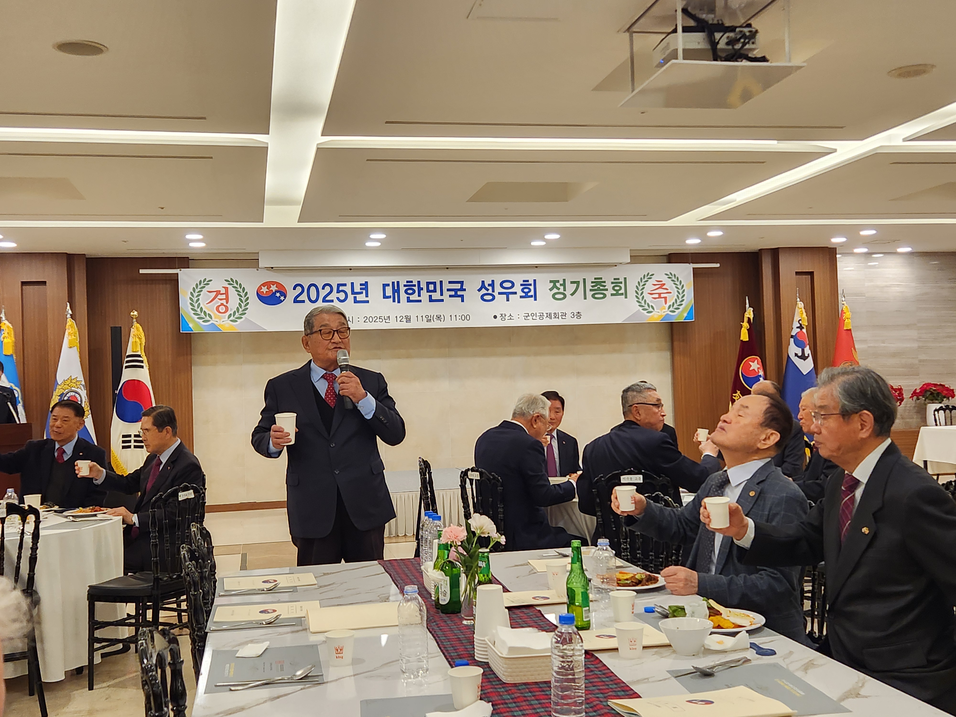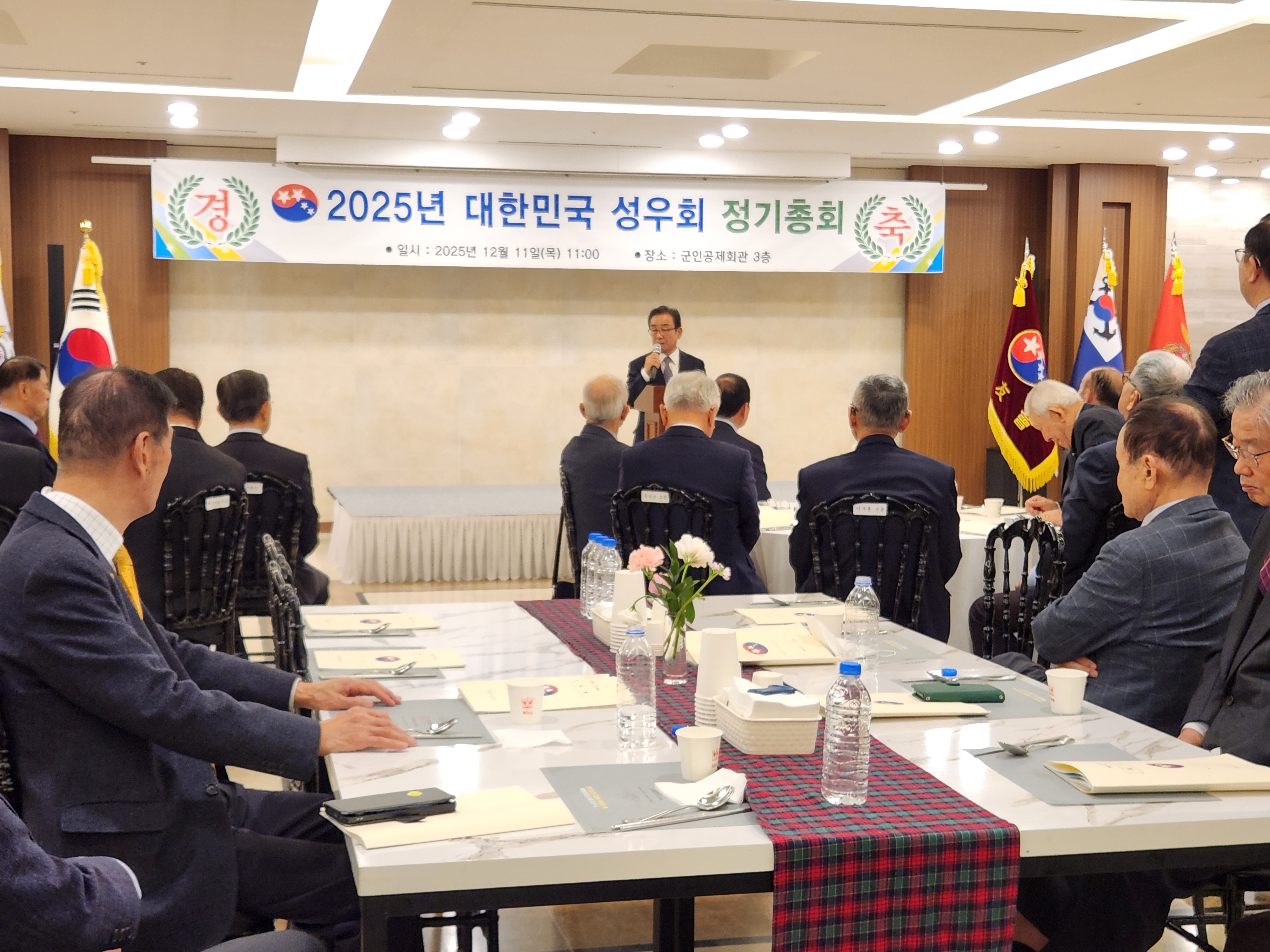 '25.12.11(목) 11시, 군인공제회관에서 星友會총회가 개최되어 업무보고에 이어 임충빈회장에 이어 향후 2년간 회장의 역할을 하게 될 후임으로 해군 박인용제독이 선출되어 새로 구성된 회장단이 인사를 하고 힘찬 새출발을 다짐했다.
