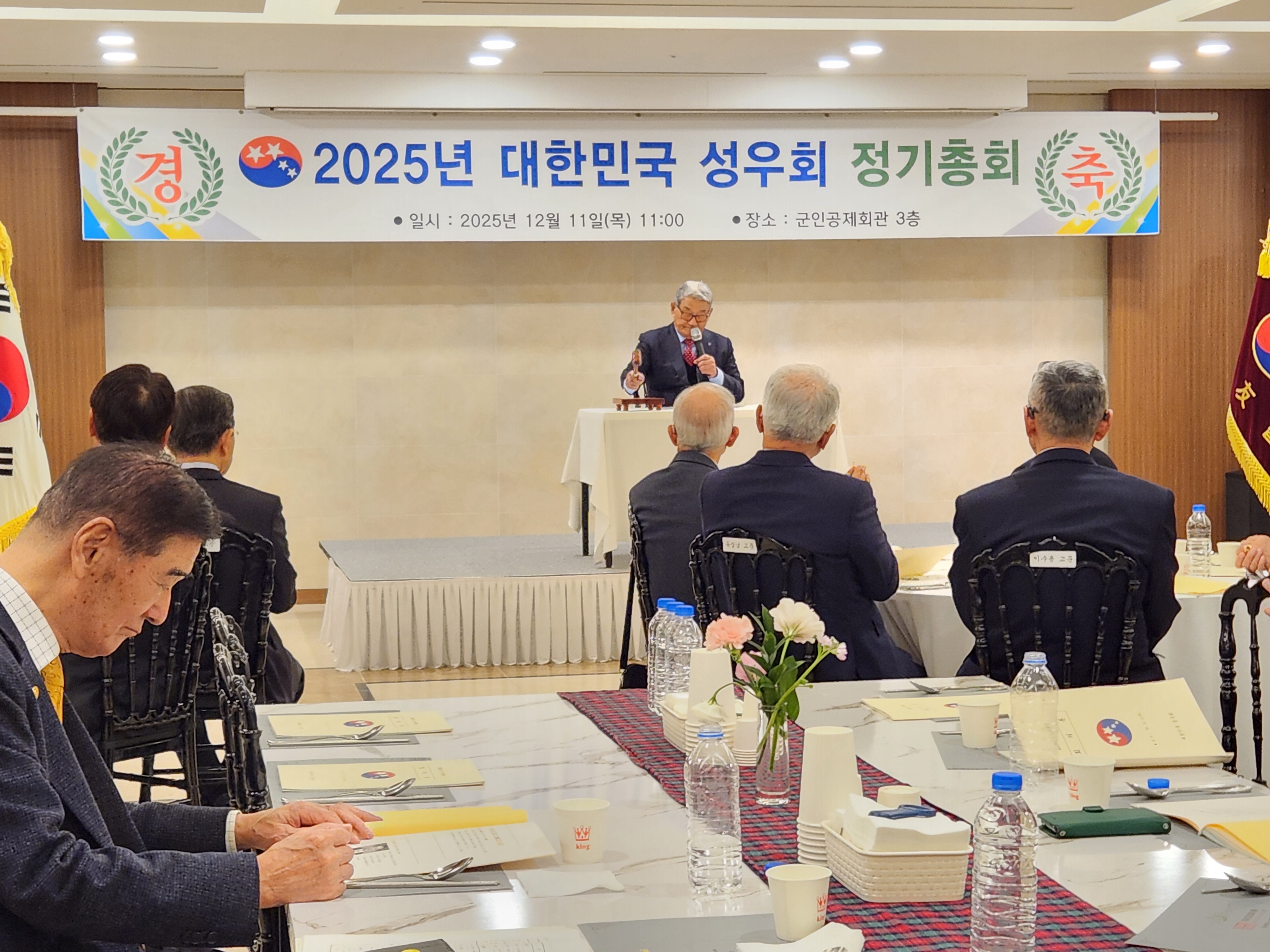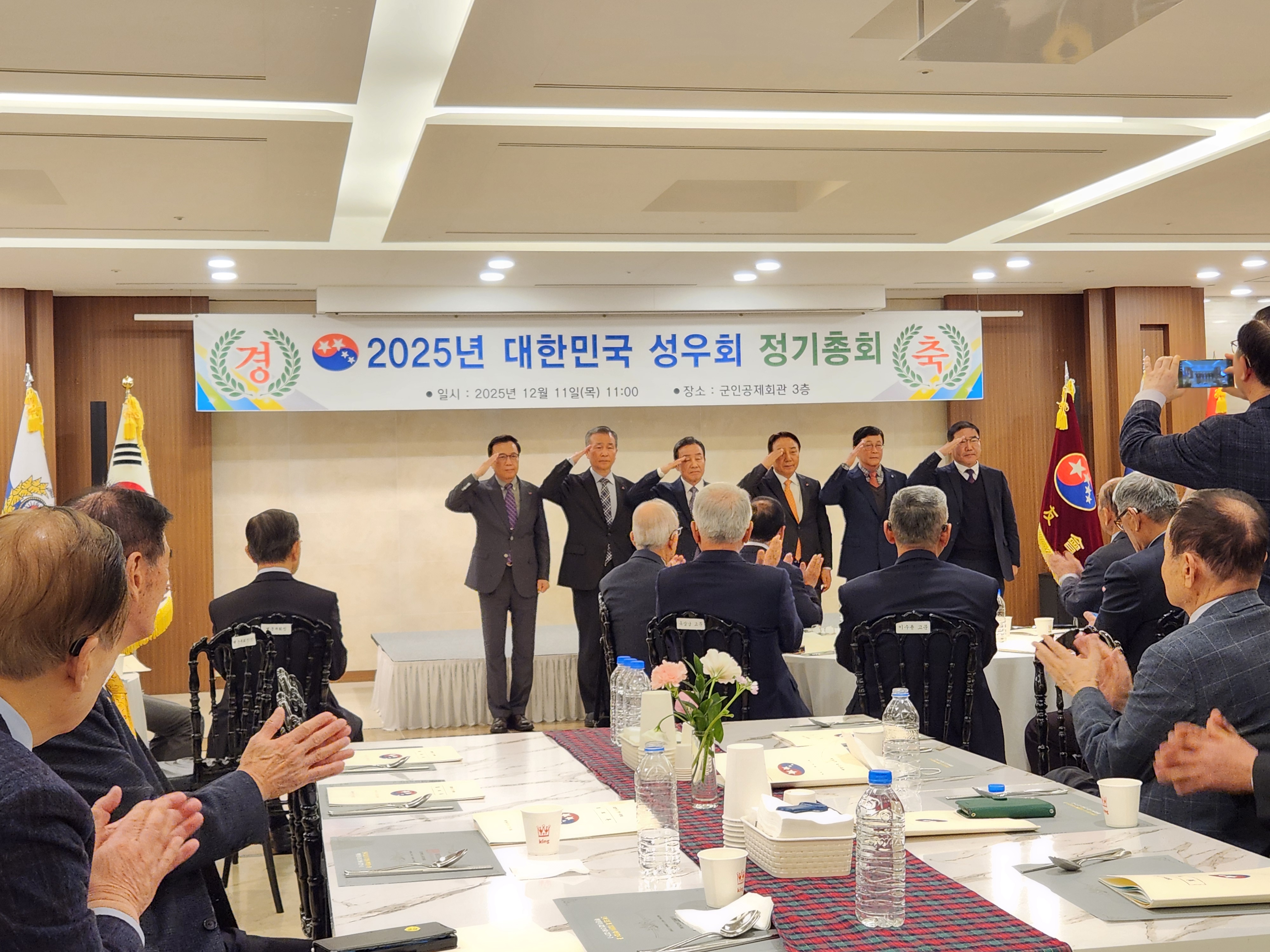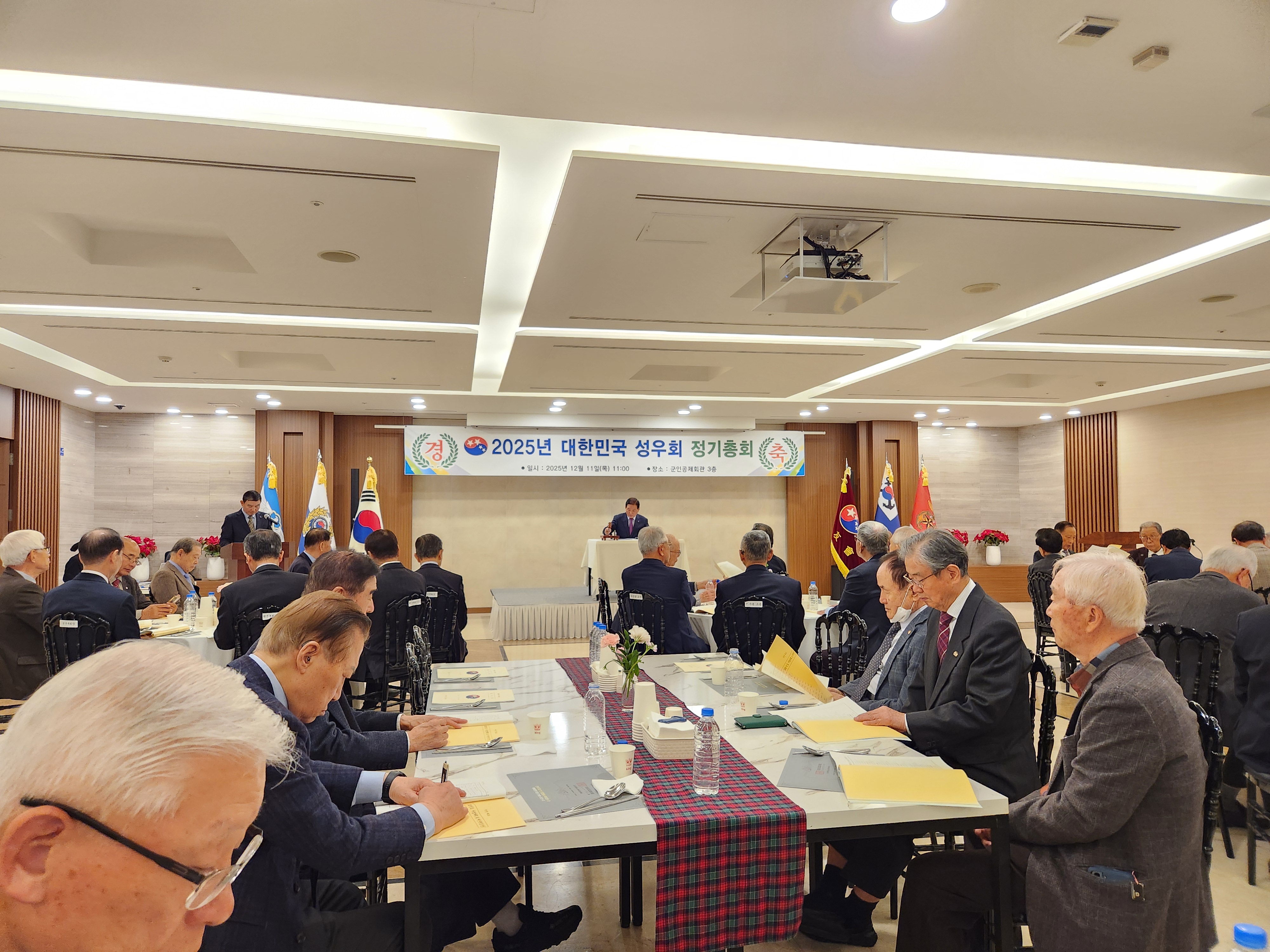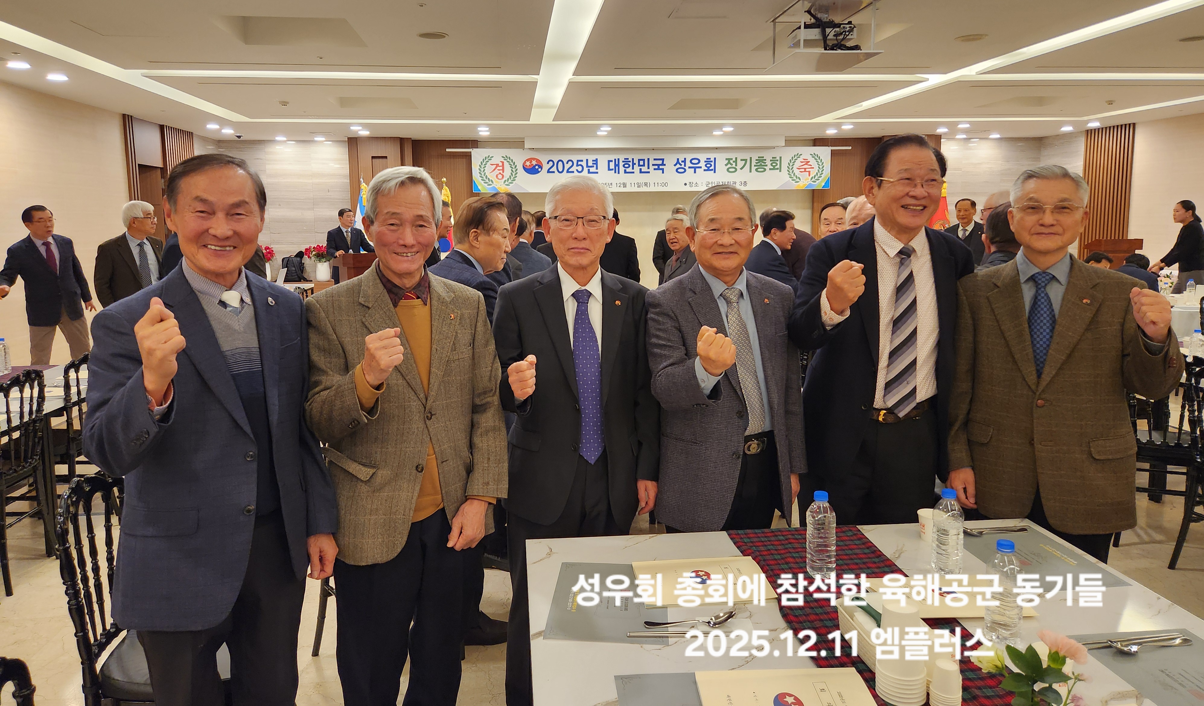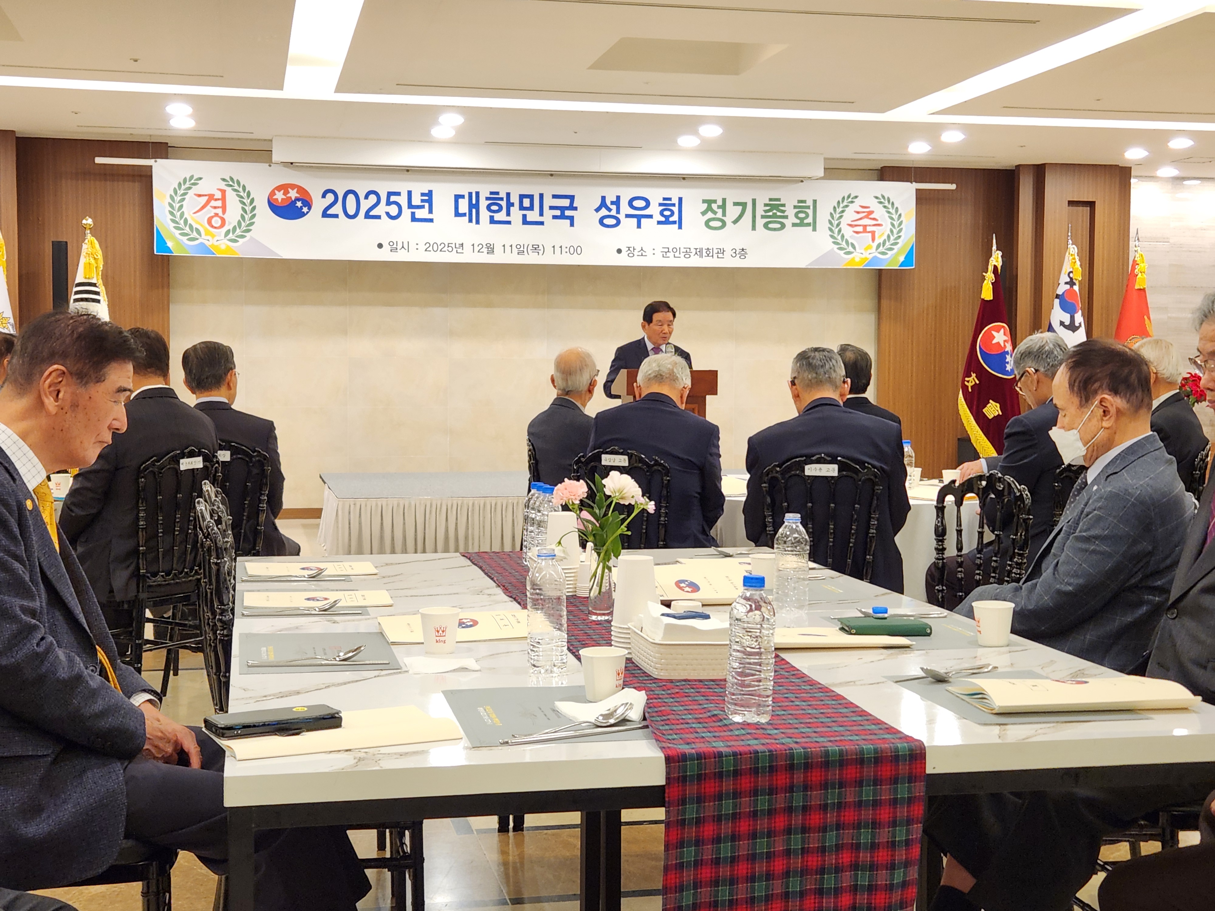'25.12.11(목) 11시, 군인공제회관에서 星友會총회가 개최되어 업무보고에 이어 임충빈회장에 이어 향후 2년간 회장의 역할을 하게 될 후임으로 해군 박인용제독이 선출되어 새로 구성된 회장단이 인사를 하고 힘찬 새출발을 다짐했다.
