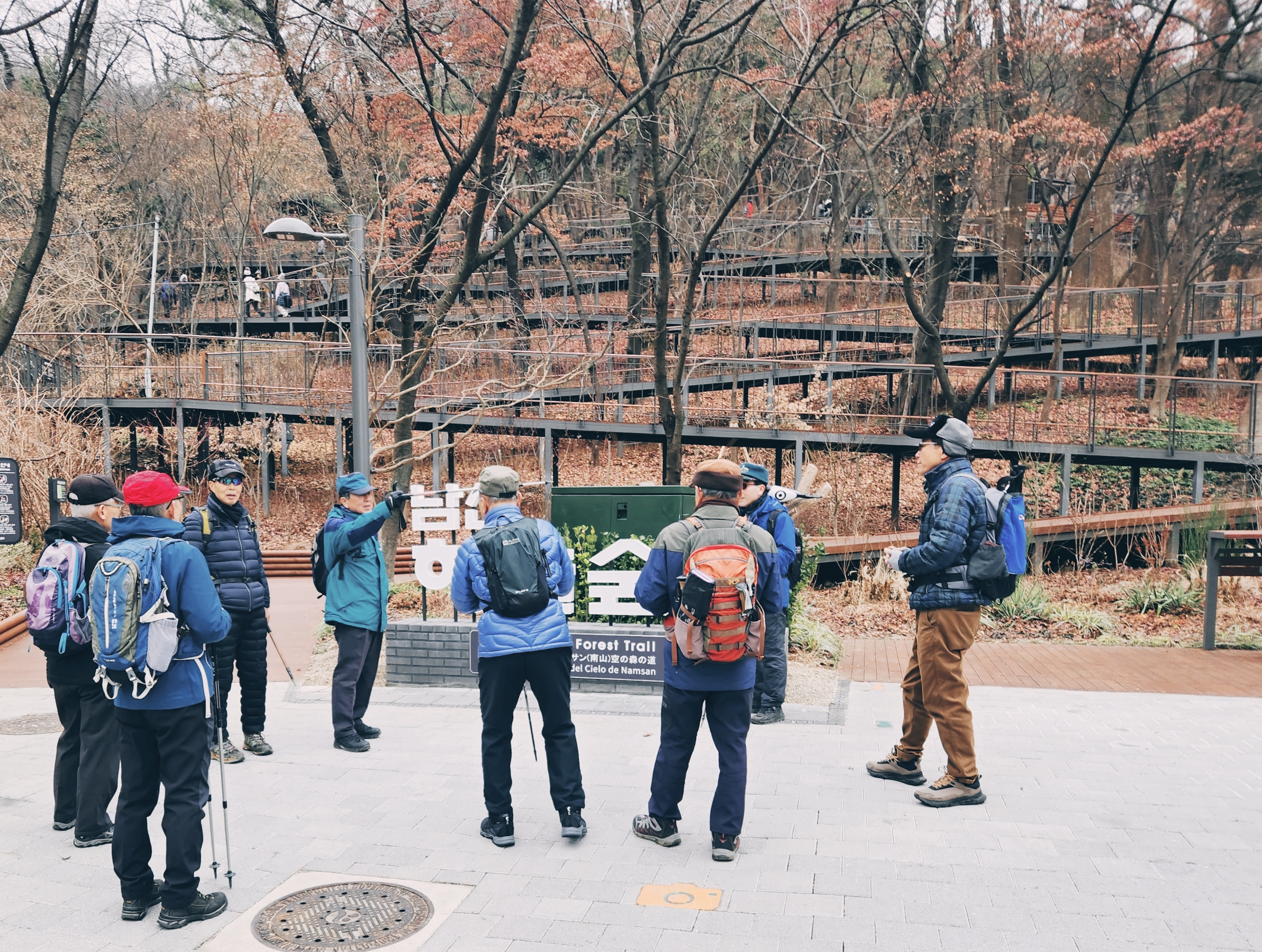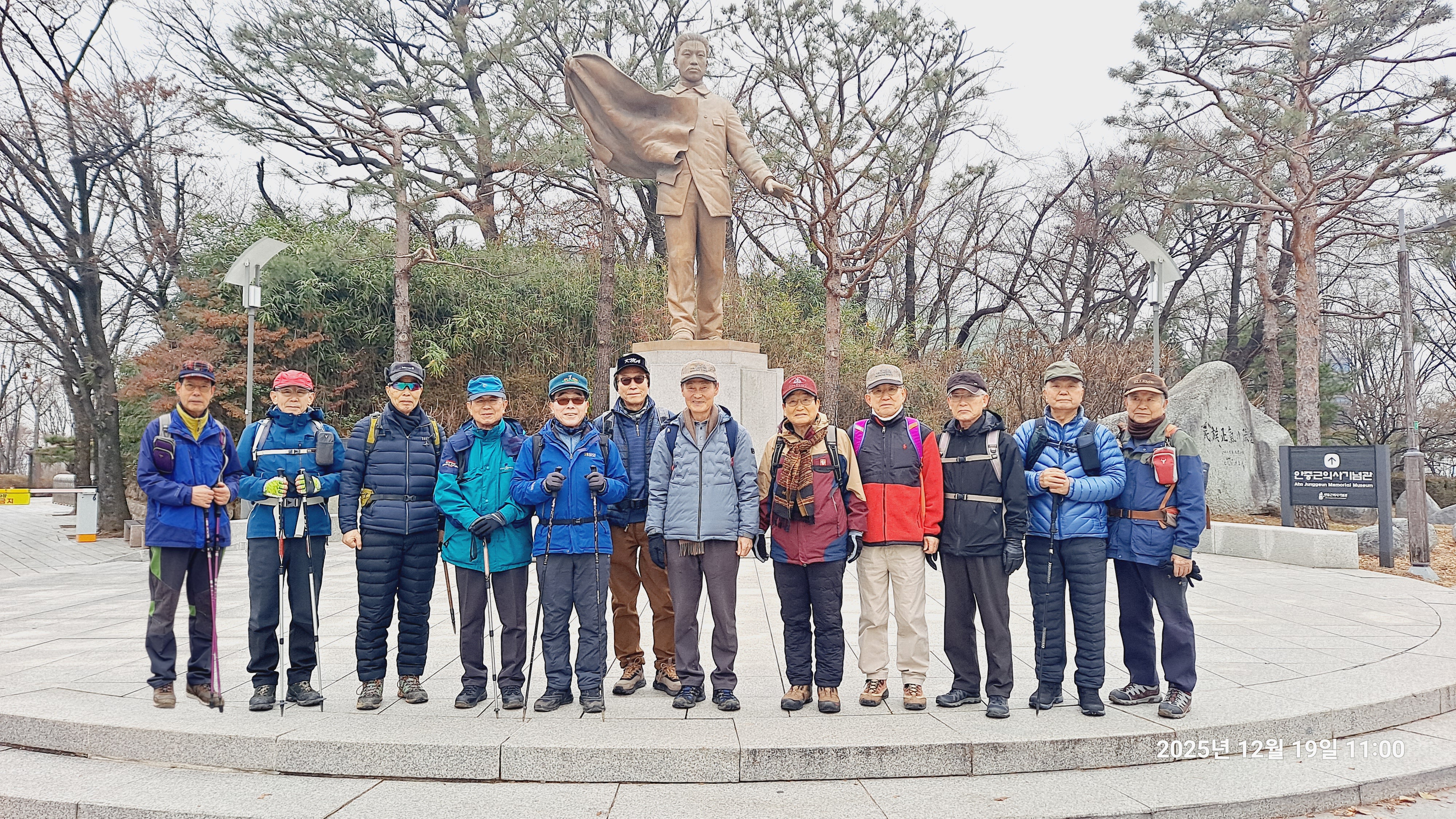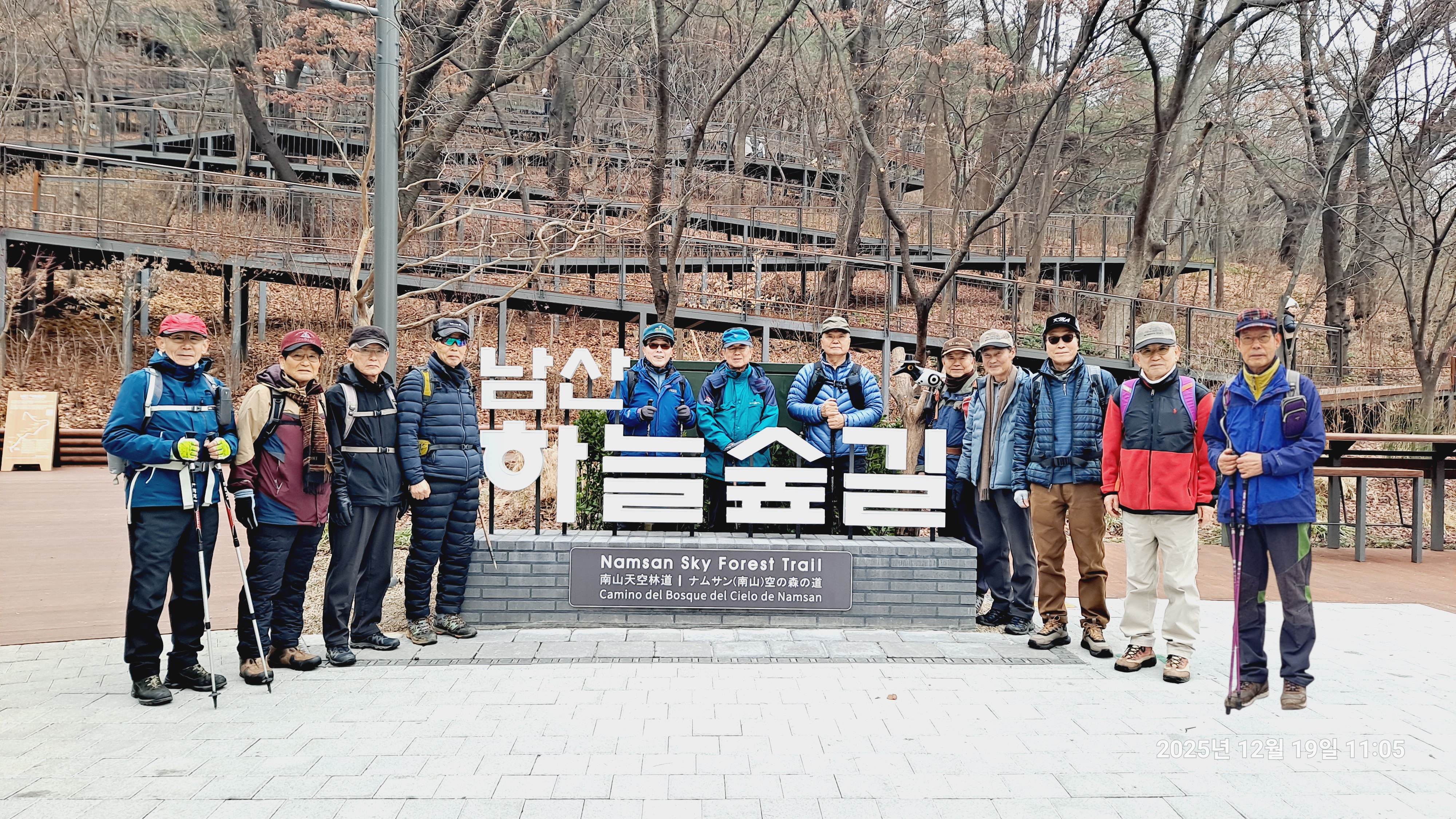 '25.12.19(금) 10:30, 서울역 8출구에서 동기회 동산동호회 12명이 만나 남산하늘숲길따라 정상으로 이동, 서울전경을 관망하고 남측 오솔길로 장충체육관까지 내려와서 부근의 유명 장충족발집에서 점심식사