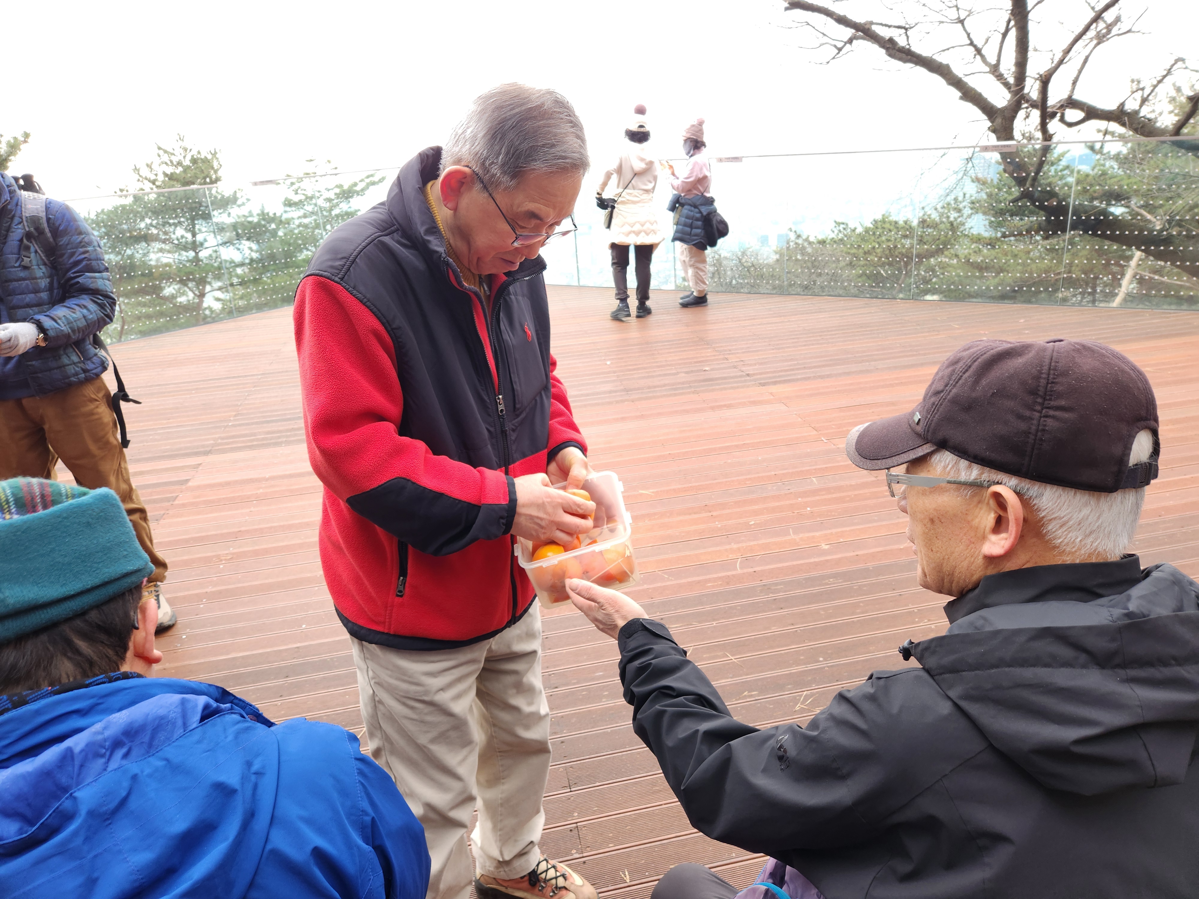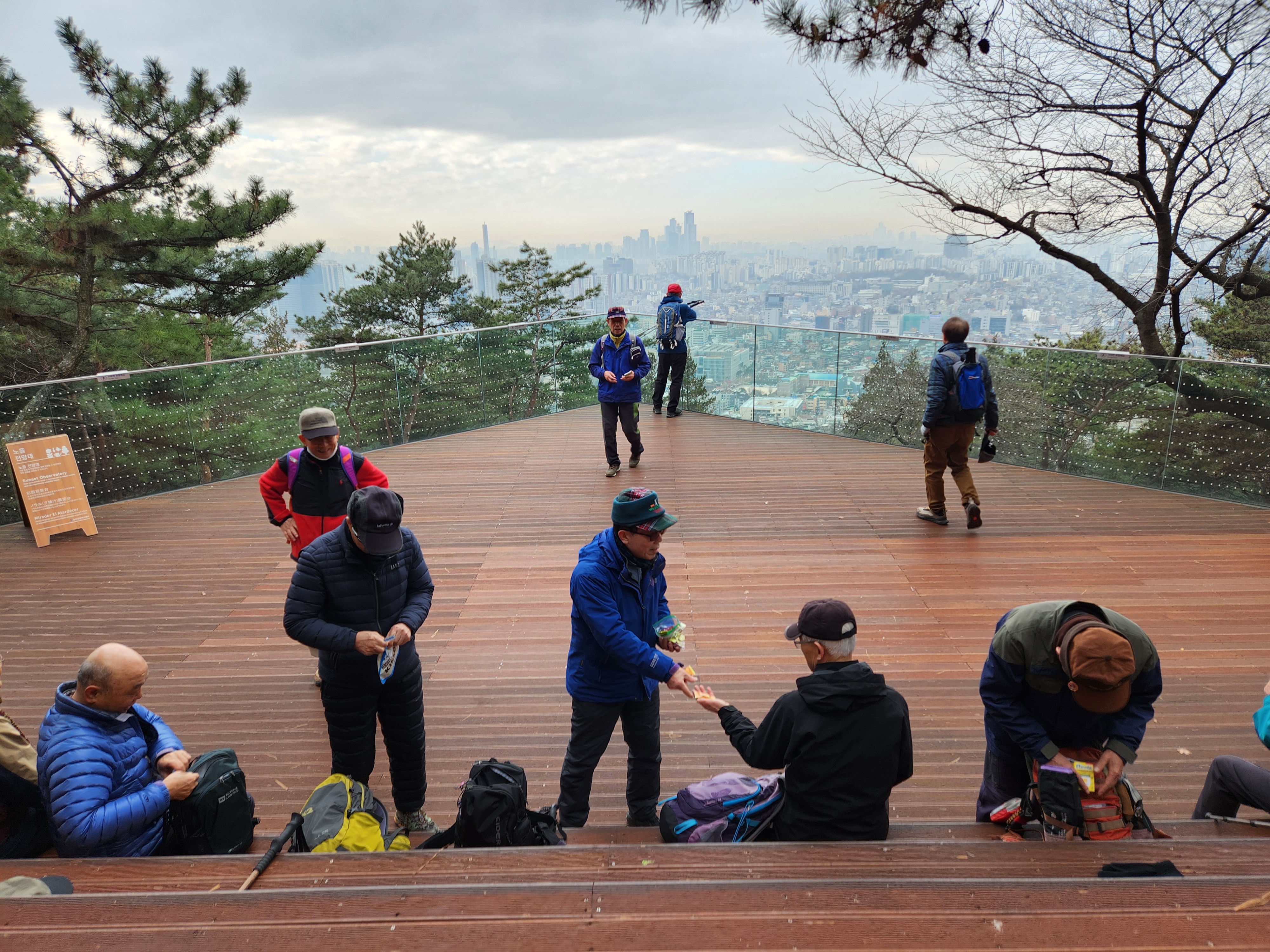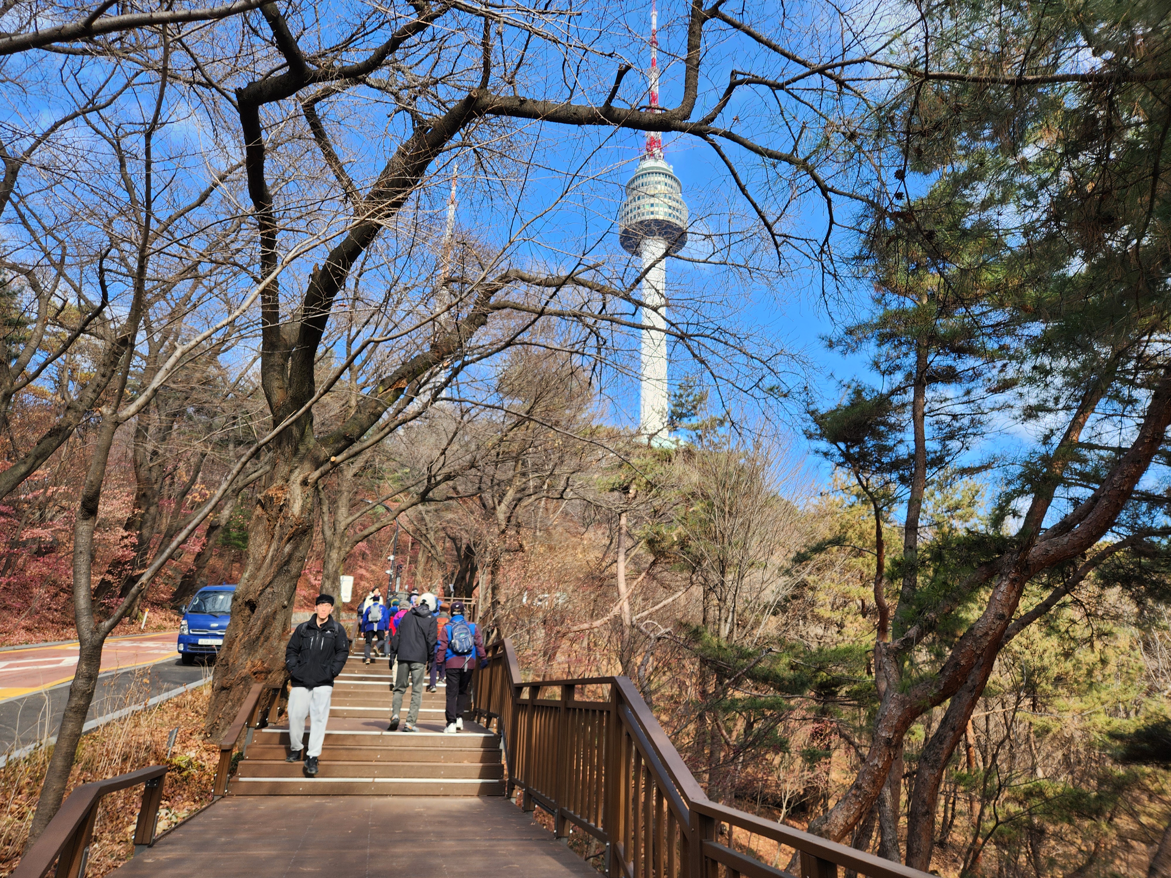 '25.12.19(금) 10:30, 서울역 8출구에서 동기회 동산동호회 12명이 만나 남산하늘숲길따라 정상으로 이동, 서울전경을 관망하고 남측 오솔길로 장충체육관까지 내려와서 부근의 유명 장충족발집에서 점심식사