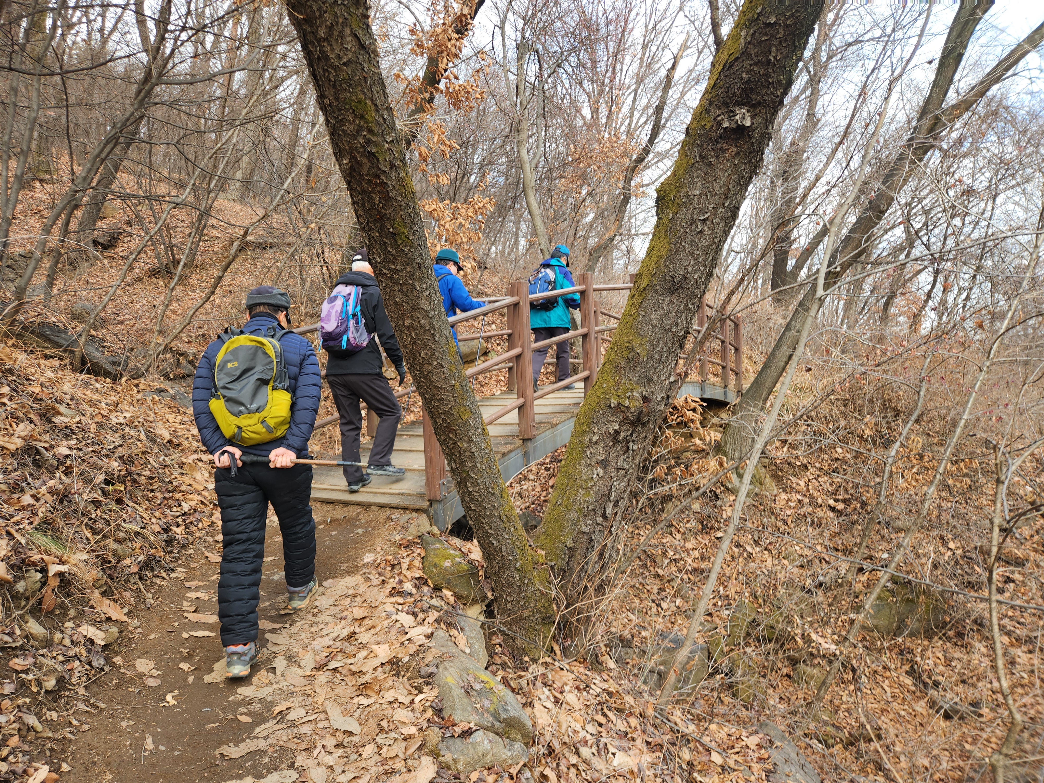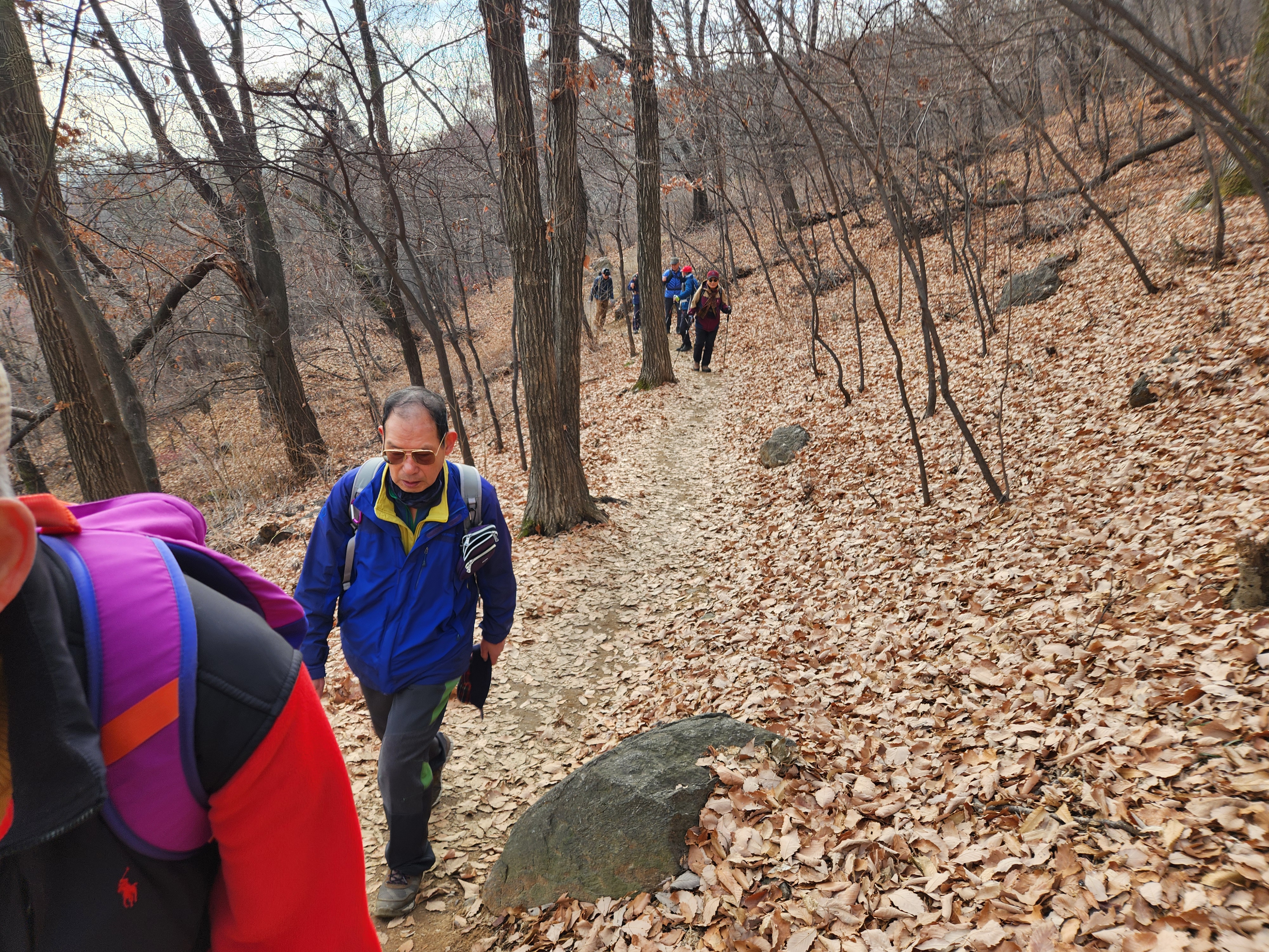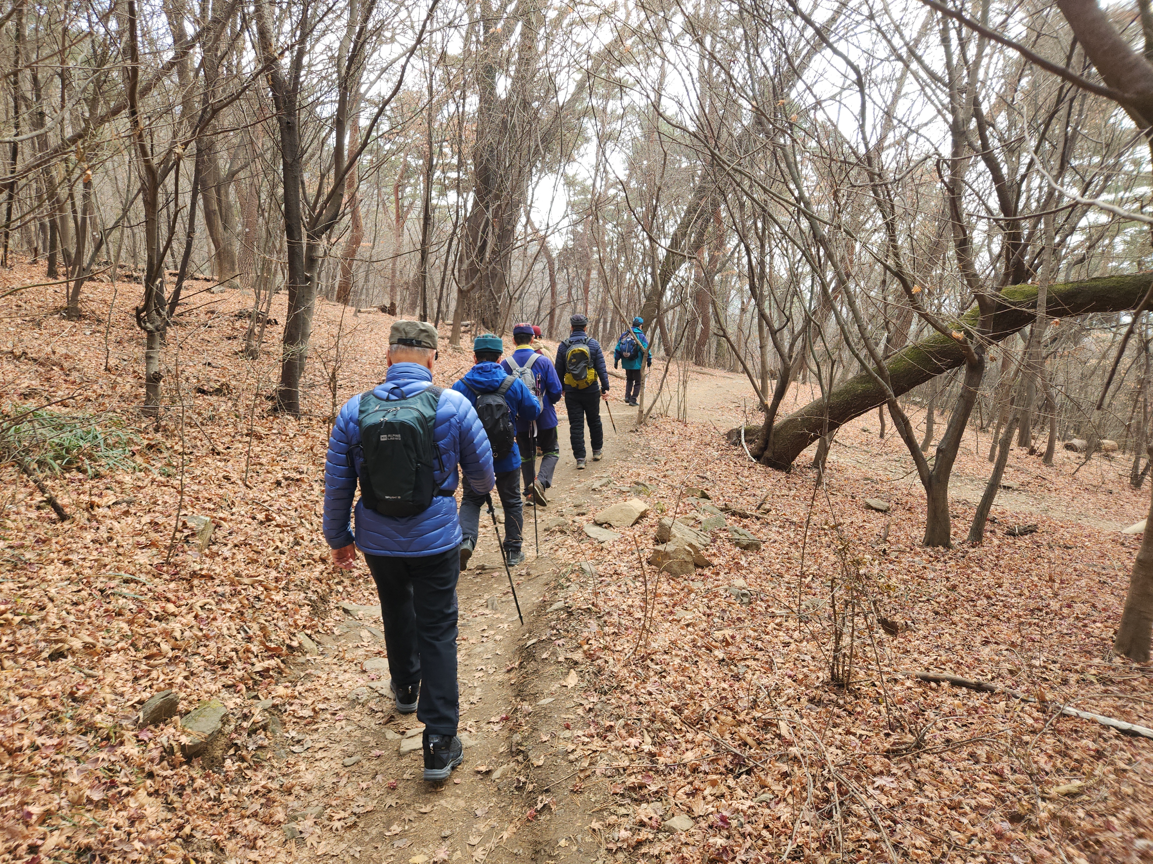 올해의 마지막 월례산행이다. 수년전까지만 해도 여러 산의 정상으로 가는 등산이었는데 이제는 둘레길이나 낮은 봉우리 가는 정도로 달라졌다. 그래도 3시간 정도는 걸리는 코스로 15,000보 이상 걷게 된다.