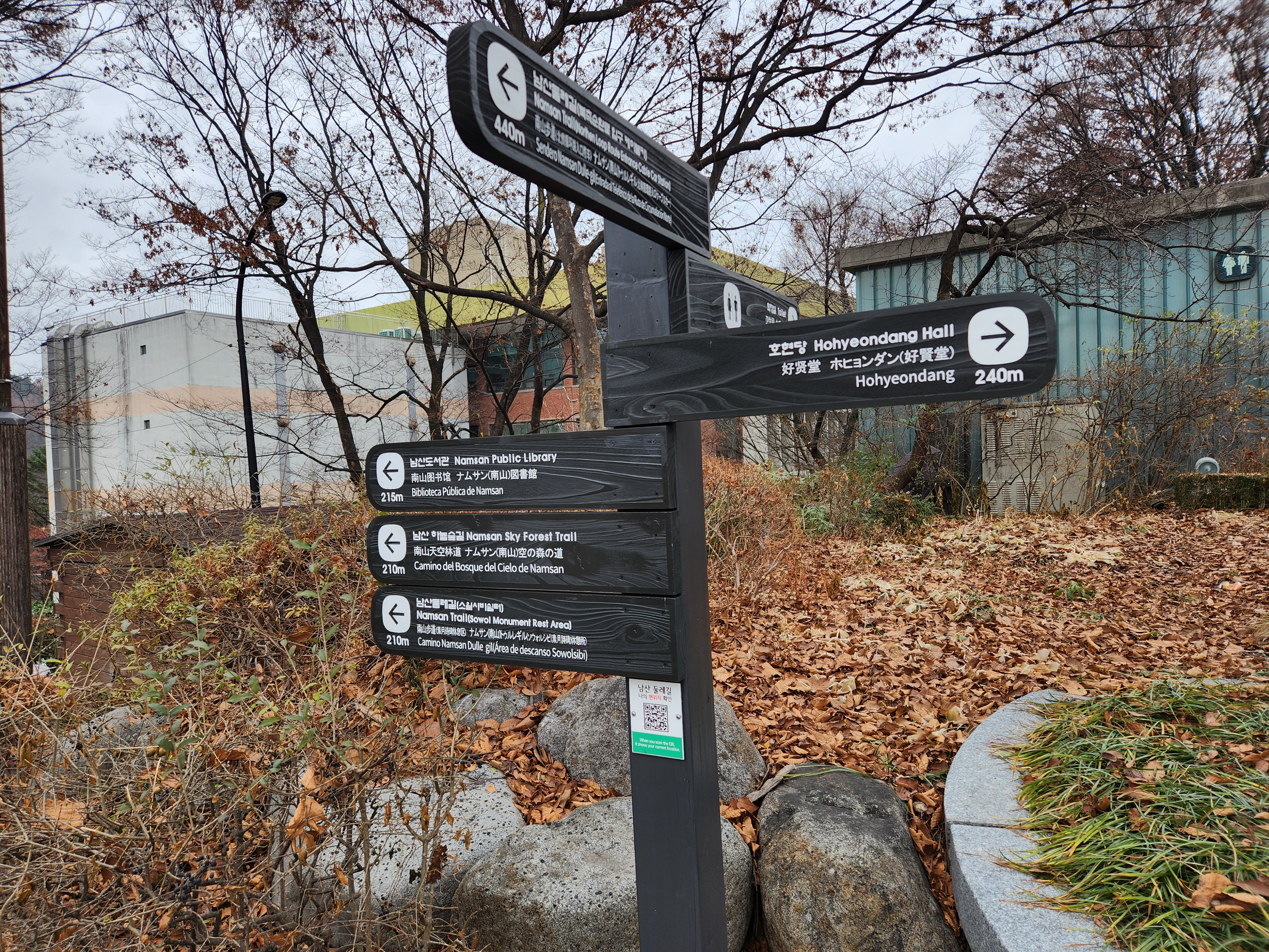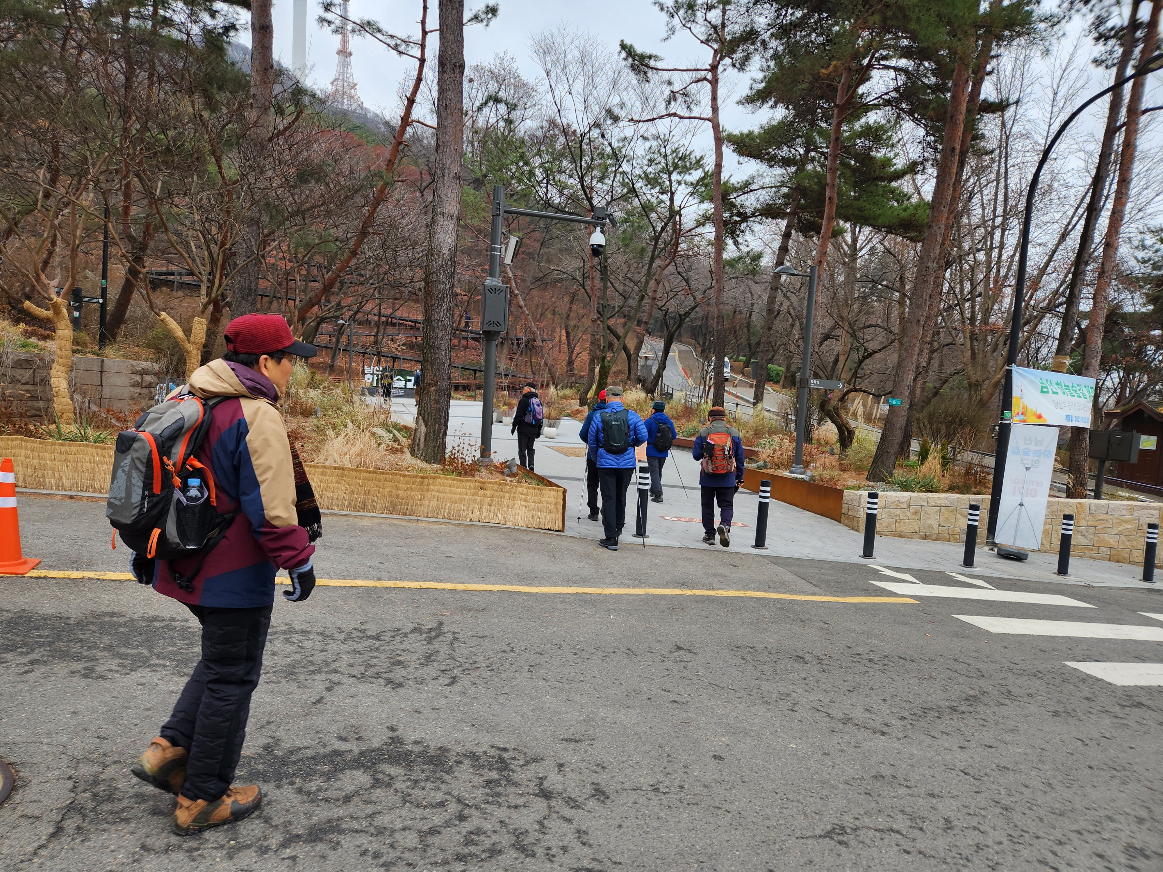 여러 사정으로 몇번 참석을 못하다가 타 일정이 취소되어 참석이 가능하게 되었다. 지난 10월말 개통된 남산하늘숲길 트레킹이라 처음 가보는 코스이다. 서울역이나 남대문 방향에서 남산의 정상으로 가는 길은 계속 이어지는 계단으로 쉽지가 않다. 전혀 다른쪽에서 색다른 방법으로 길을 만들어서 이제는 누구나 산책하듯이 완만한 경사의 지그재그 데크길을 따라 숲과 전망을 즐기면서 천천히 가면 된다.