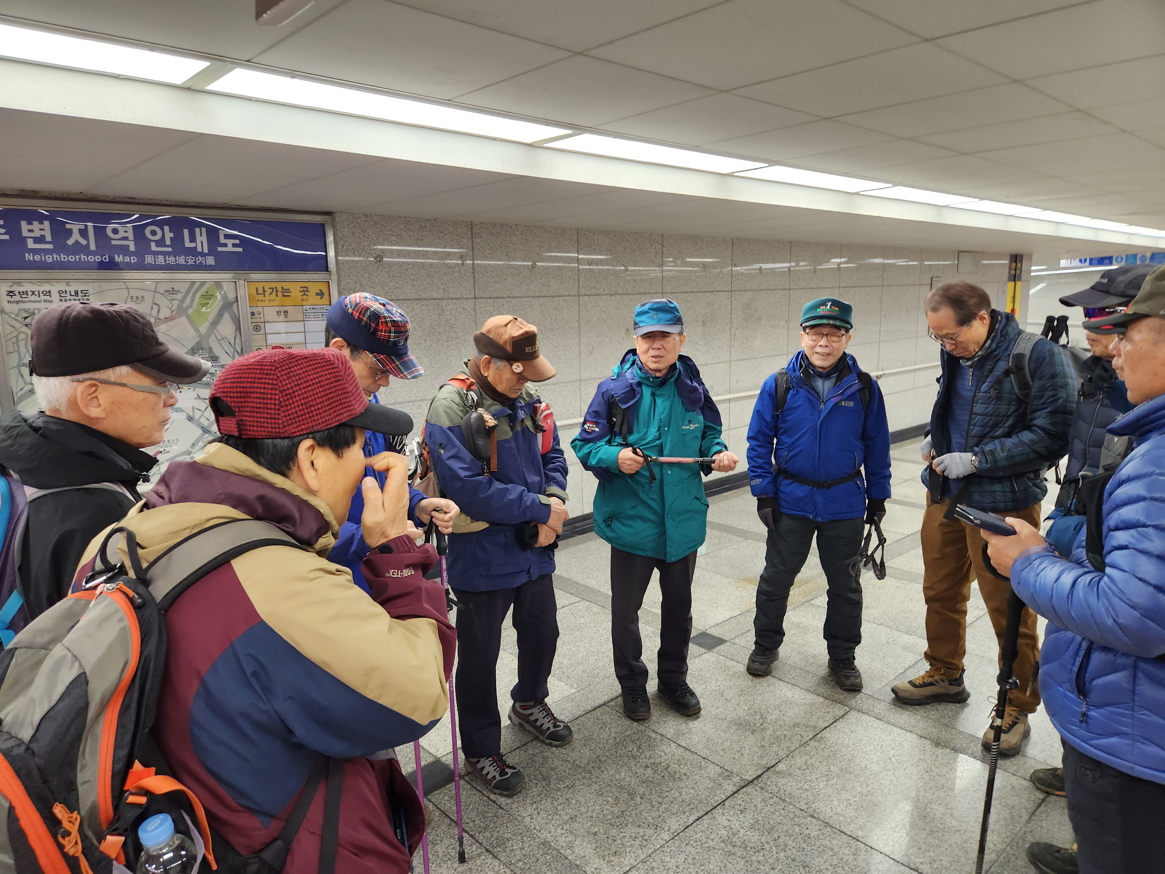 서울역 8출구에서 김원현회장이 오늘의 코스와 일정 설명