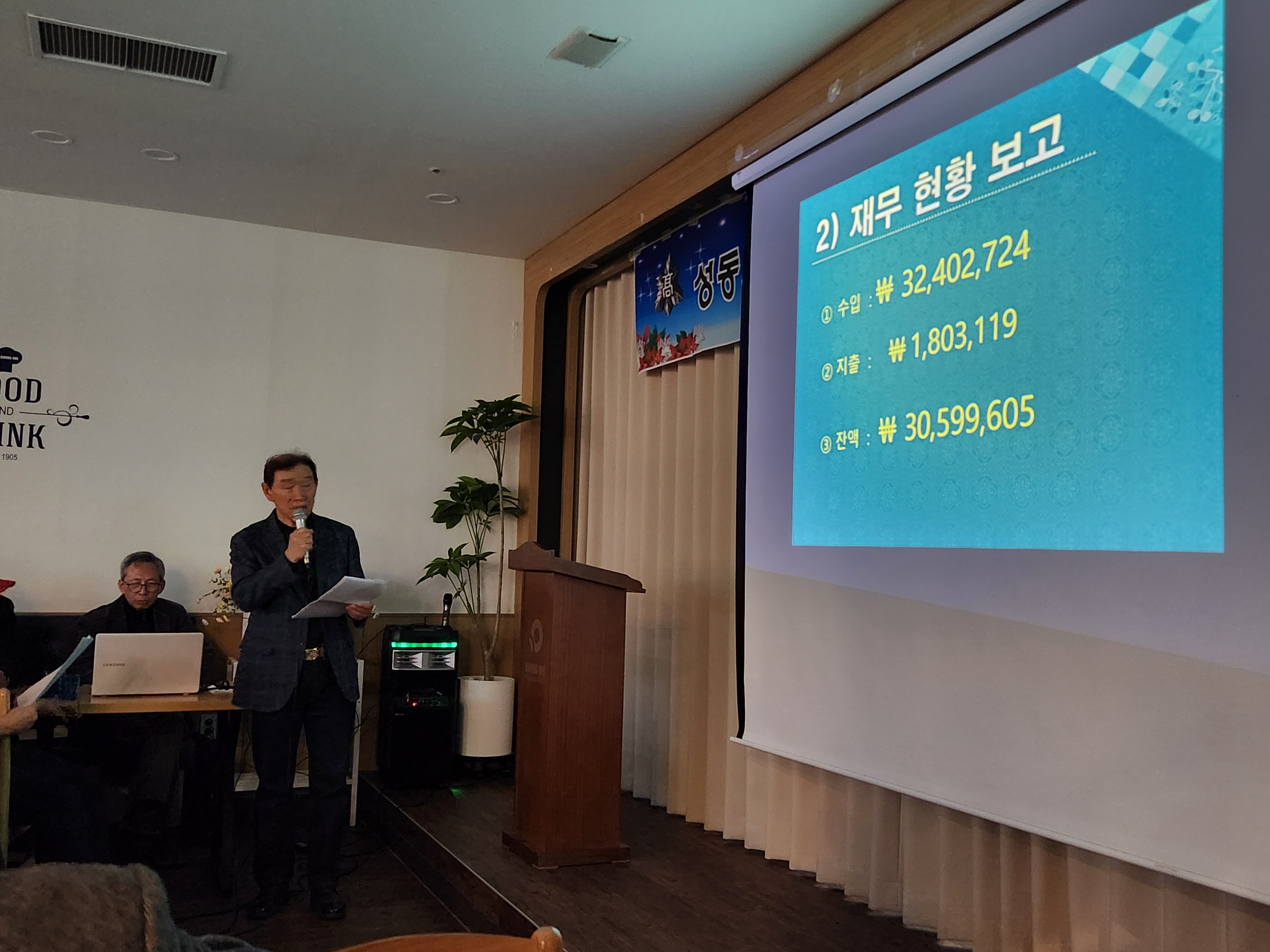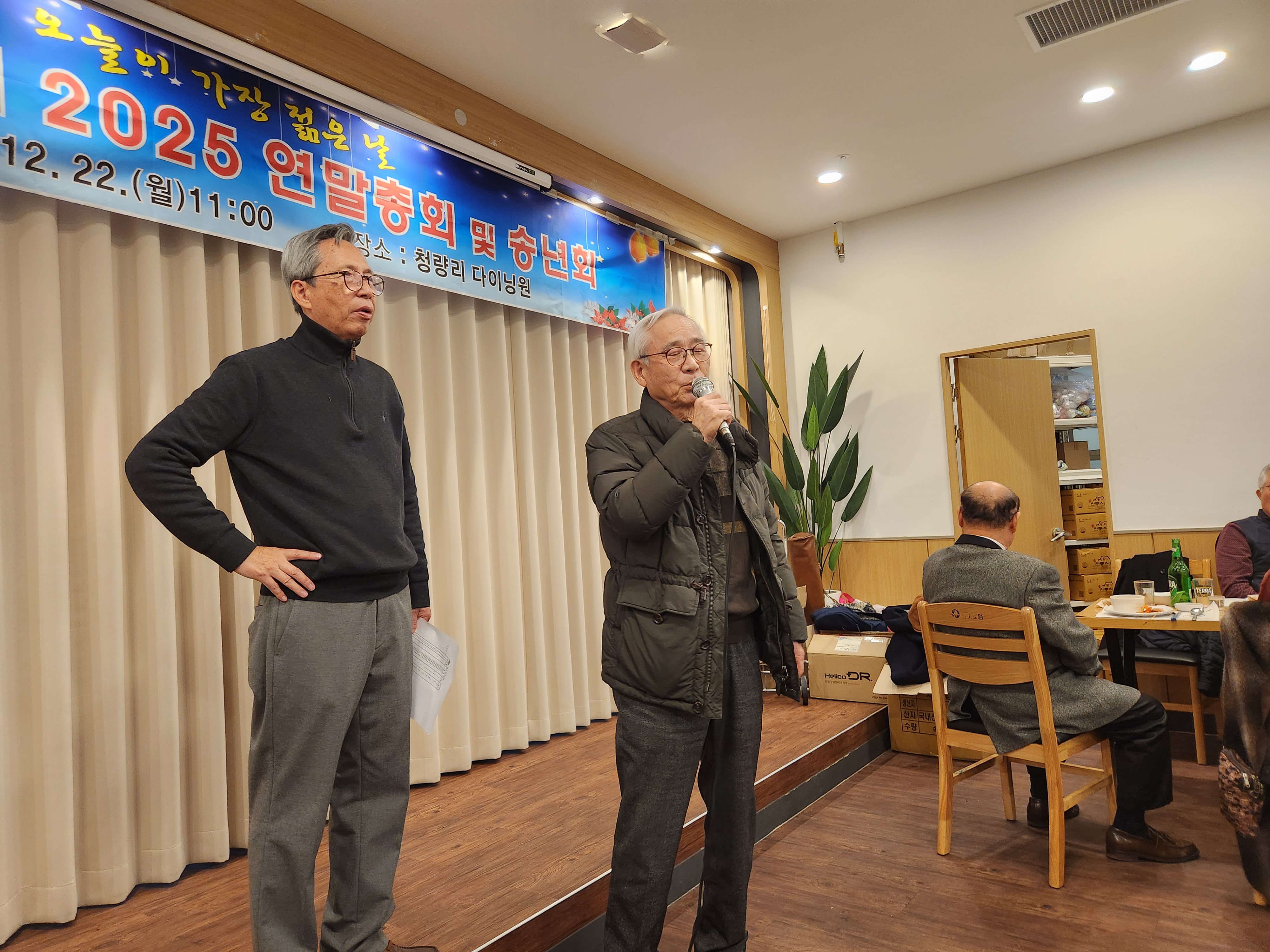 가을여행으로 연말총회를 가름하고 12월 임원회의시에 동호회장, 반장 등을 참석하게 하여 마무리하려고 했는데, 이왕 모이면 올 수 있는 친구들과 가족들도 와서 준비된 보고자료를 함께 듣고 식사를 하는게 좋지 않겠느냐고 점차 커져갔다. 마침 청량리역 부근에 적절한 장소가 있고 가용예산으로 부담할 정도가 되어 급속히 그 방향으로 진행되었다. 추운 날씨에 얼마나 많은 동문들과 가족들이 동참할까가 과제였는데 기본적으로 산악회, 당사모, 우보회 참여하는 인원이 있는데다가 각 반장들이 독려하면 되지 않겠나 싶었다.