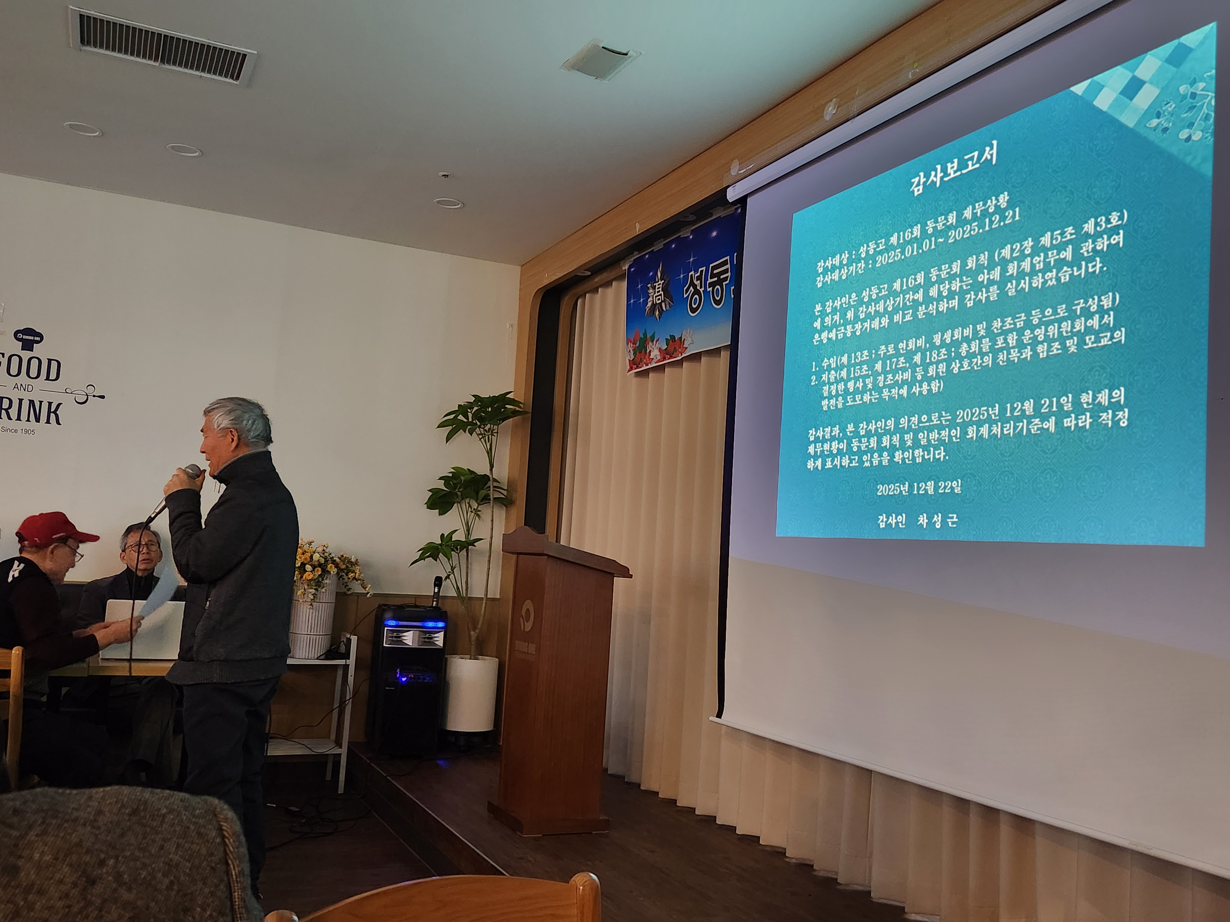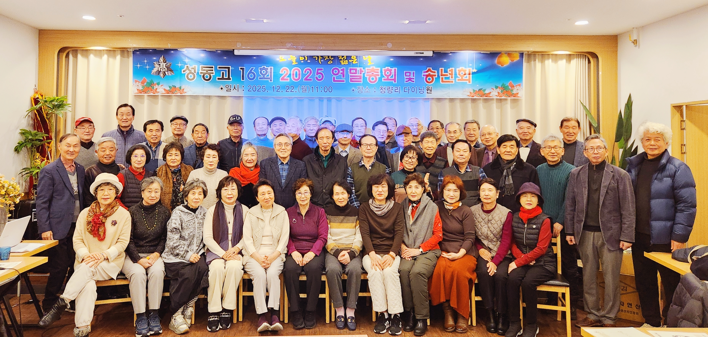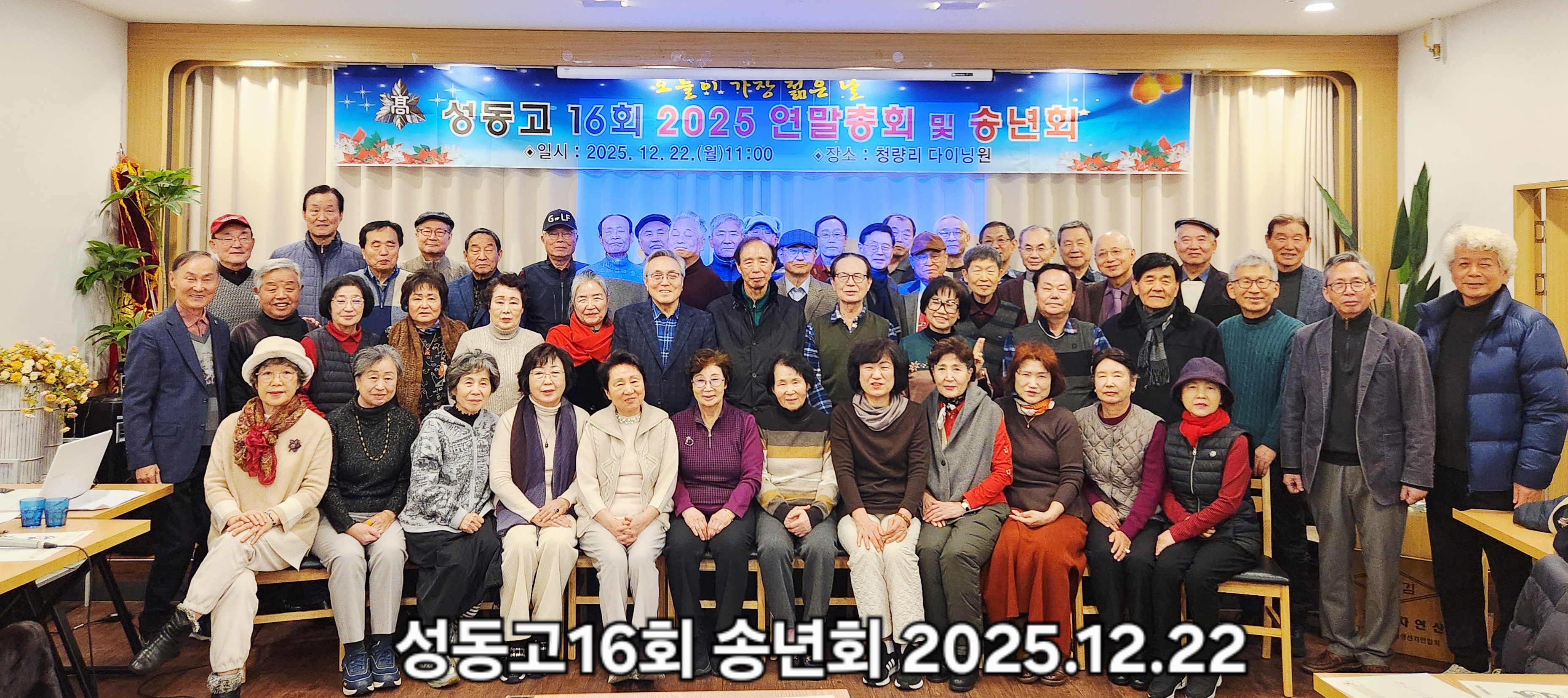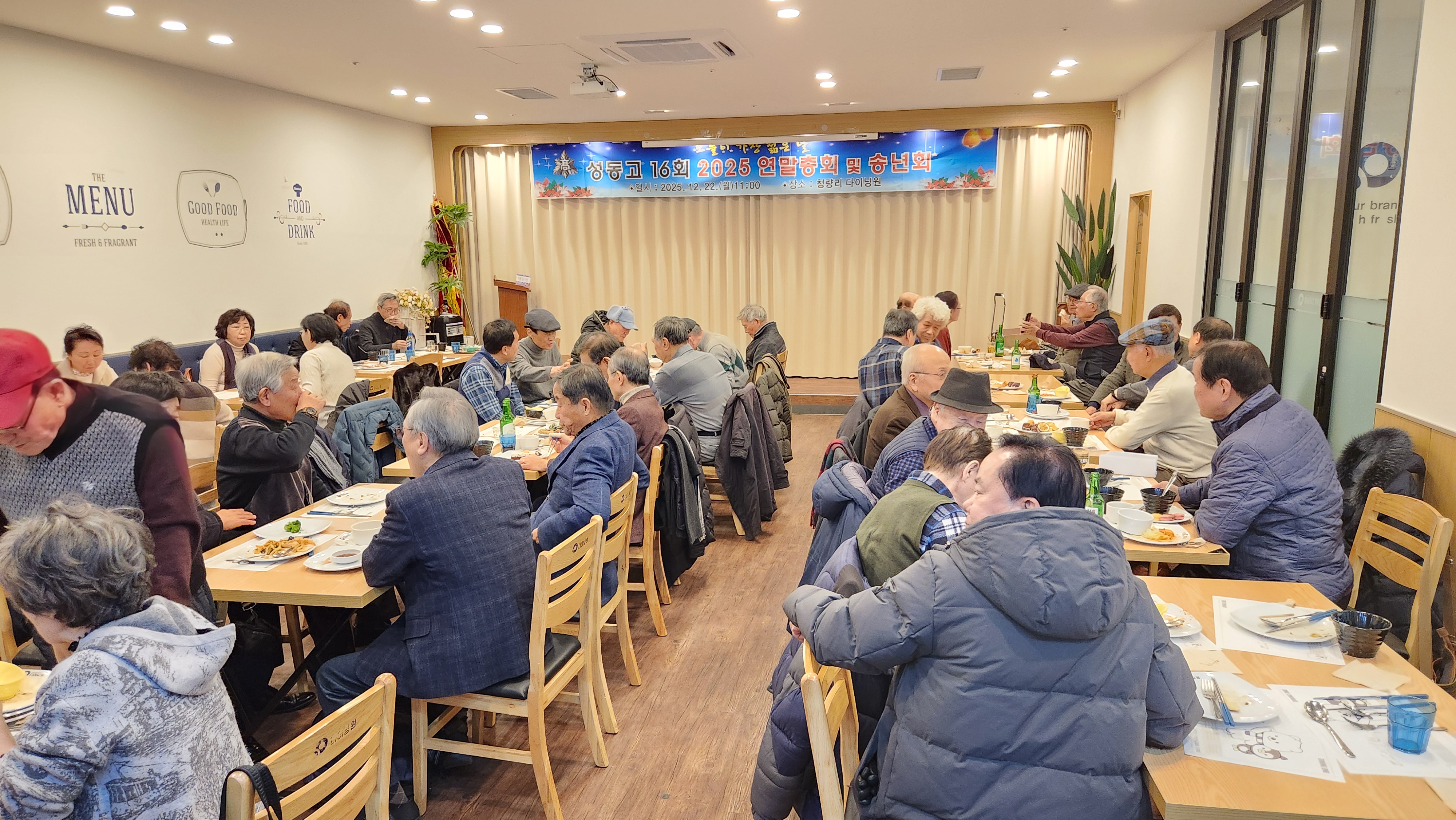 '25.12.22(월) 11:30, 청량리 다이닝원 뷔페에서 성동고16 친구와 가족들 54명이 참기한 가운데 정기총회 및 조촐한 송년회 개최