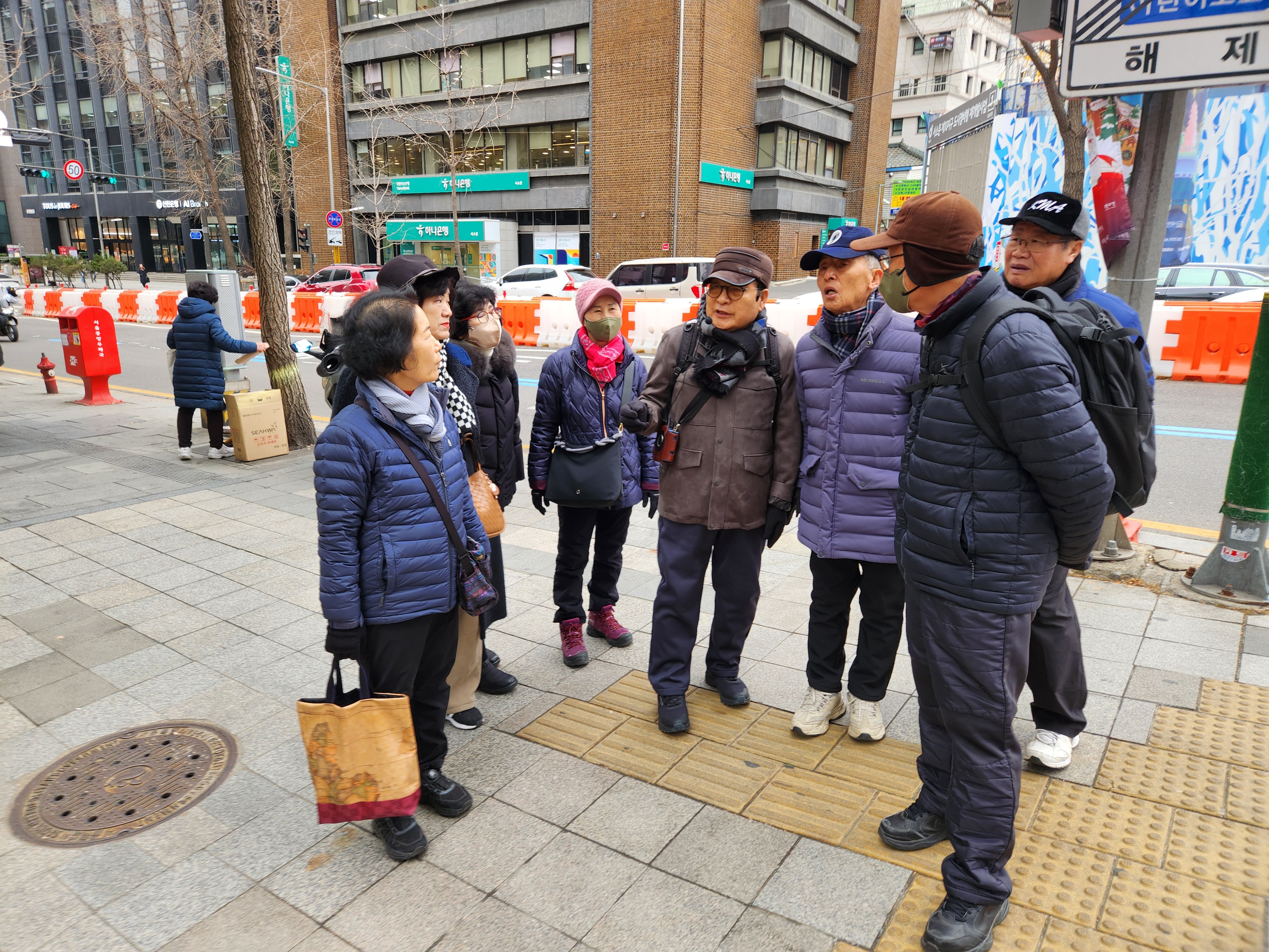 시청역9출구에서 신성덕해설사가 오늘의 코스 설명