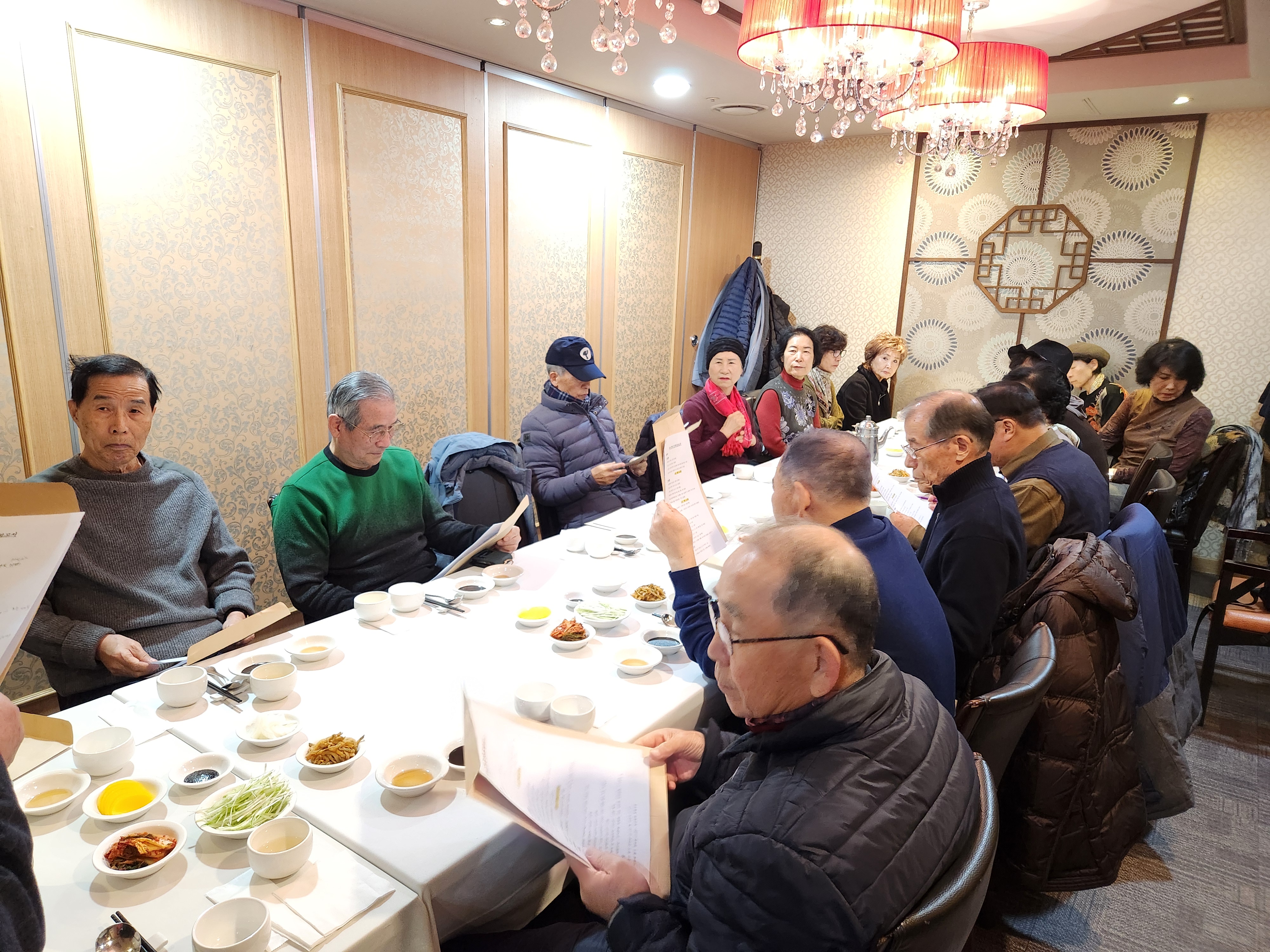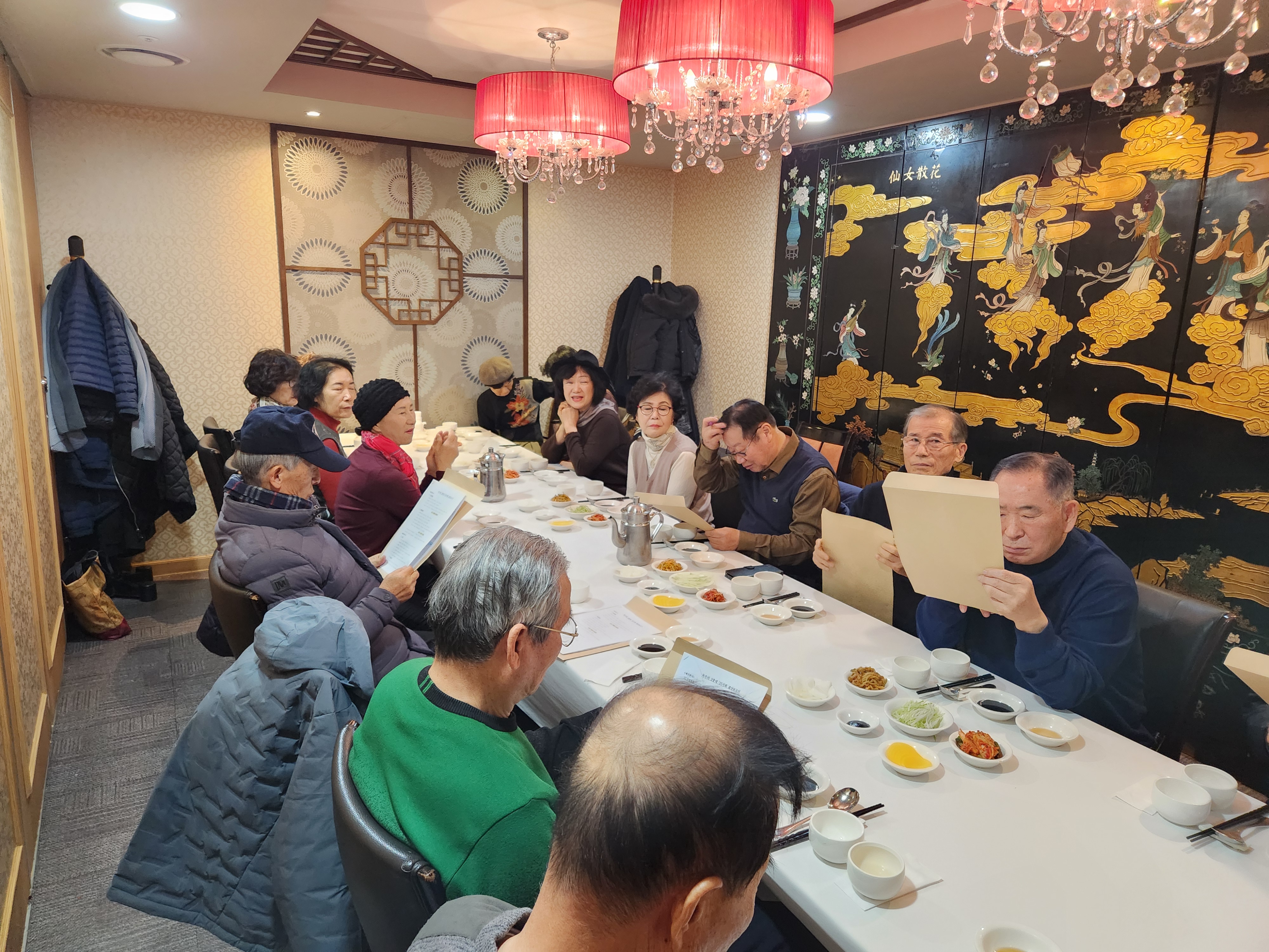 점심장소로 이동하여 미리 도착하여 기다리고 있는 10명과 합류, 18명이 특실에서 송년모임을 가졌다.