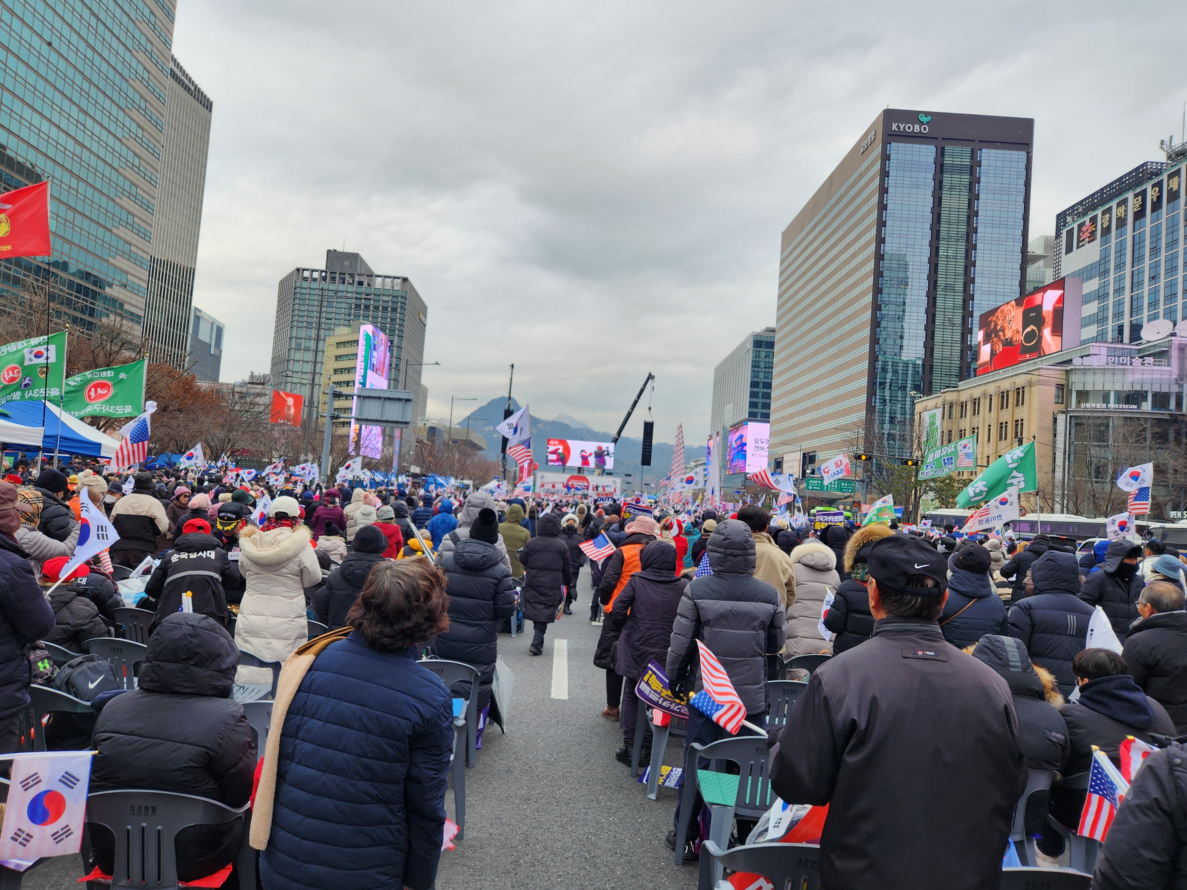 전날의 안보 시민단체 총연합대회 영향인지 광화문지역에는 세종로사거리에서부터 시청앞까지 넓은 도로의 반쪽에 애국집회 의자가 배치되어 전국 곳곳에서 지역 피켓을 들고 애국국민들이 끝이 안보이게 많이 모였다.