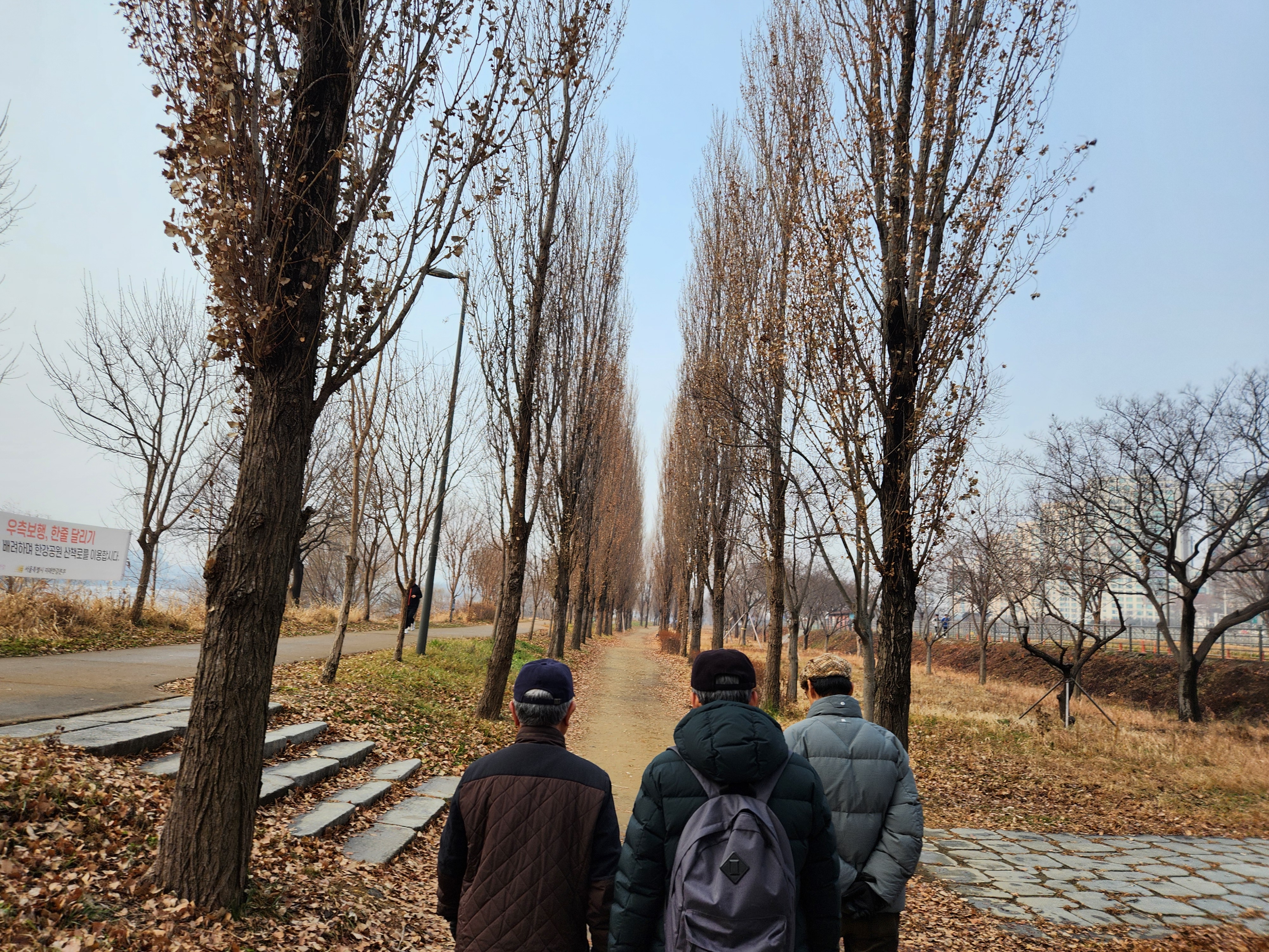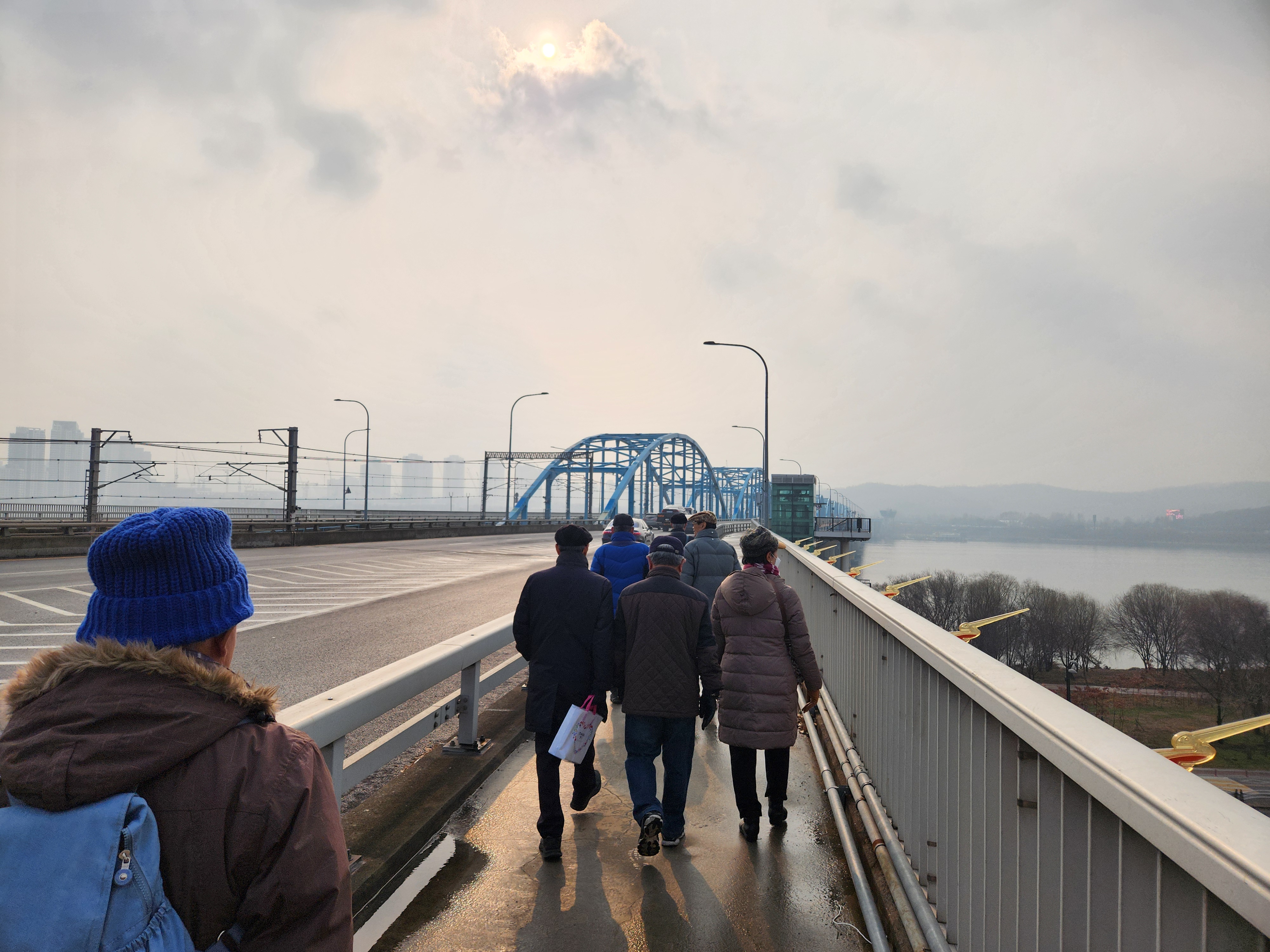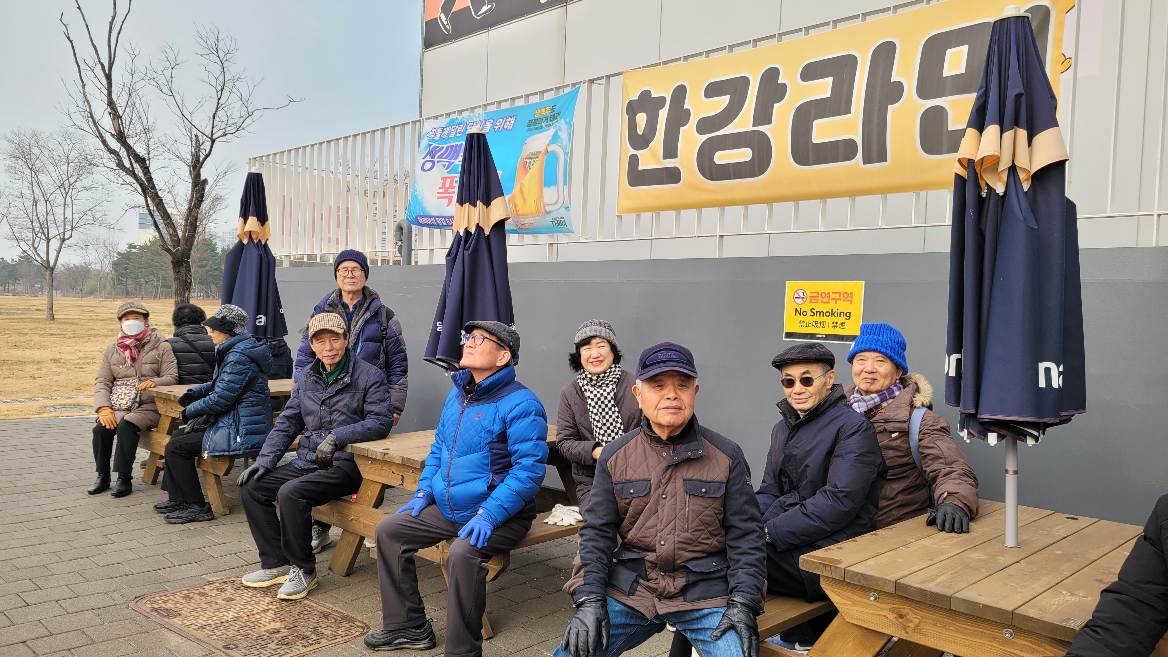 예전에 비하면 덜 춥기도 하고 보온대책도 좋아 견디기 괜찮다. 그래도 추우면 바깥에 나서기가 겁난다. 오래전에는 이맘때쯤 저수지 빙판에서 스케이트를 탔고 한강대교 부근에도 스케이트장이 있었는데 지금은 그전만큼은 덜 춥다. 이날은 새벽에 비가 내린 후에 그치고 날이 푸근해서 모임하기에 좋다.
