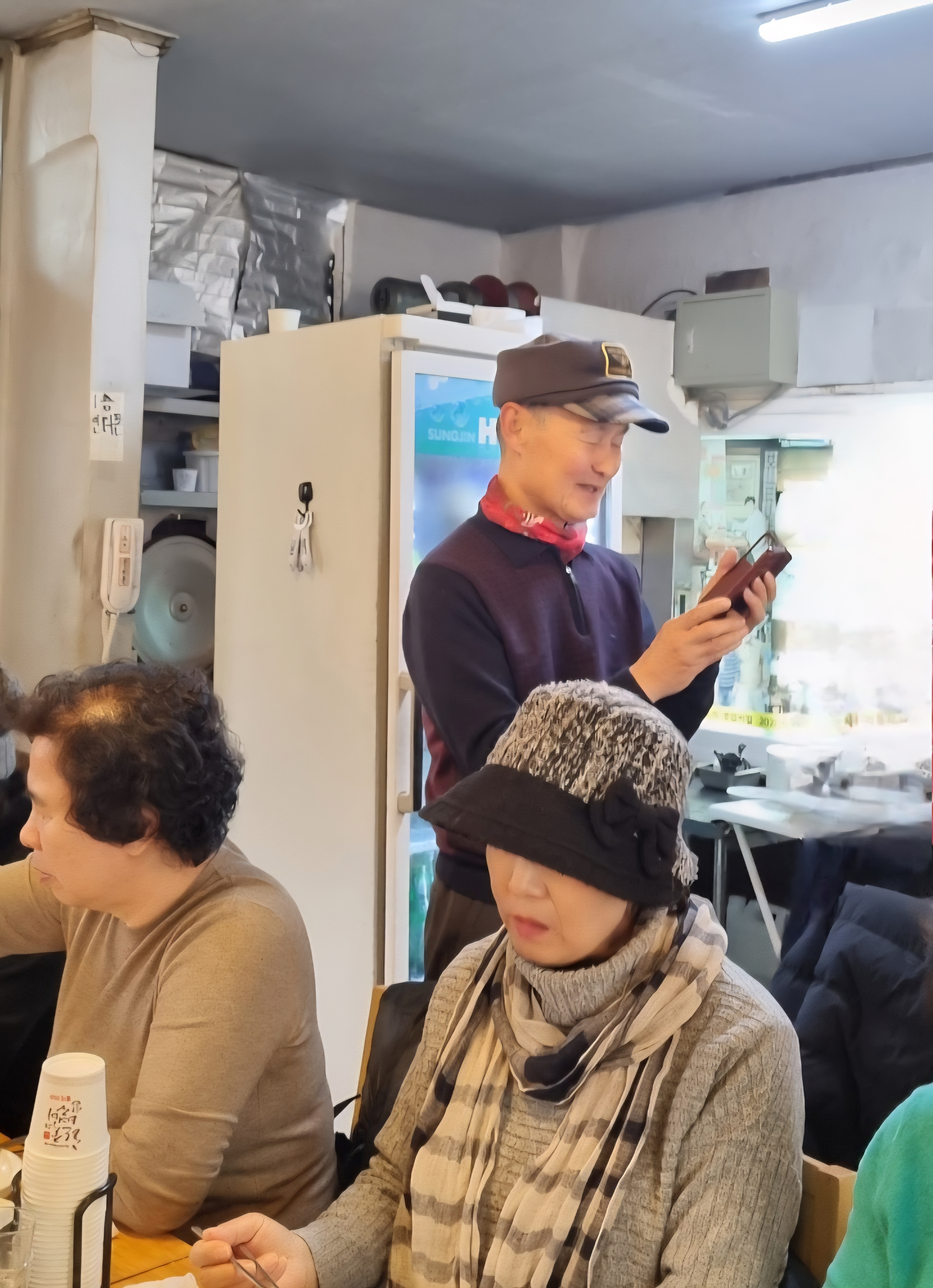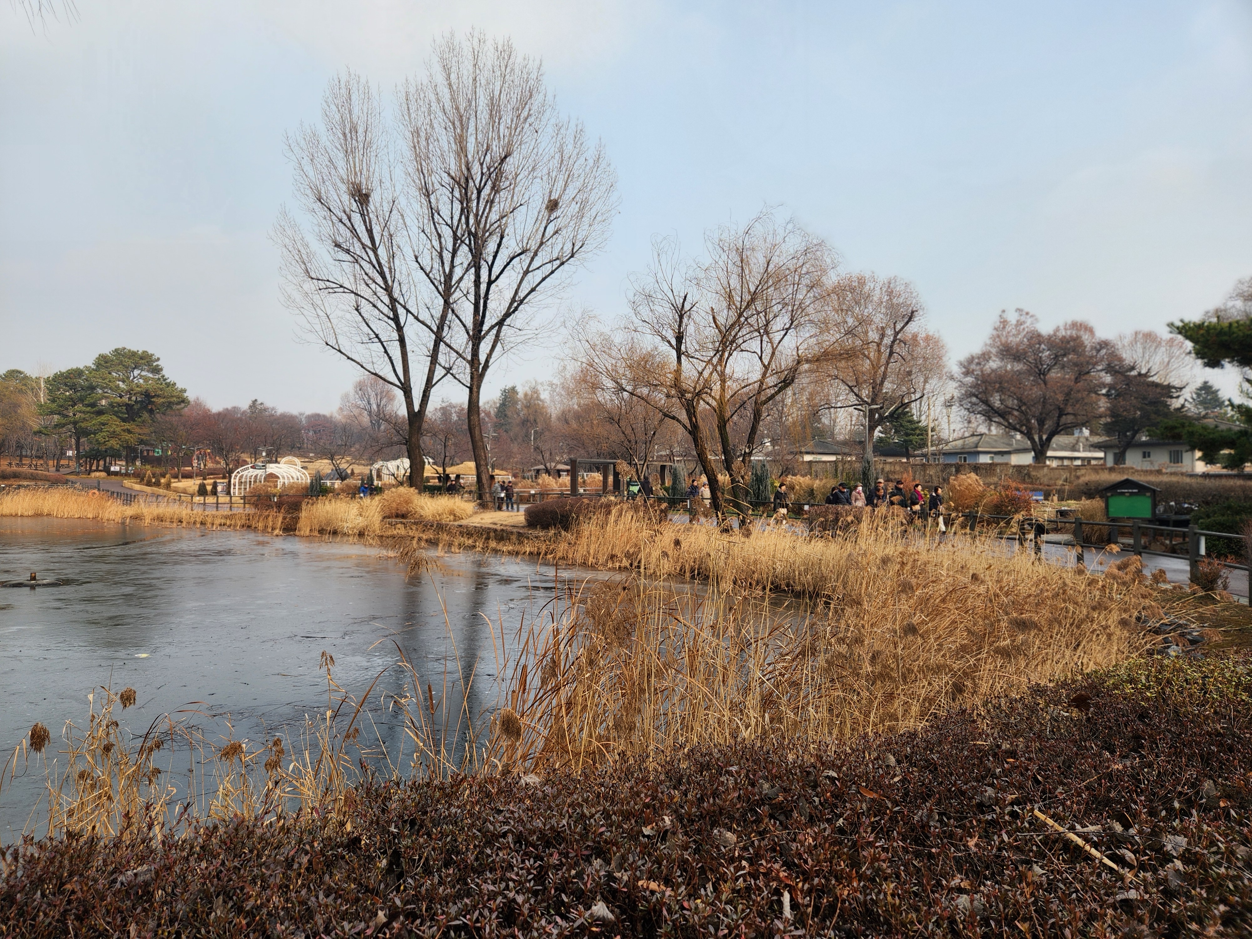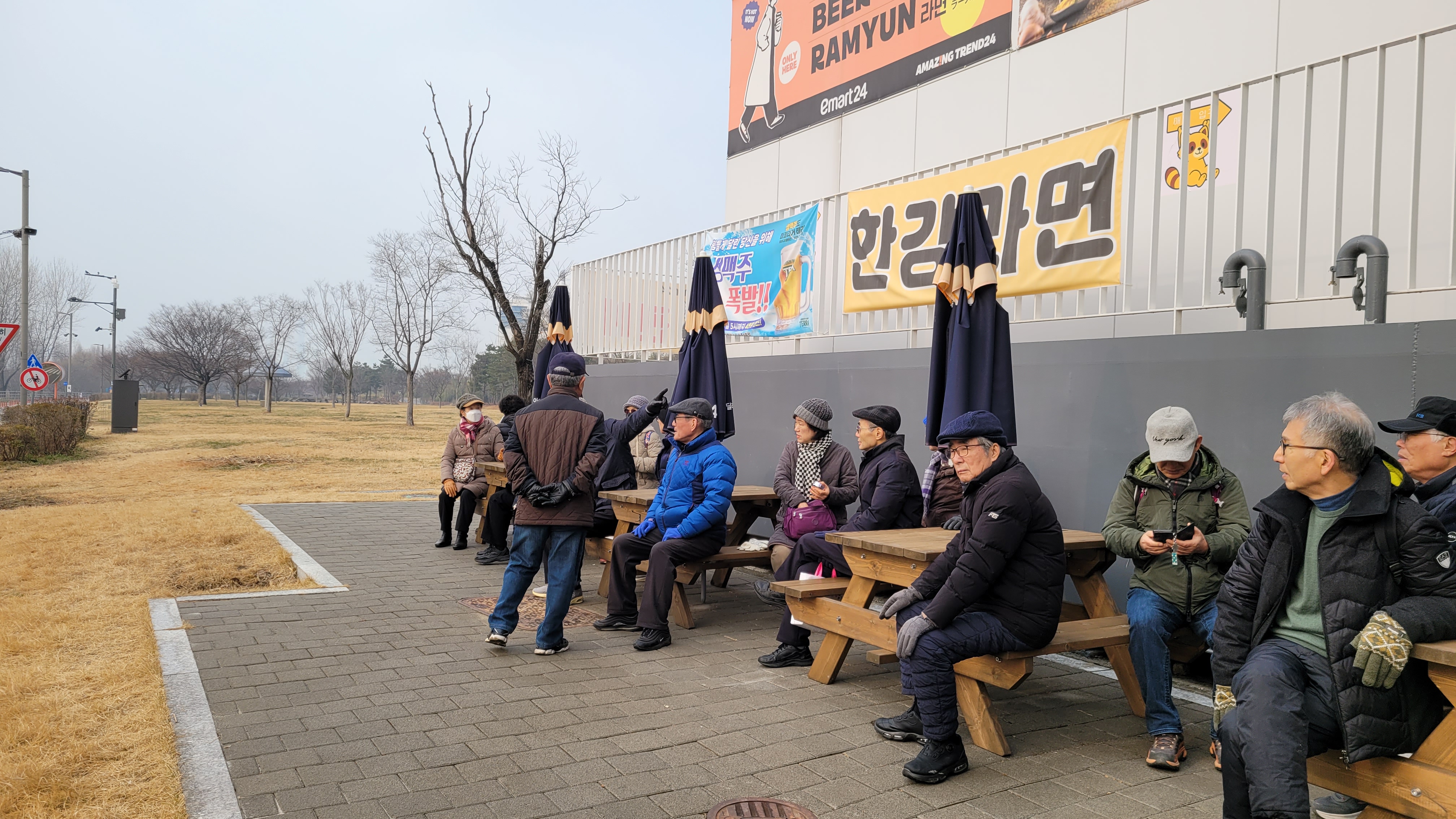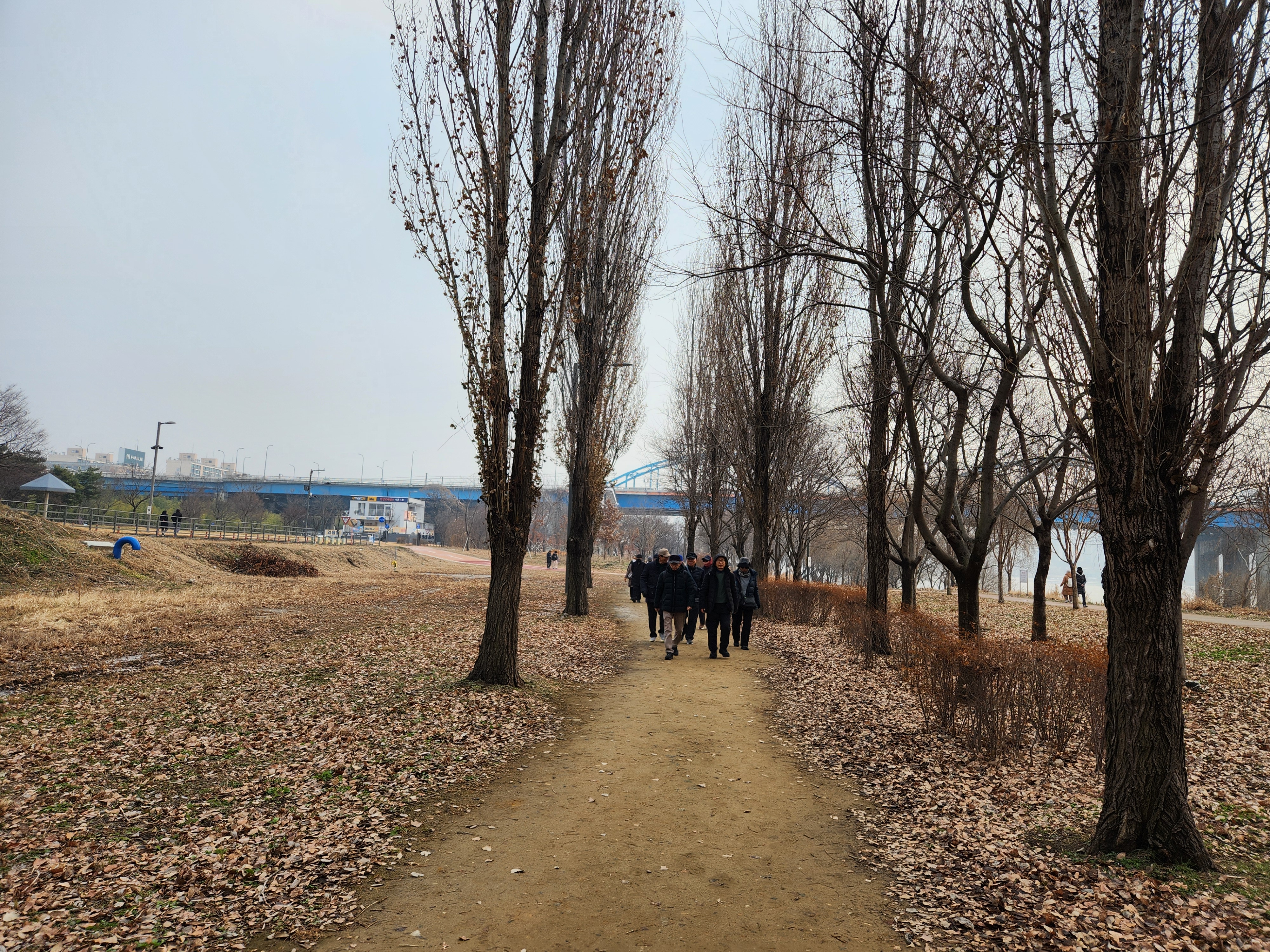 예전에 비하면 덜 춥기도 하고 보온대책도 좋아 견디기 괜찮다. 그래도 추우면 바깥에 나서기가 겁난다. 오래전에는 이맘때쯤 저수지 빙판에서 스케이트를 탔고 한강대교 부근에도 스케이트장이 있었는데 지금은 그전만큼은 덜 춥다. 이날은 새벽에 비가 내린 후에 그치고 날이 푸근해서 모임하기에 좋다.