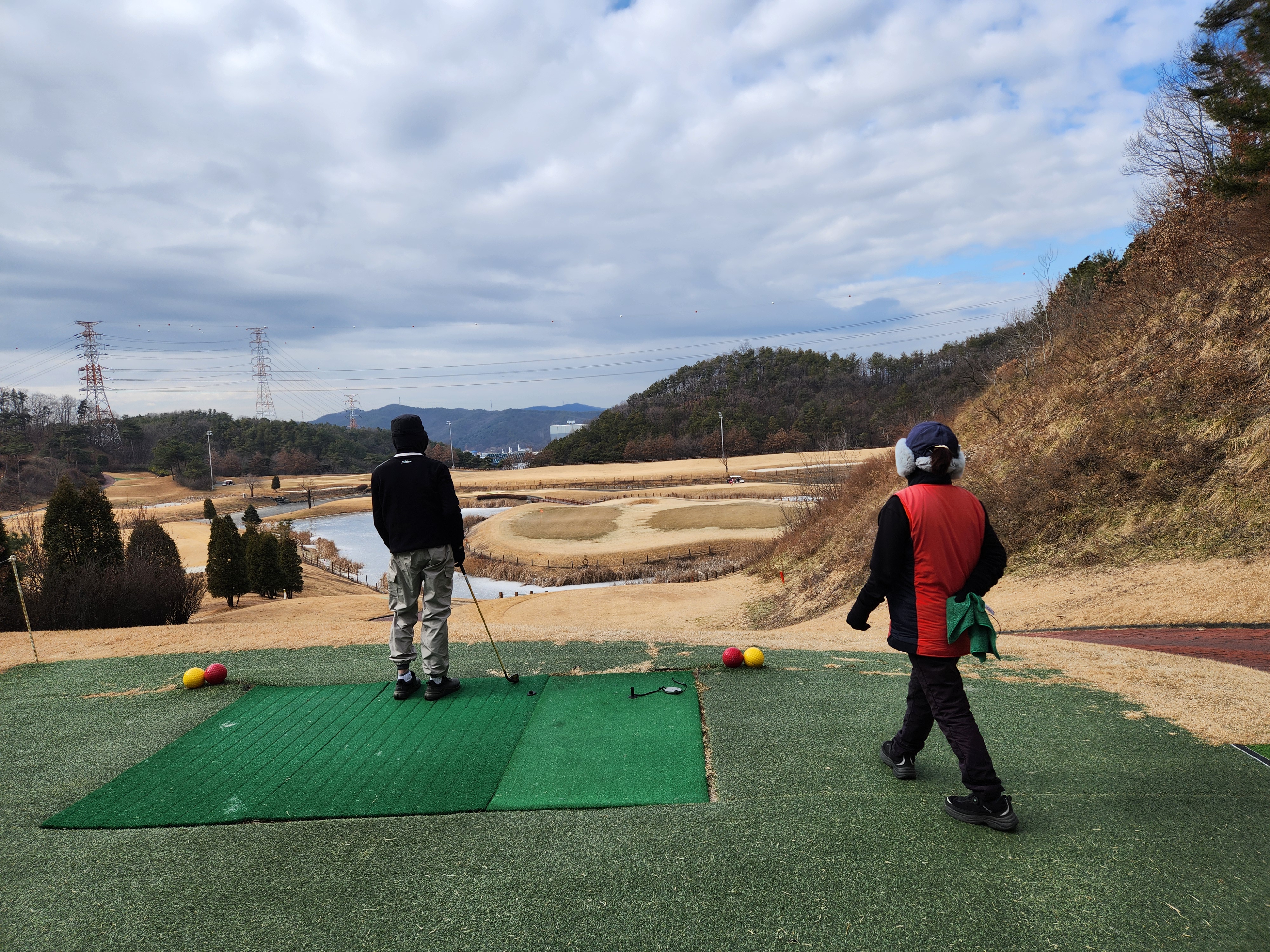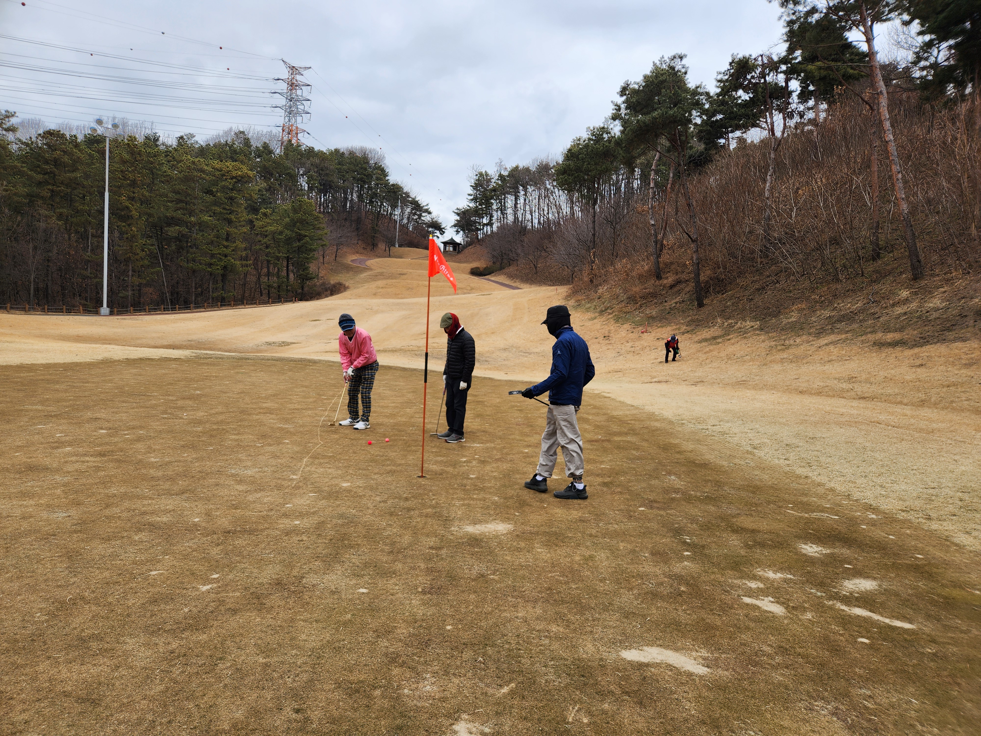 파아란 잔디가 아닌 누우런 마른잔디 위에서 골프치는 나라는 대한민국밖에 없을 거라고 동반 후배가 말한다. 이런 날씨에도 운동나오는 여건이 되는 분들은 특별히 선택받은 사람들인 것같다. 바로 앞팀에는 육사 1년선배 동기생들이 라운딩을 하신다.