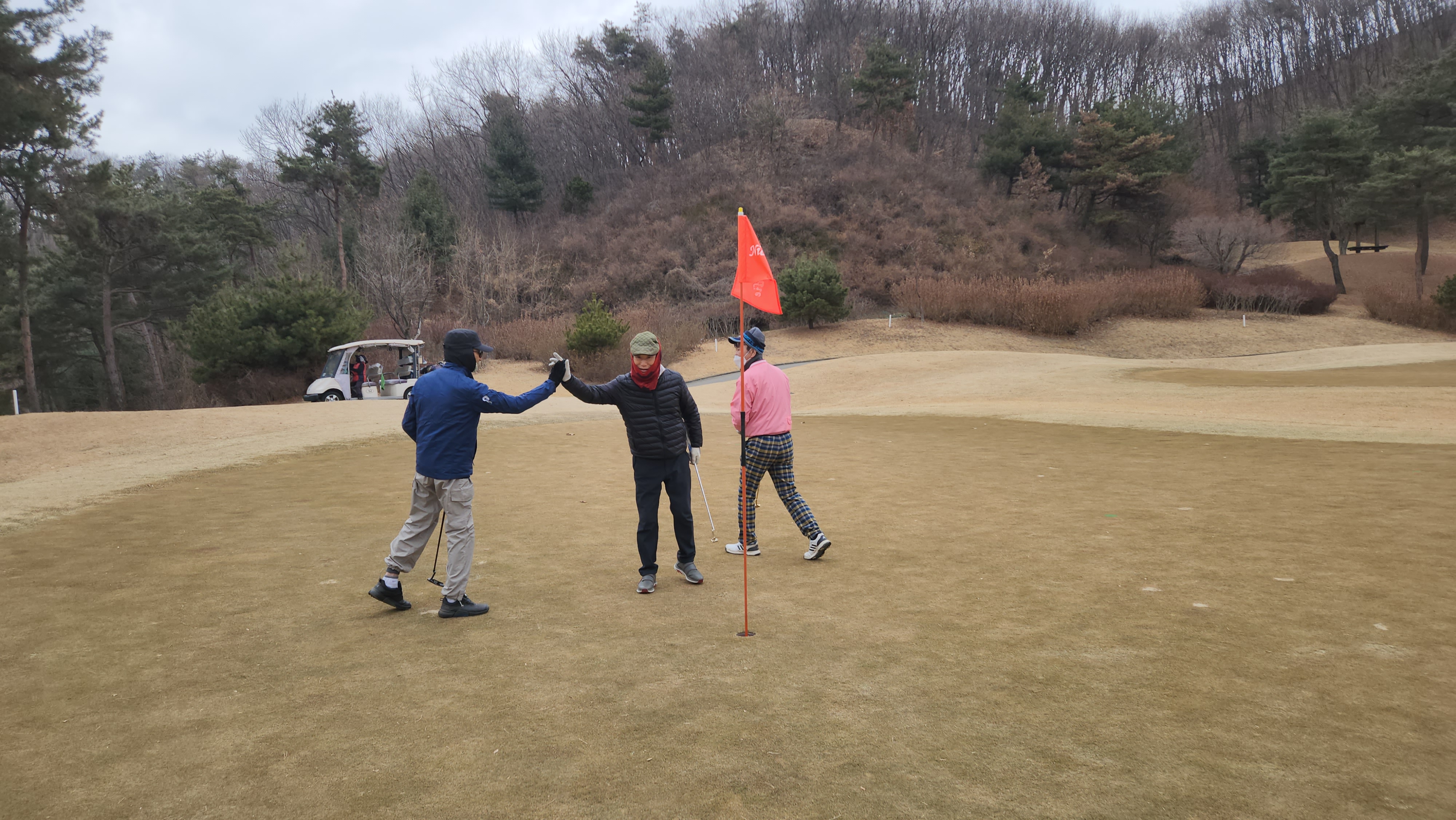 며칠동안 혹한이 이어지다가 이날은 낮기온이 영상으로 오른다고 하여 계속대로 시행했다. 아침보다는 낮에 조금 덜 추울까 했더니 오후로 갈수록 더 추워진다. 골프가방에 있던 바람막이 옷과 우의까지 꺼내어 나눠 입으니 조금은 낫다.