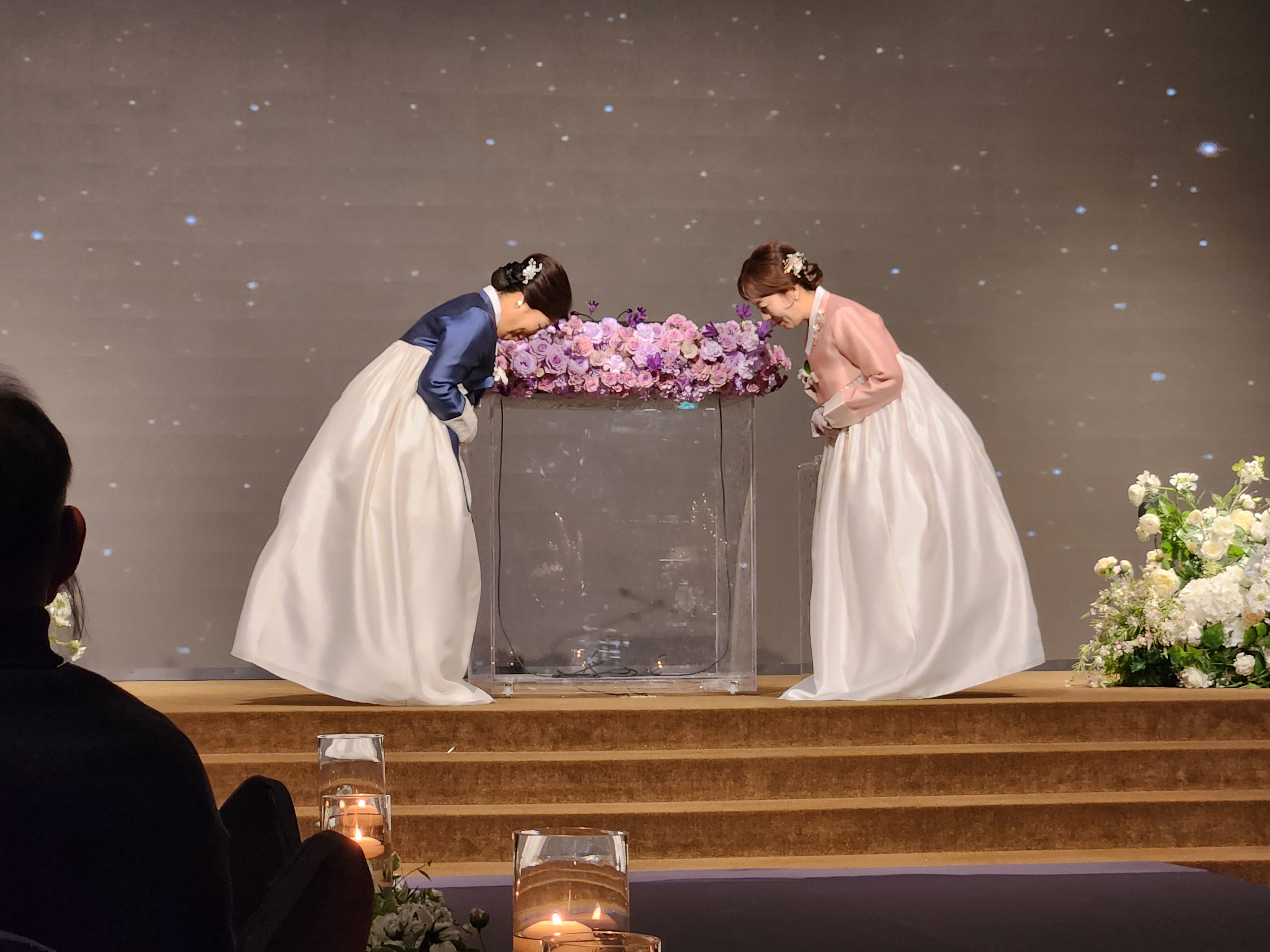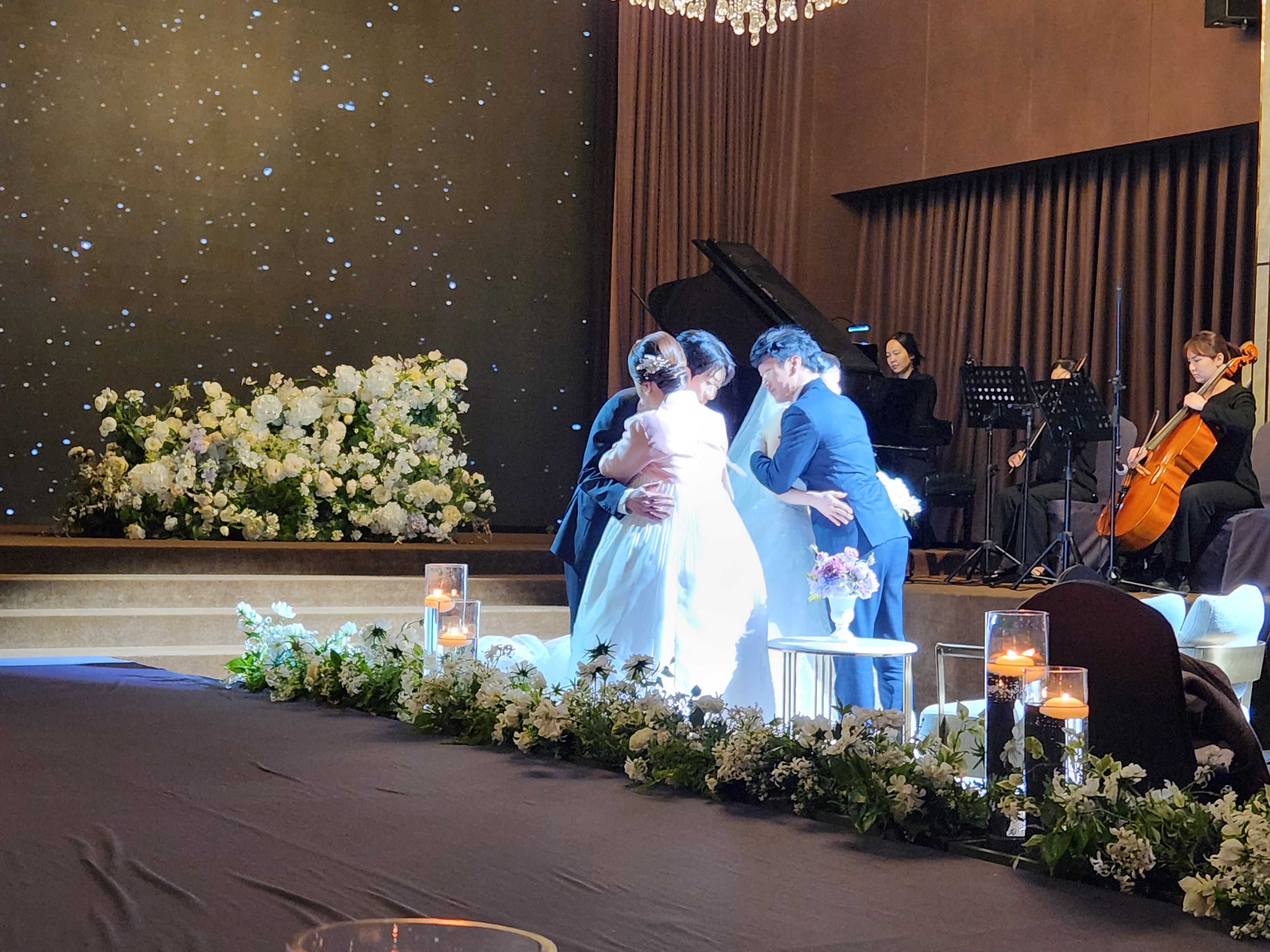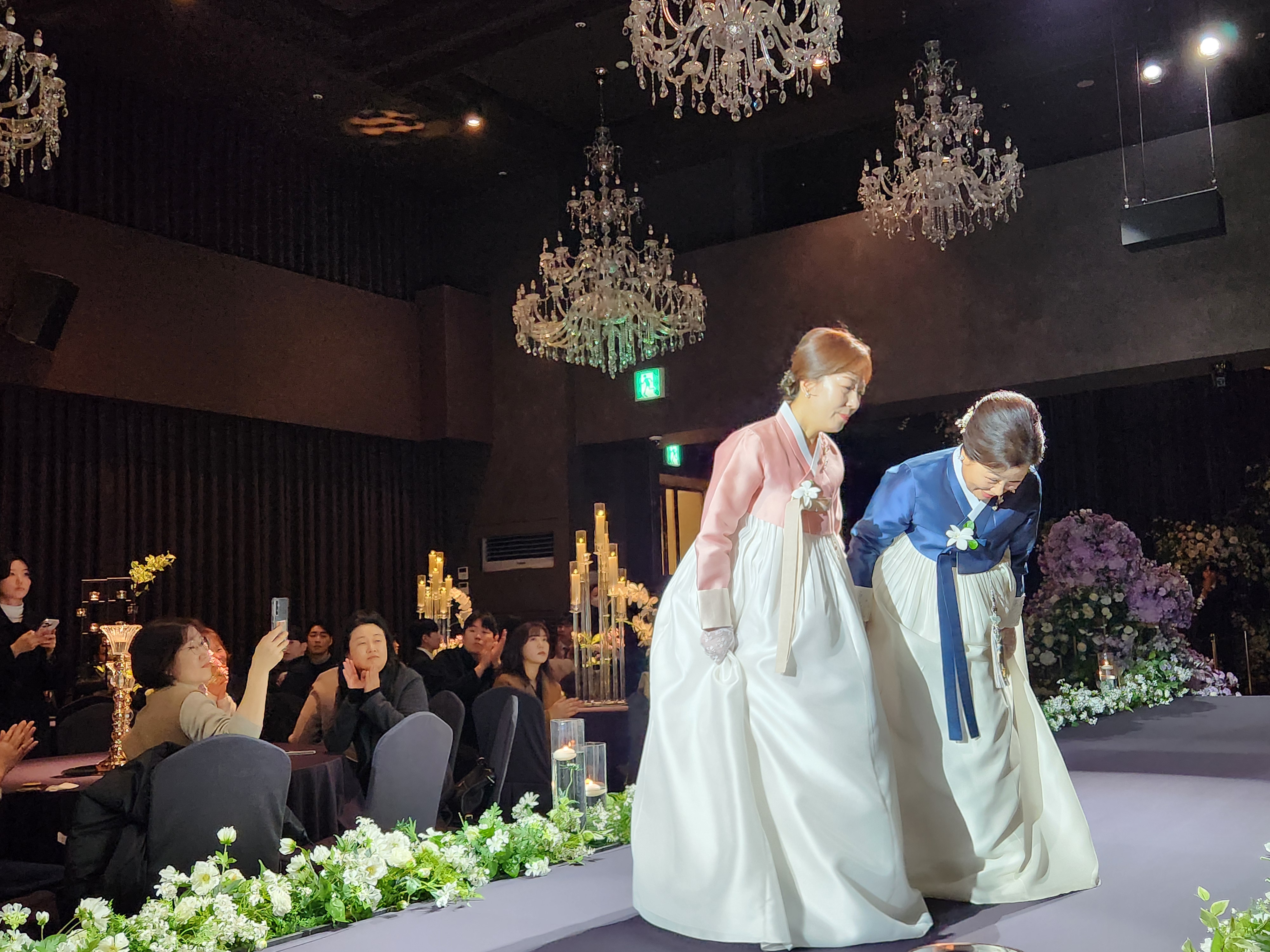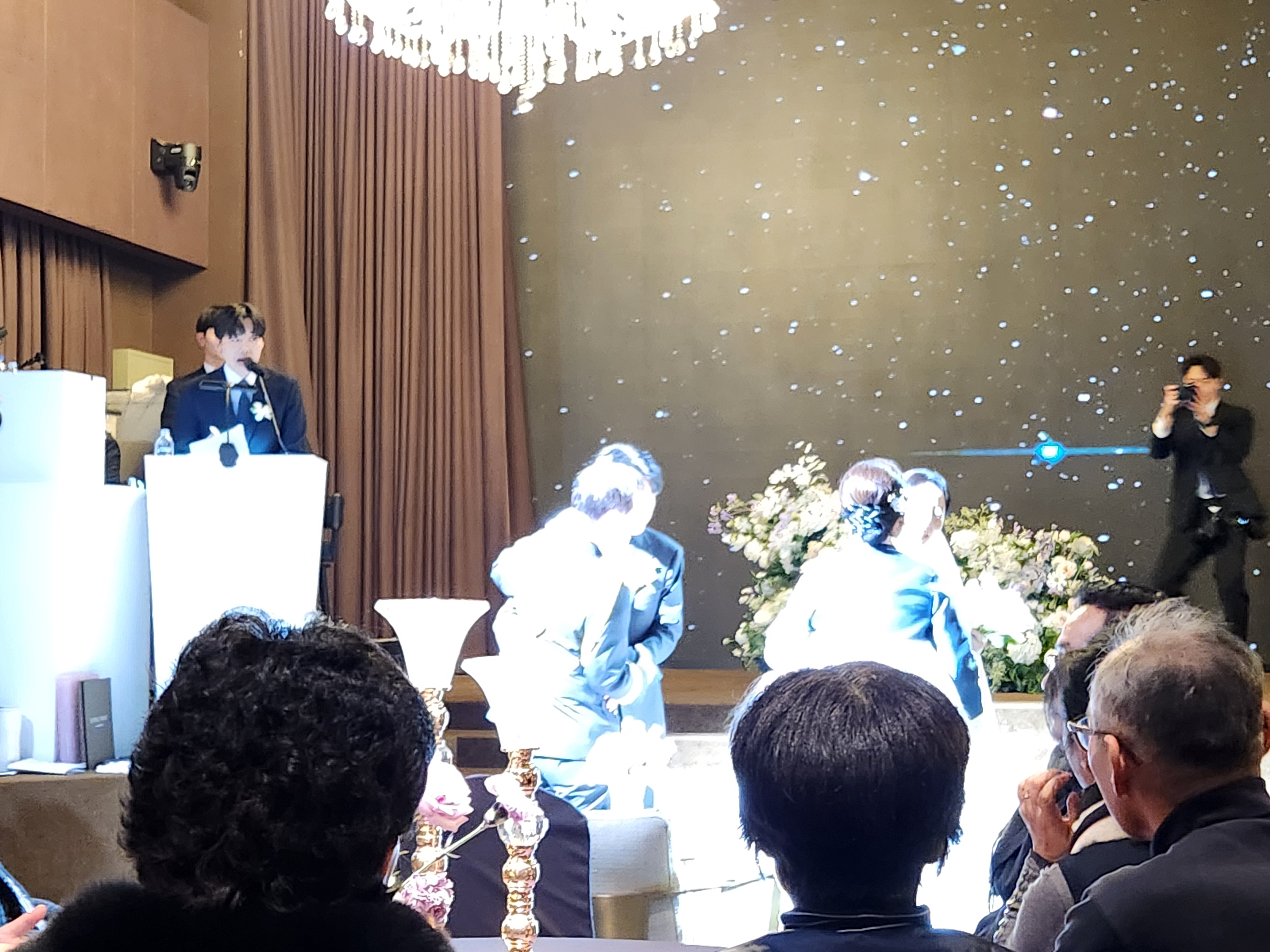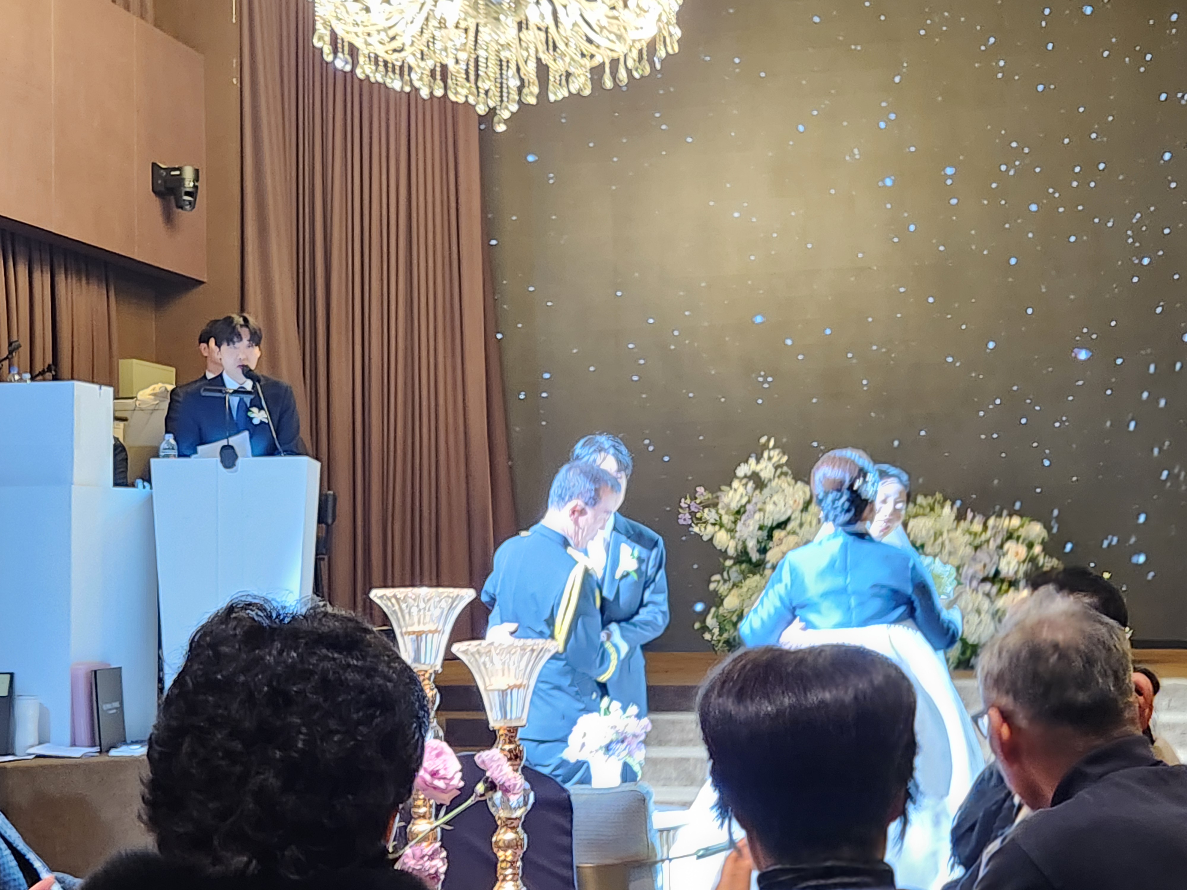 신랑신부의 직접 혼인서약과 신랑부친의 사랑이 가득 담긴 덕담이 인상적이다. 연륜의 지혜에서 나오는 생활덕목과 윗트있는 너스레가 분위기를 더욱 부드럽게 해주었다.