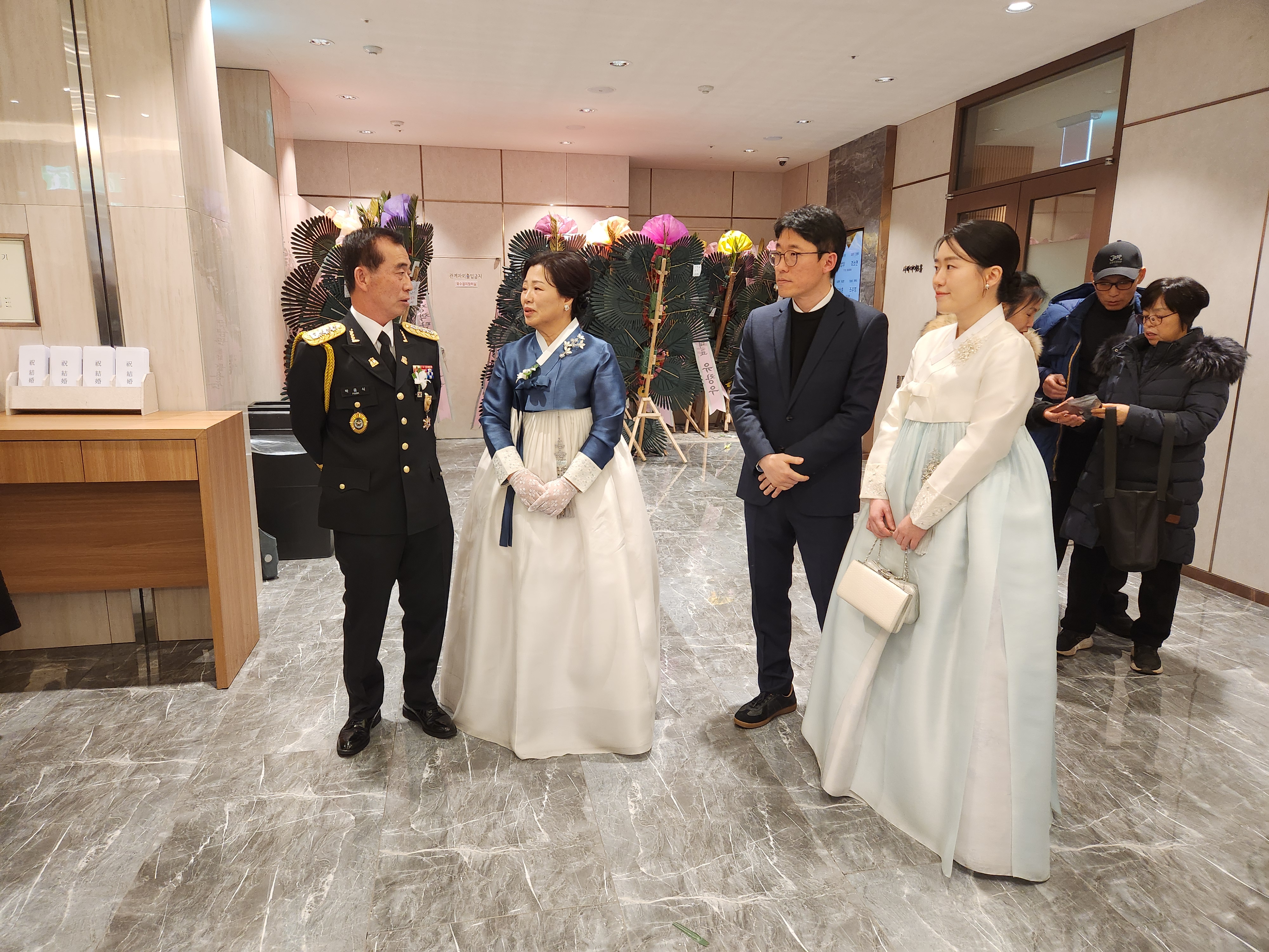 30여년전 포천에서 공병여단장 재직시에 132대대장과 여단 시설처장으로 함께했던 박윤식후배(남송지여사)의 아들 헌 정군이 구수 윤양을 신부로 맞아 결혼식을 올리는 자리에 소한대한의 한겨울 추위에도 많은 하객들이 참석하여 축하를 보내 주었다.