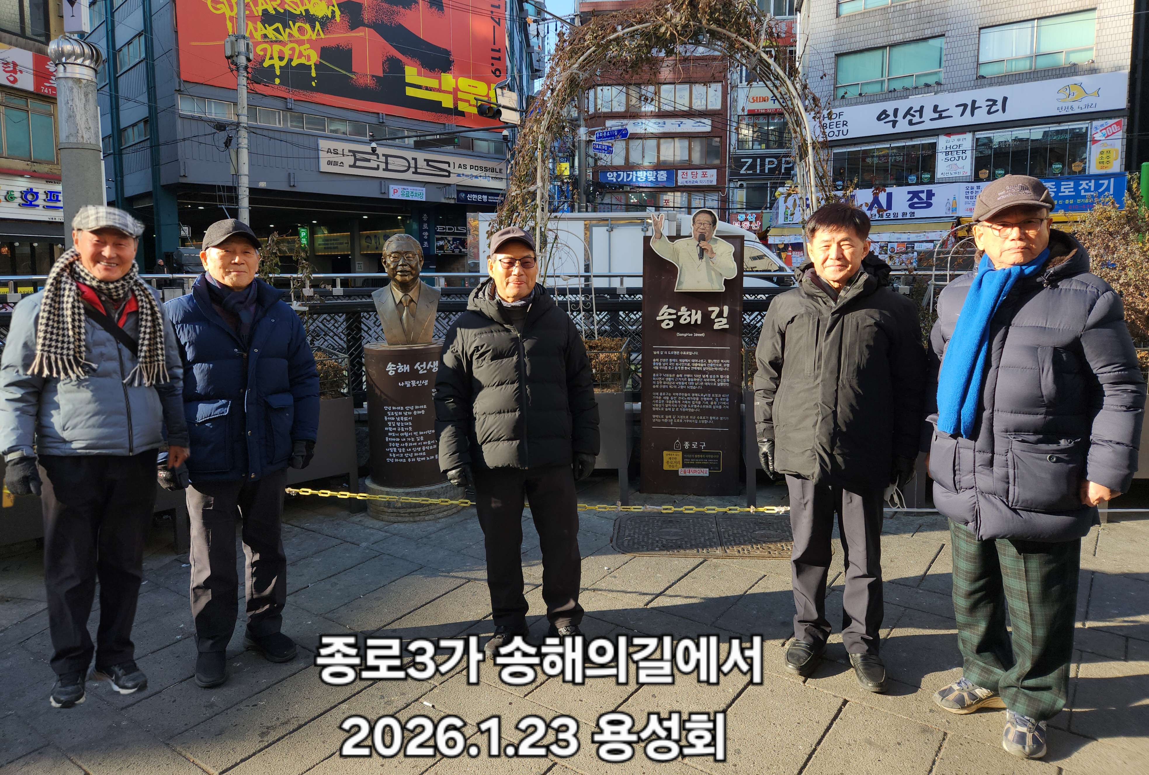 '26.1.23(금) 10:10, 종로3가역 2출구에서 소대장친구들 용성회 5명이 만나 피카디리1958 cgv에서 아바타3 영솨관람 후에 낙원상가 부근 아구찜 맛집에서 점심식사