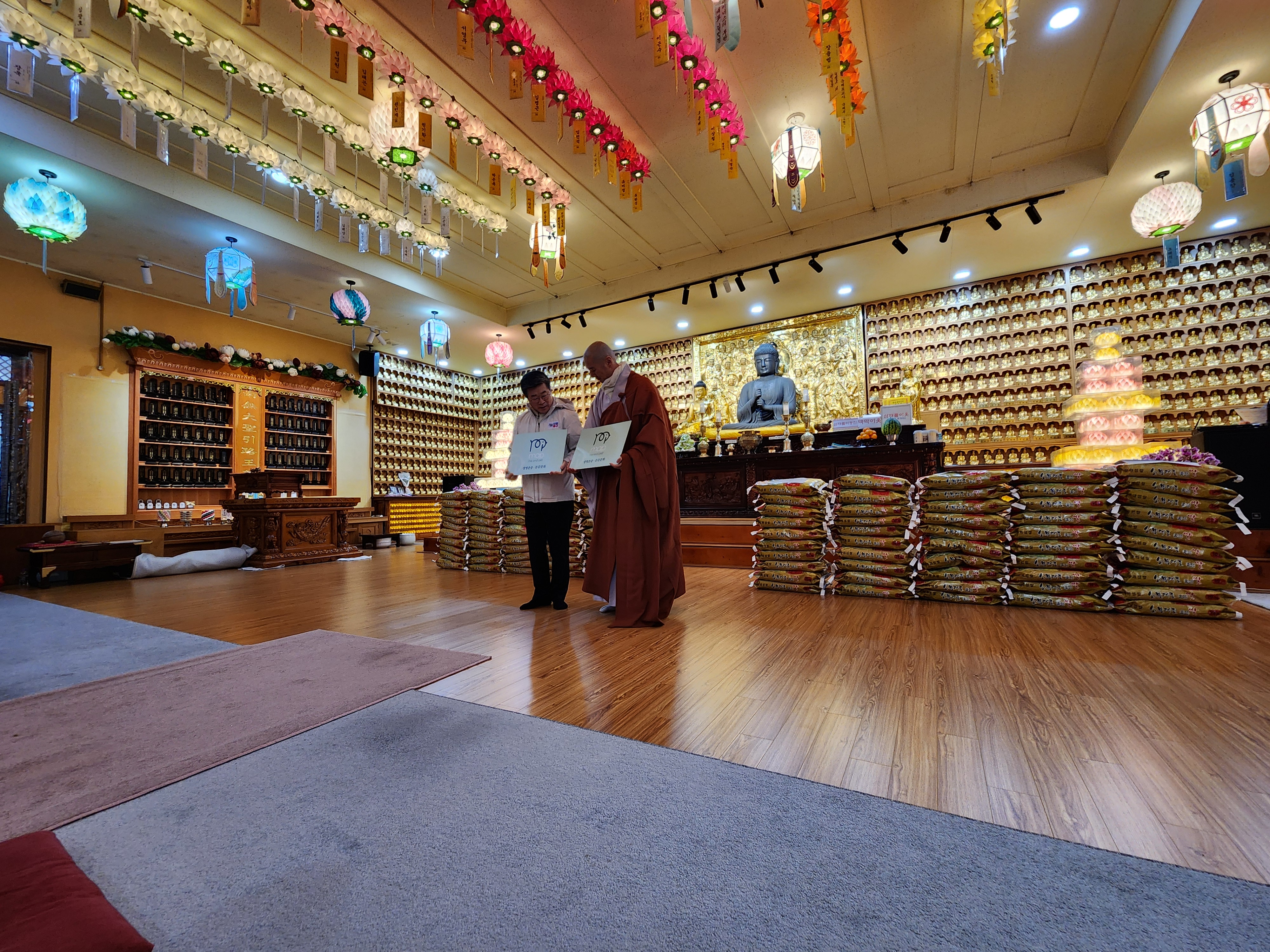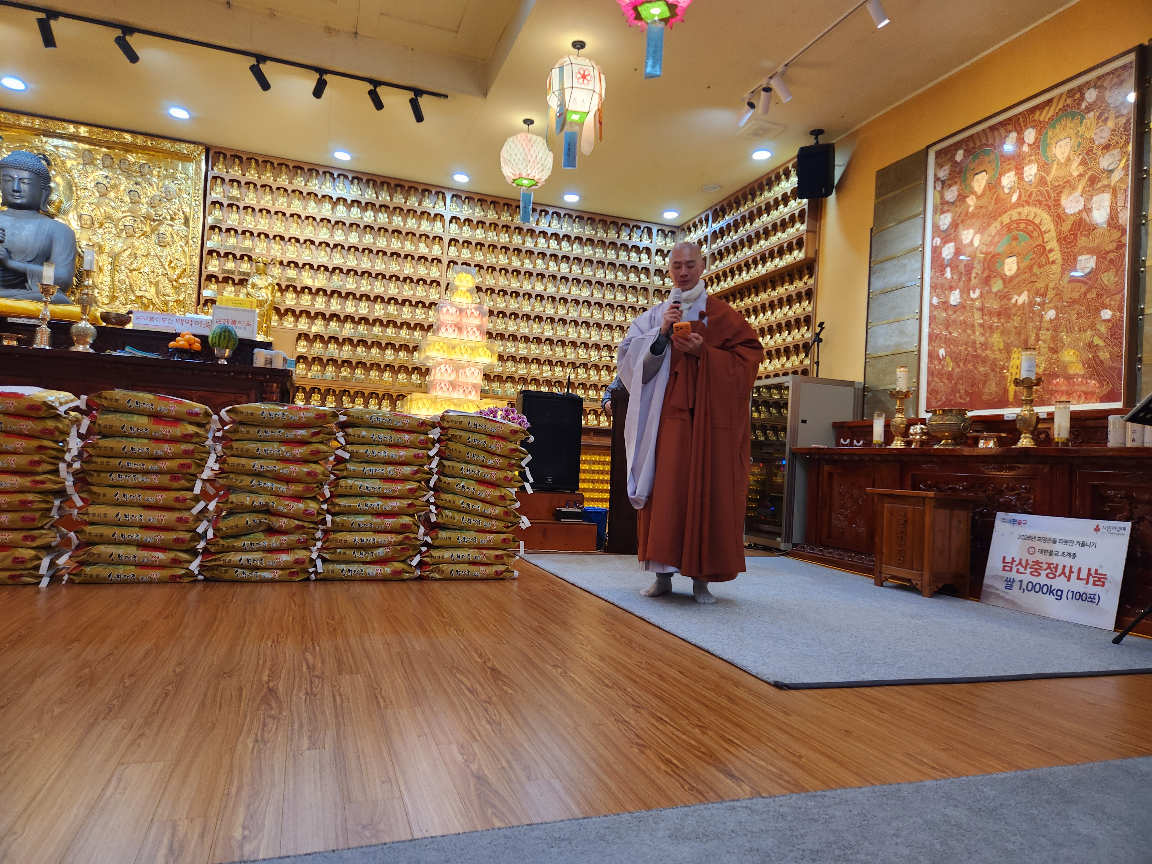 김길성중구청장에게 주지 덕운스님이 자비의쌀 나눔 1000kg 전달식을 중구지역 관계자와 충정사 신도들이 참석한 가운데 거행했습니다.