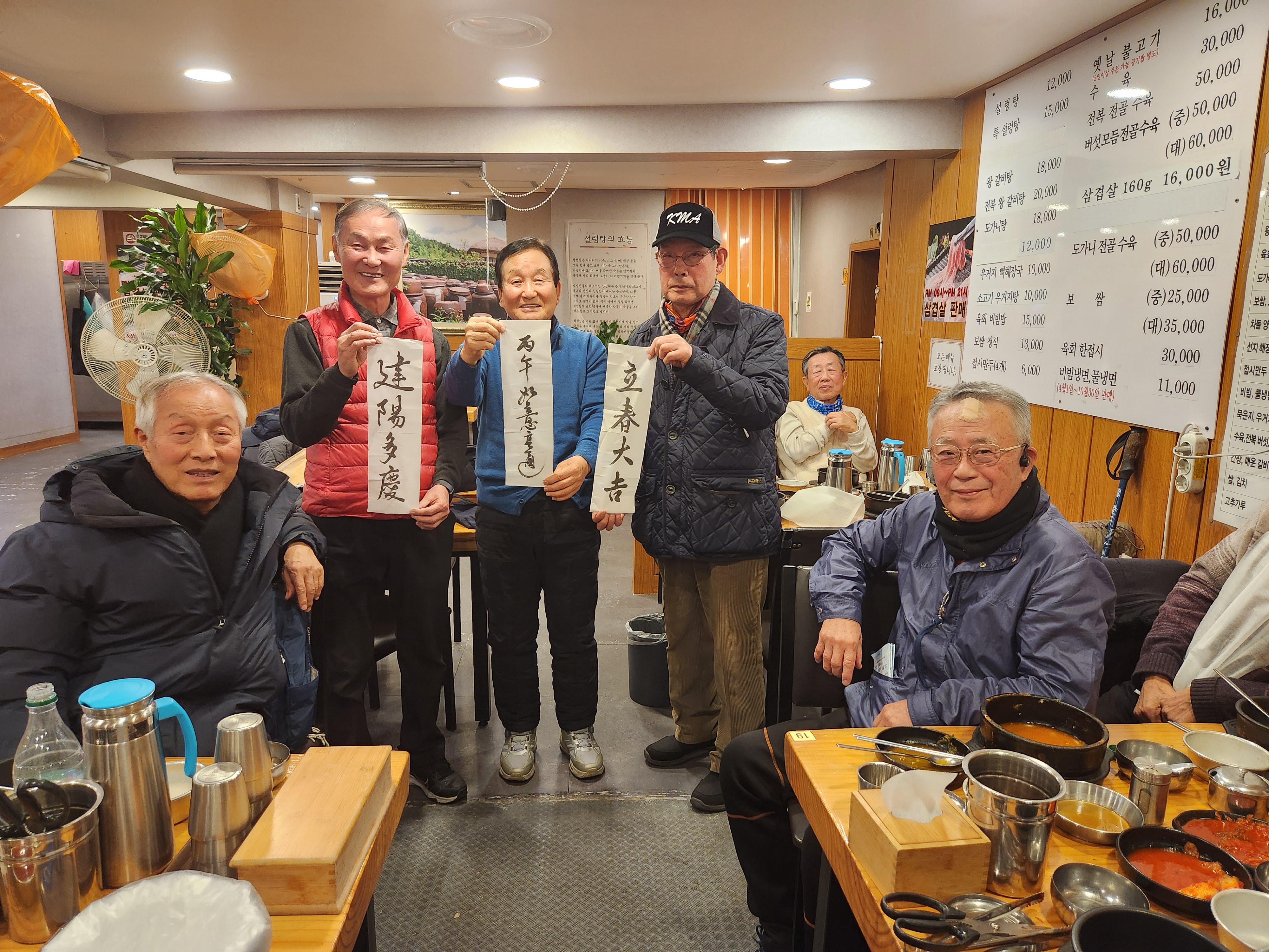 이른 저녁식사 후에 이광희서예가가 써온 입춘방을 분배.