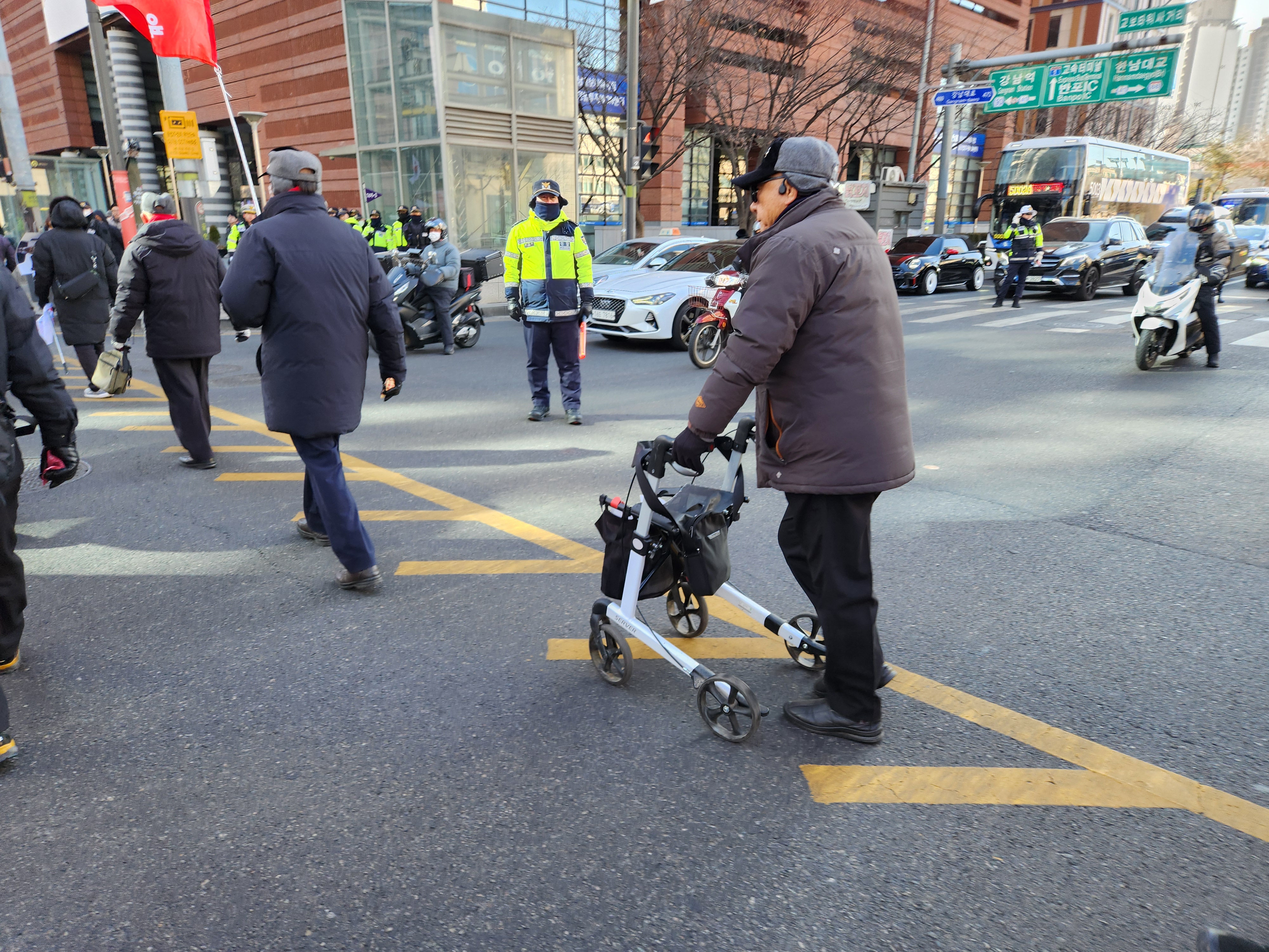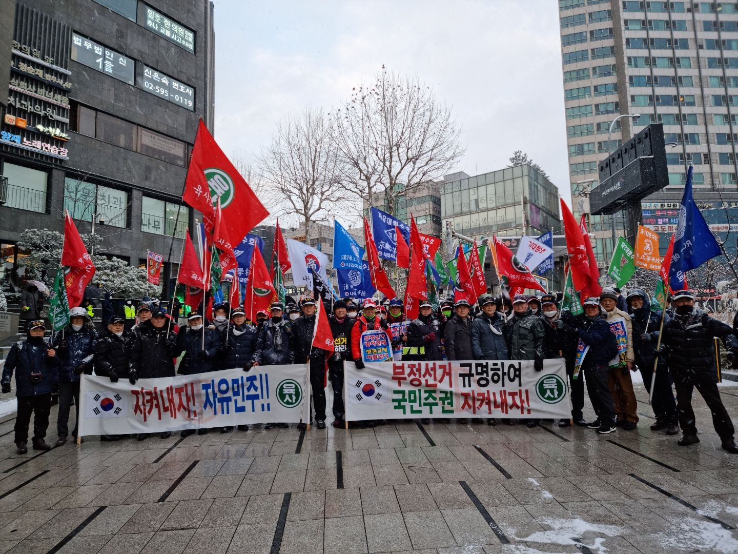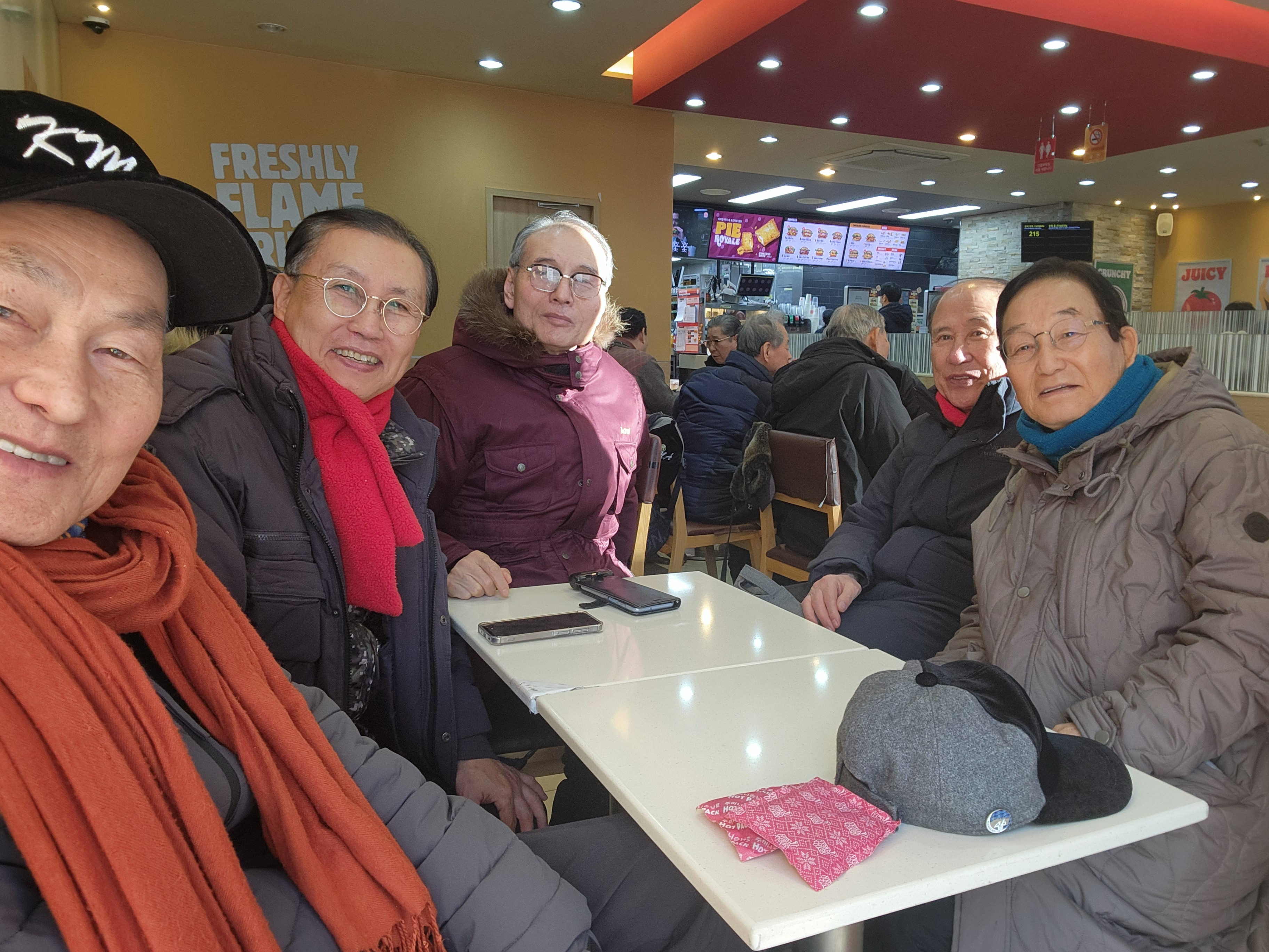 한낮 기온이 영하 5도 정도이고 찬바람으로 체감온도는 영하 10도가 넘는 추위인데도 애국,구국의 열정은 식을줄 모른다. 이런 추운날 따뜻한 집에서 부침개 붙여 간식하는 한가한 시대가 되면 얼마나 좋을까? 86세되신 19기 선배님들이 10여명 끝까지 행진에 동참하시고 교대역 버거킹에서 만났다. 무슨 열정이 그리 높으신지 존경스럽다. 자유민주 체제를 지키고 되찾는 과정이 이리도 험난한가 싶다. 이렇게라도 나라를 지킬 수 있다면 무엇이 아까우랴?