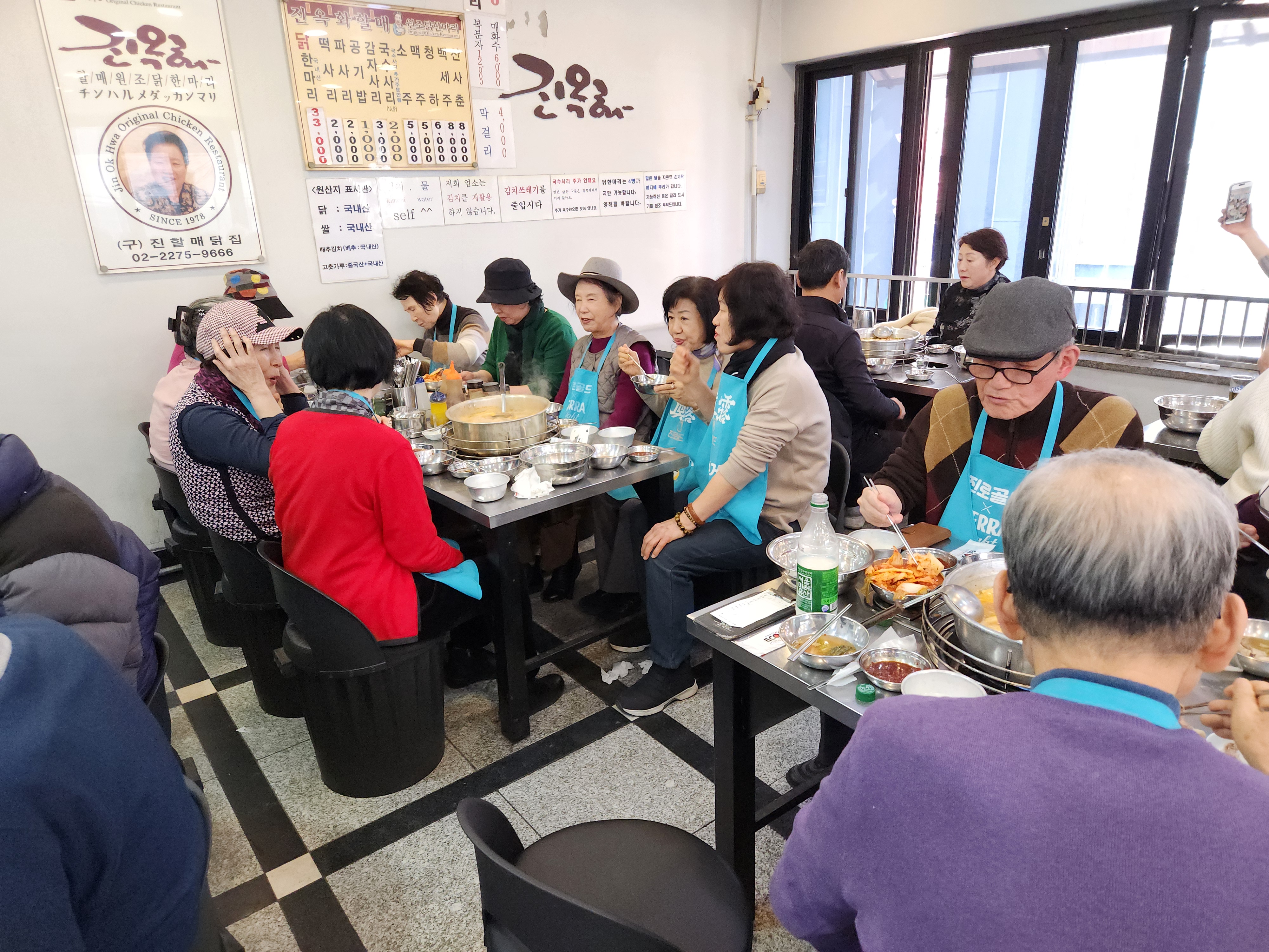 동대문까지 돌아보고 시장골목 생선구이, 닭한마리 전문 식당골목 진옥화닭한마리 식당에서 번호표를 받아 한참을 기다렸다가 3층에서 점심식사