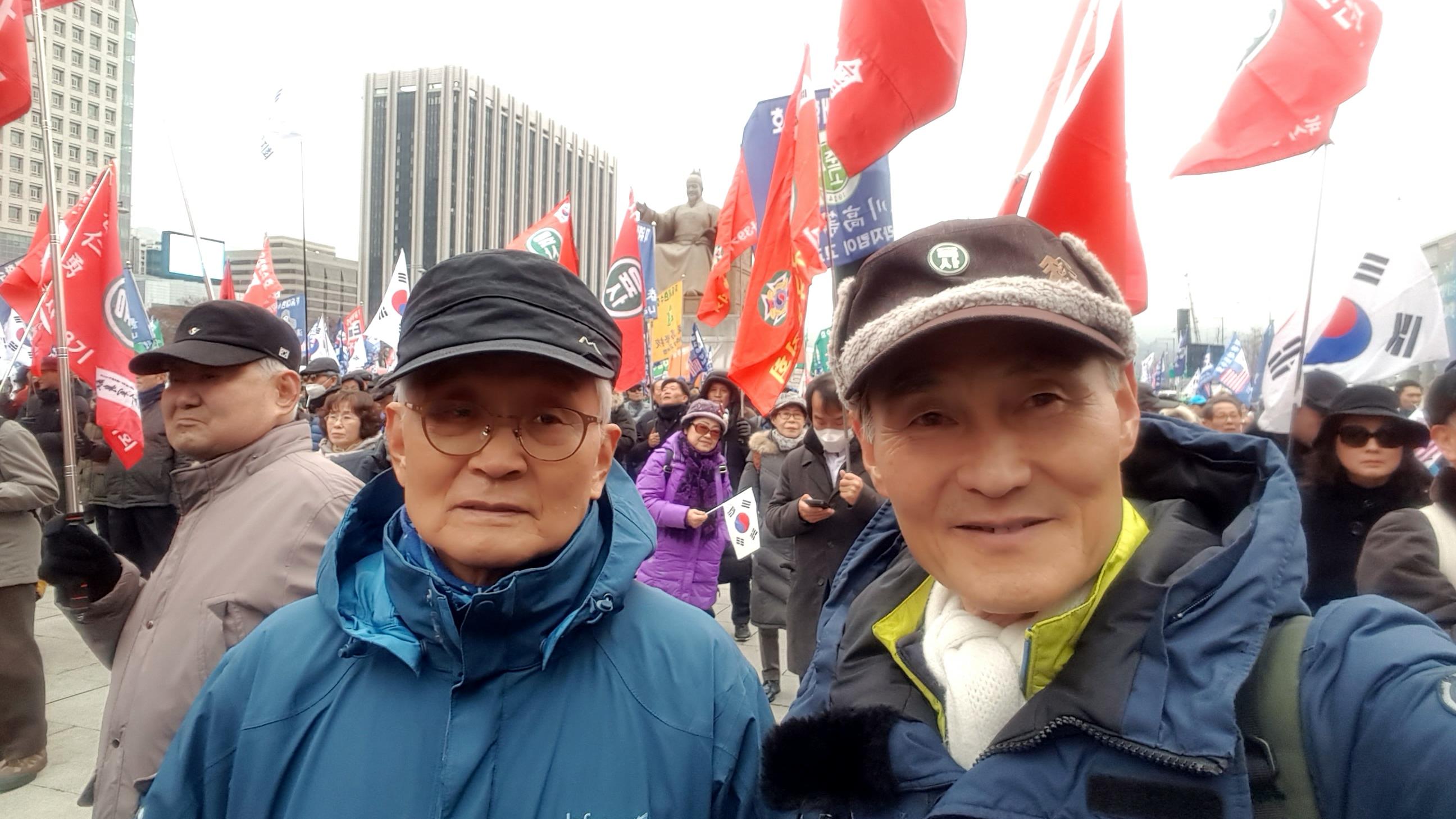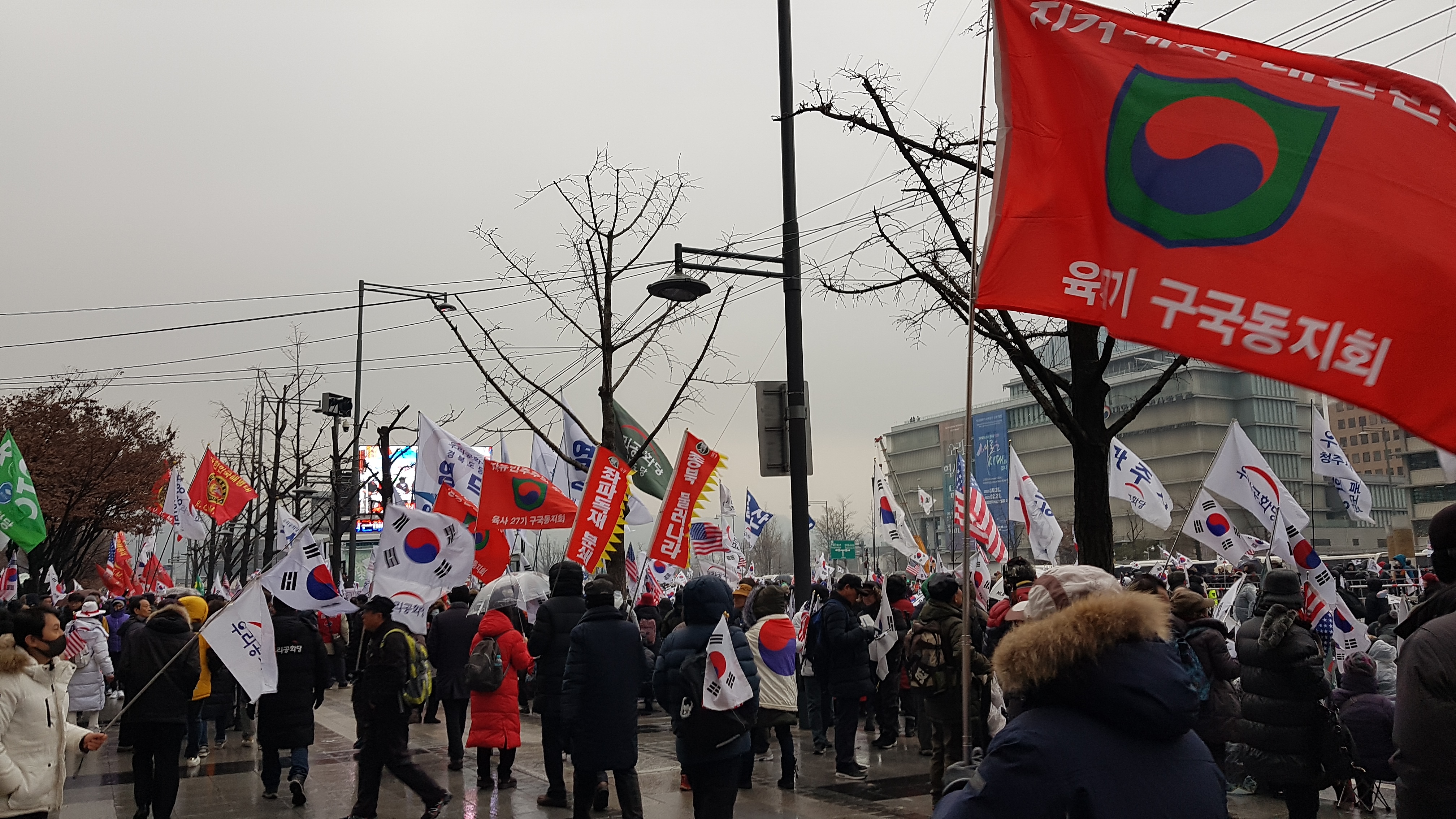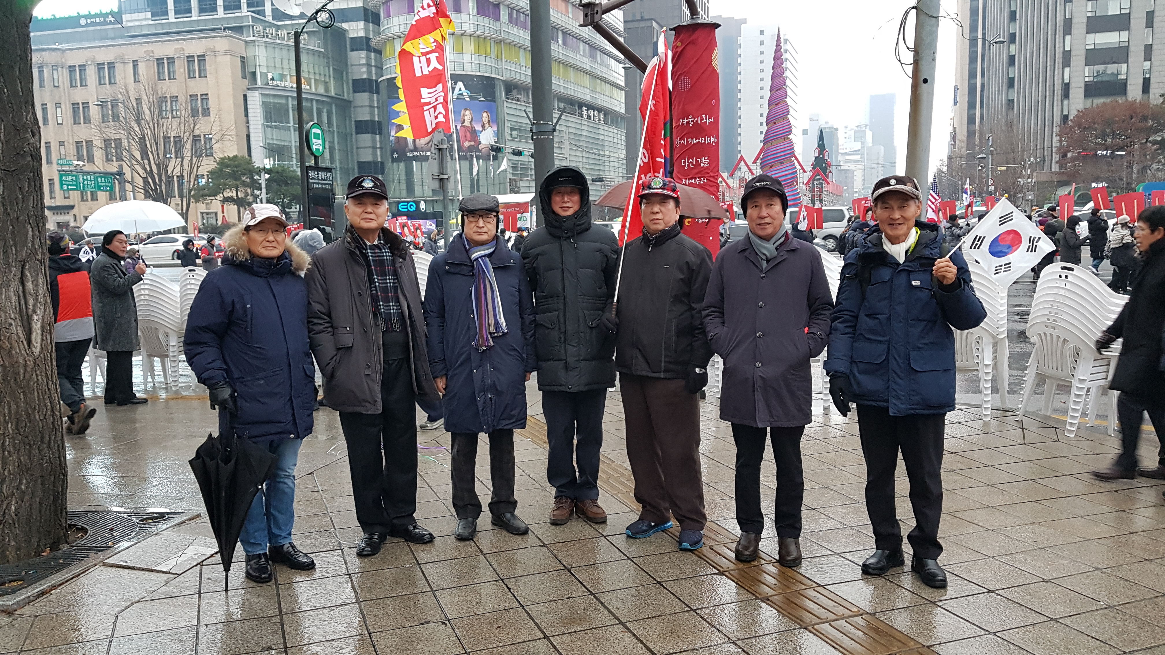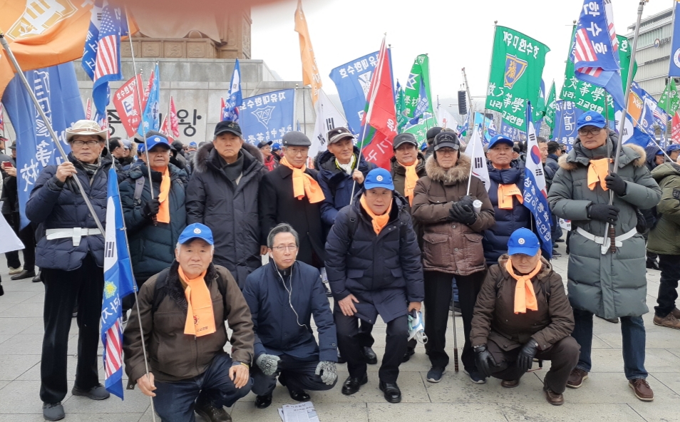 날씨는 몹시 쌀쌀하고 진눈깨비까지 내려 을씨년스런 토요일 오후이다. 그런데도 광화문지역에 모인 애국시민들은 줄어들지 않았다. 추위와 눈바람속에서도 도로위 아스팔트에서 굳건히 자리를 지키고 있다. 외치는 구호가 내리는 싸락눈따라 더 높이, 더 널리 허공으로 퍼져 나간다. 종교의식에서는 '할렐루야' 외치는 소리가 하늘까지 미치지 않겠나 싶다. 사람의 힘으로는 하지 못할 일도 '하나님의 권능'으로 능히 해낼 것으로 믿고 기도를 올린다. 불교, 천주교도 동참하여 뜻을 함께 했다.