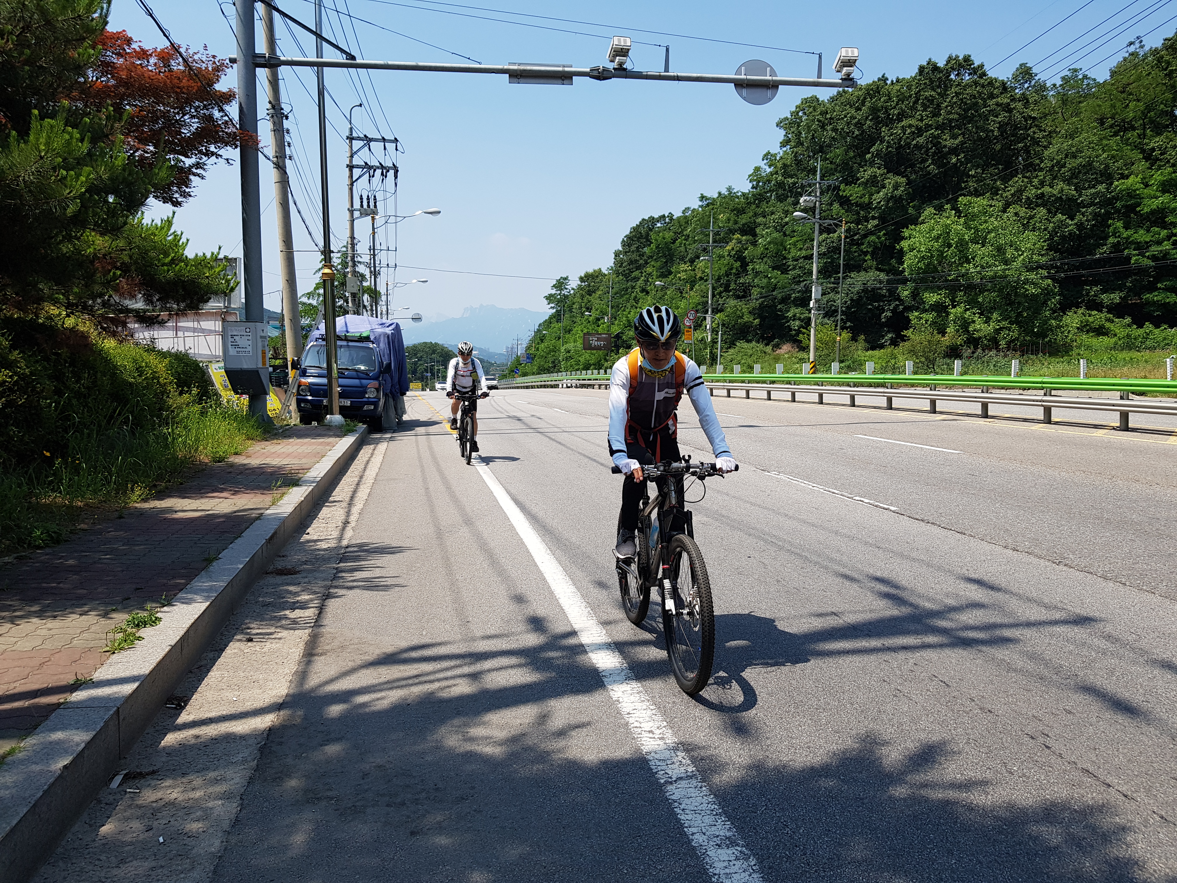 의정부에서 축석고개까지는 전적비 2개소를 참배 하면서 계속 오르막길이 이어지는데 광릉내로 가는 고개마루부터 이후로 테계원지역 까지는 계속 개울물이 하류로 흘러가는 내리막이라 오전에는 빡세고 점심식사 후 오후의 라이딩 길은 조금 편안하다. 다만 전반적 코스는 좋은데 자전거전용도로가 없는 국도의 차길을 지나는 구간이 많아 교통에 불편을 주는 것같아 미안하기도 하다.