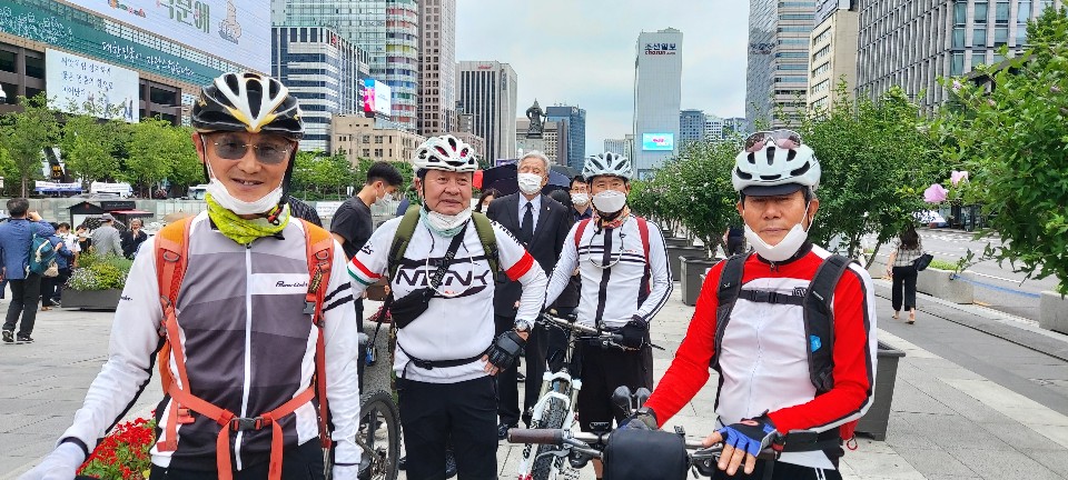 전반기 라이딩을 마무리하고 방학에 들어가기 전, 중랑역 부근의 단골 자전거샵에서 점검까지 한 후 맛집에서 점심식사를 하고 마지막 일정으로 군자역에서 광화문역으로 지하철로 이동하여 세종대왕상 앞의 구국영웅 故 백선엽장군 간이 시민분향소에 단체참배를 했다. 빗방울이 간간이 떨어지기 시작하는 궂은 날씨인데도 챔배객으로 광장이 가득하다. 자전거복장으로 눈에 많이 띄어 조명도 많이 받았다. 1시간여 줄서서 기다려 참배를 했다. 여기에도 젊은 부모와 함께 온 어린 자녀들이 눈에 많이 띈다. 국가적, 세계적인 귀한 전쟁영웅 이신데 국가에서 너무나 소홀히 하고 오히려 폄하하려는 처사에 대하여 평생을 국가안보에 봉직해 온 한 사람으로서 허탈감과 서운함을 금할 수 없다. 국민들이 그렇게 느껴서인지 언론에서 크게 보도한 바도 없는데 알아서 광화문광장에 천막으로 간이식으로 설치된 시민분향소로 몰려들고 있다. 민심이 곧 천심임을 알겠다.
